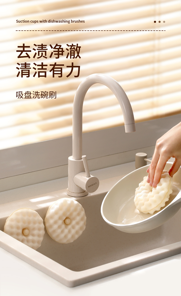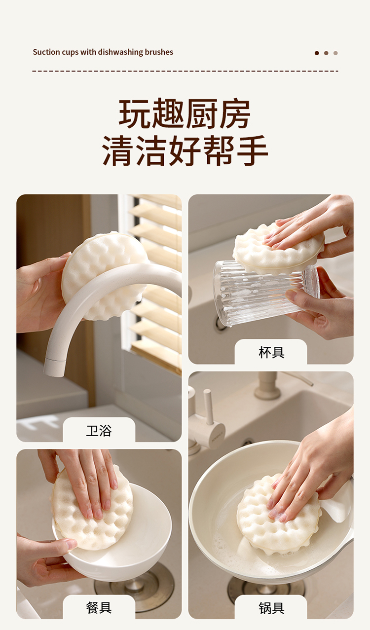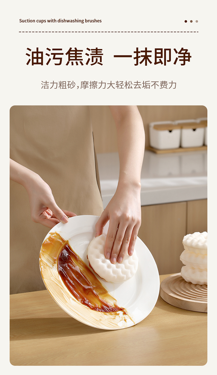 FaSoLa洗碗擦海绵刷厨房清洁擦百洁布双面清洁家用吸盘刷碗神器