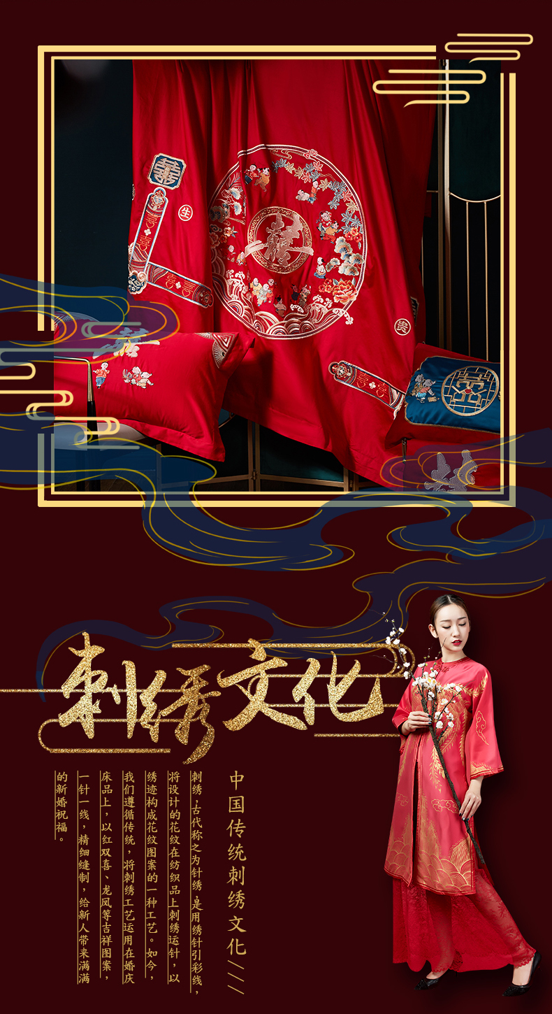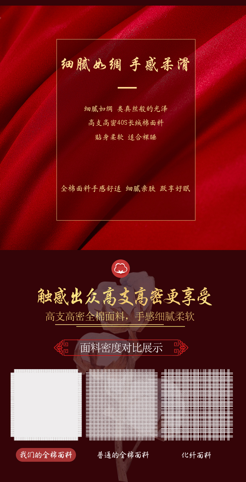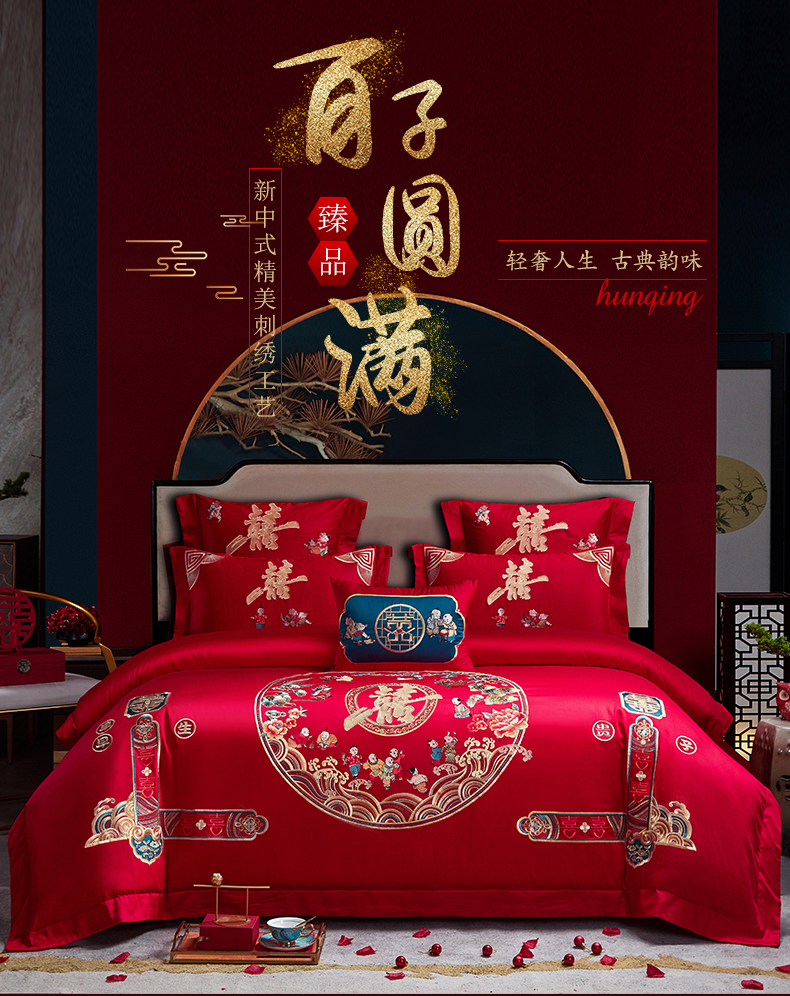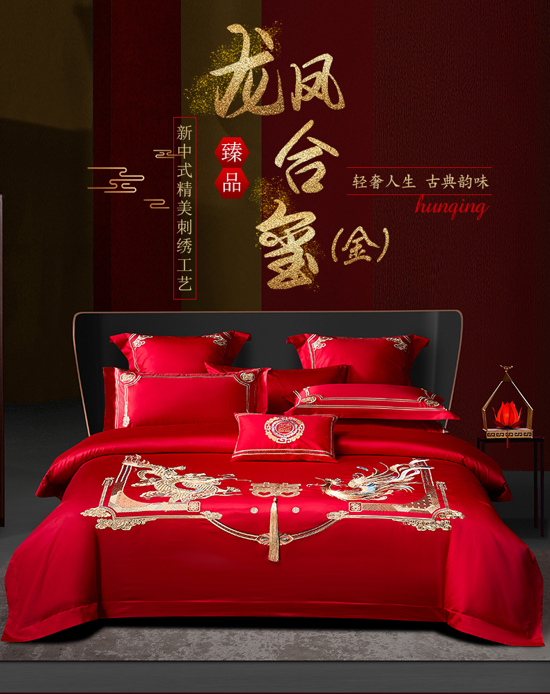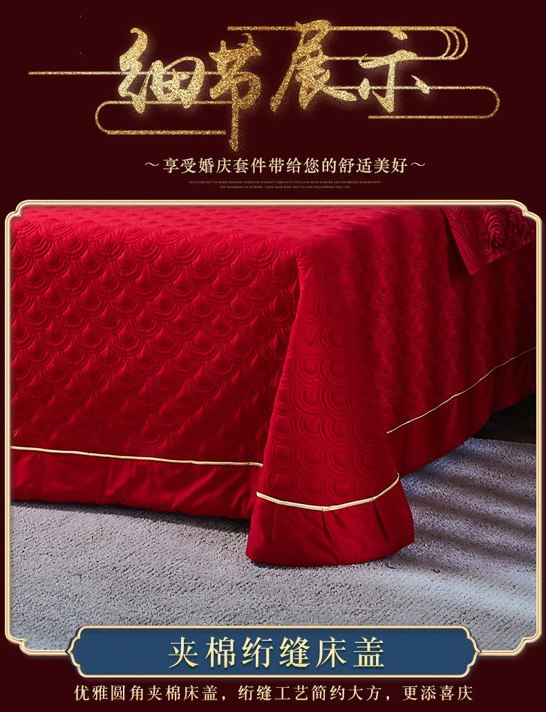 自然醒中式婚庆四件套全棉纯棉床单被套结婚床上用品新婚大红婚嫁40支GDS