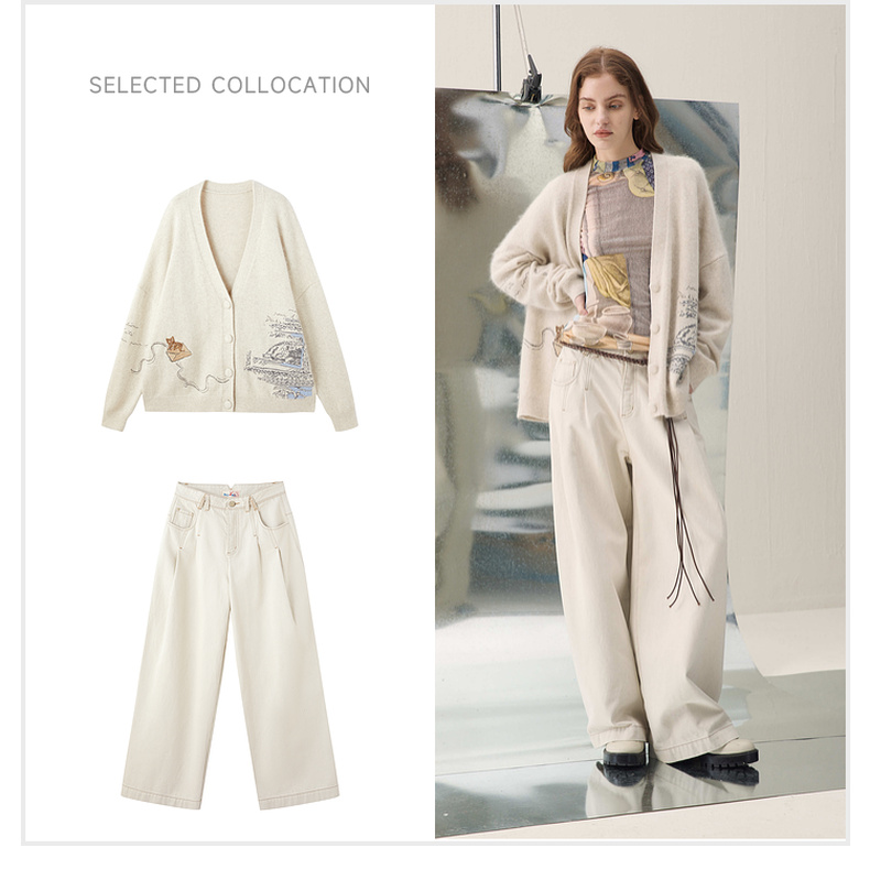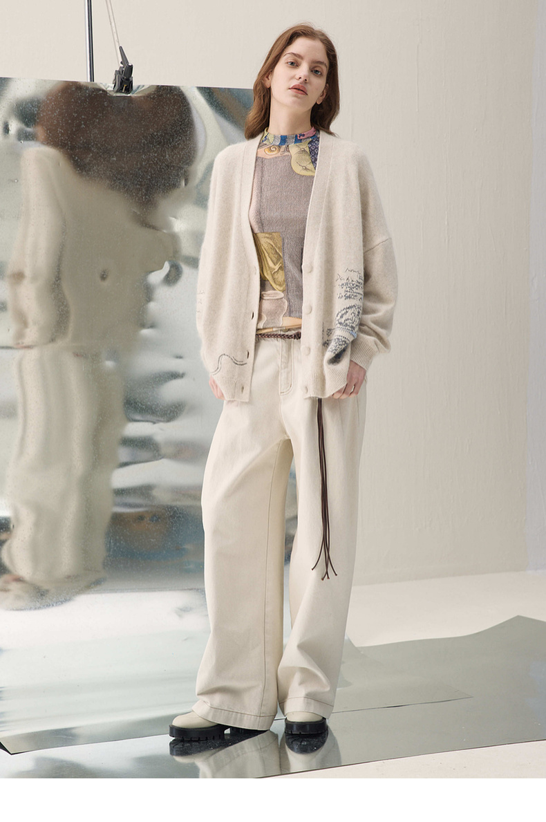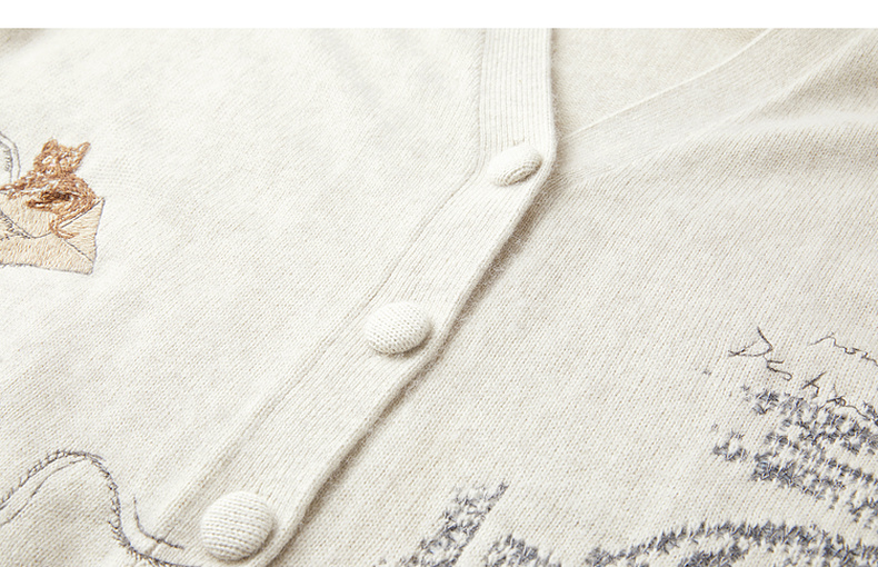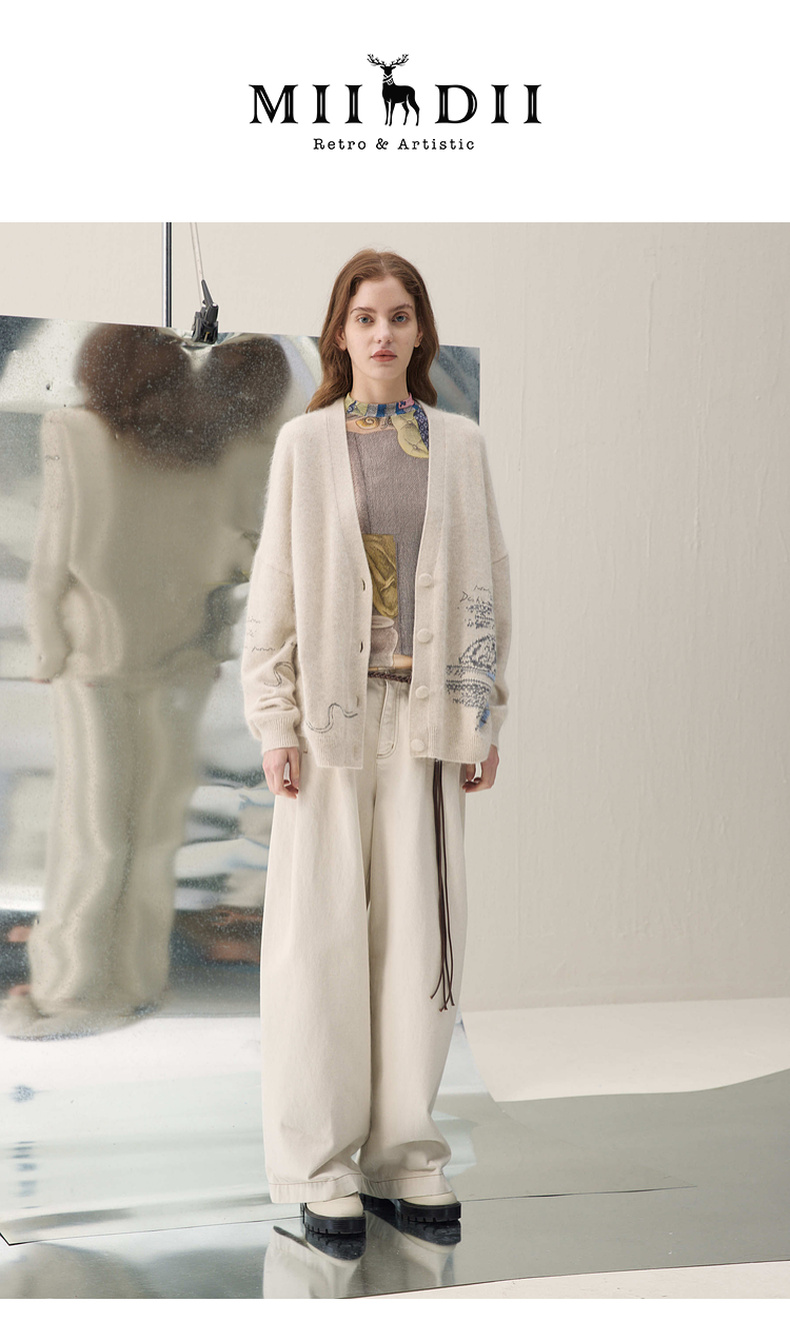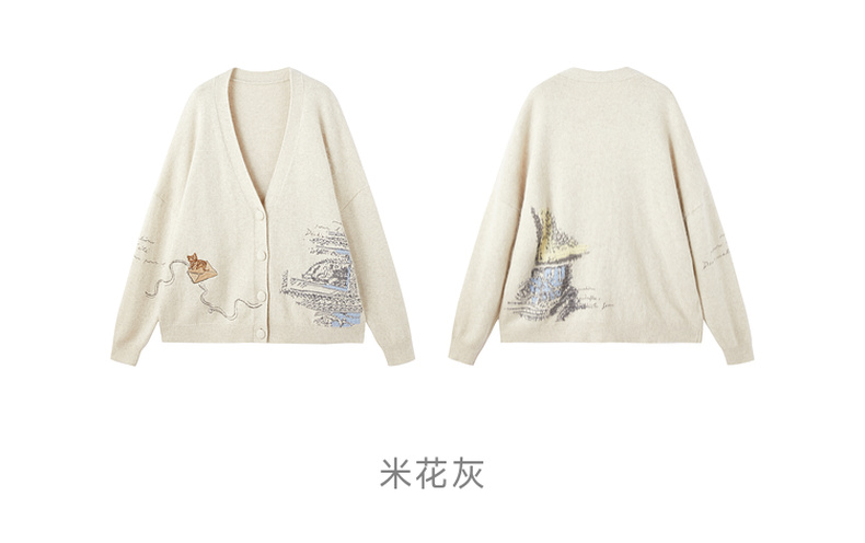 谜底V领针织开衫长袖2026年春季新品艺术肌理温暖毛衣女261MZ0339