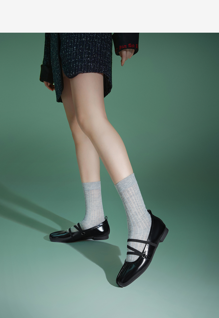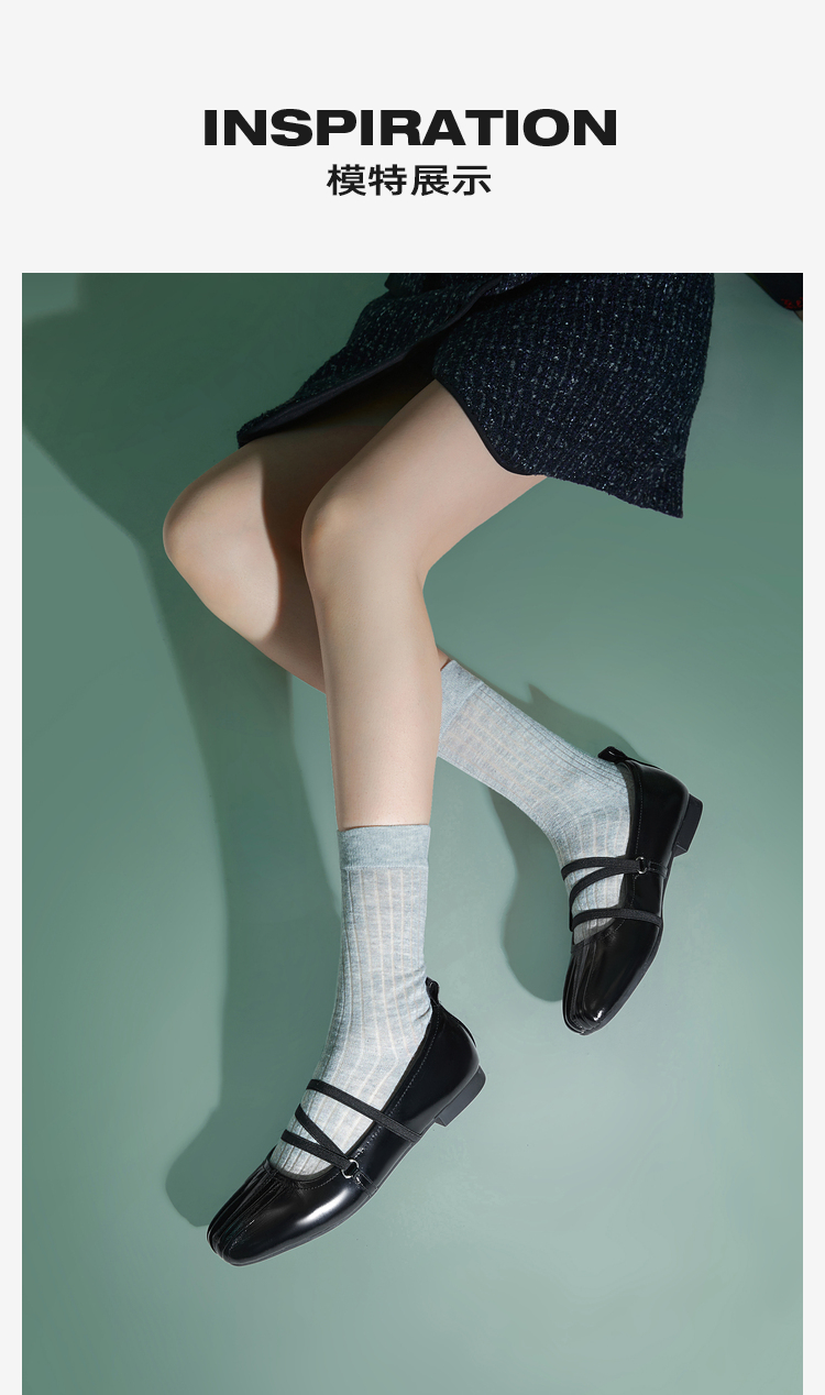 [赵昭仪同款]MIO米奥春方头芭蕾舞鞋交叉绑带平底玛丽珍鞋女M241425103