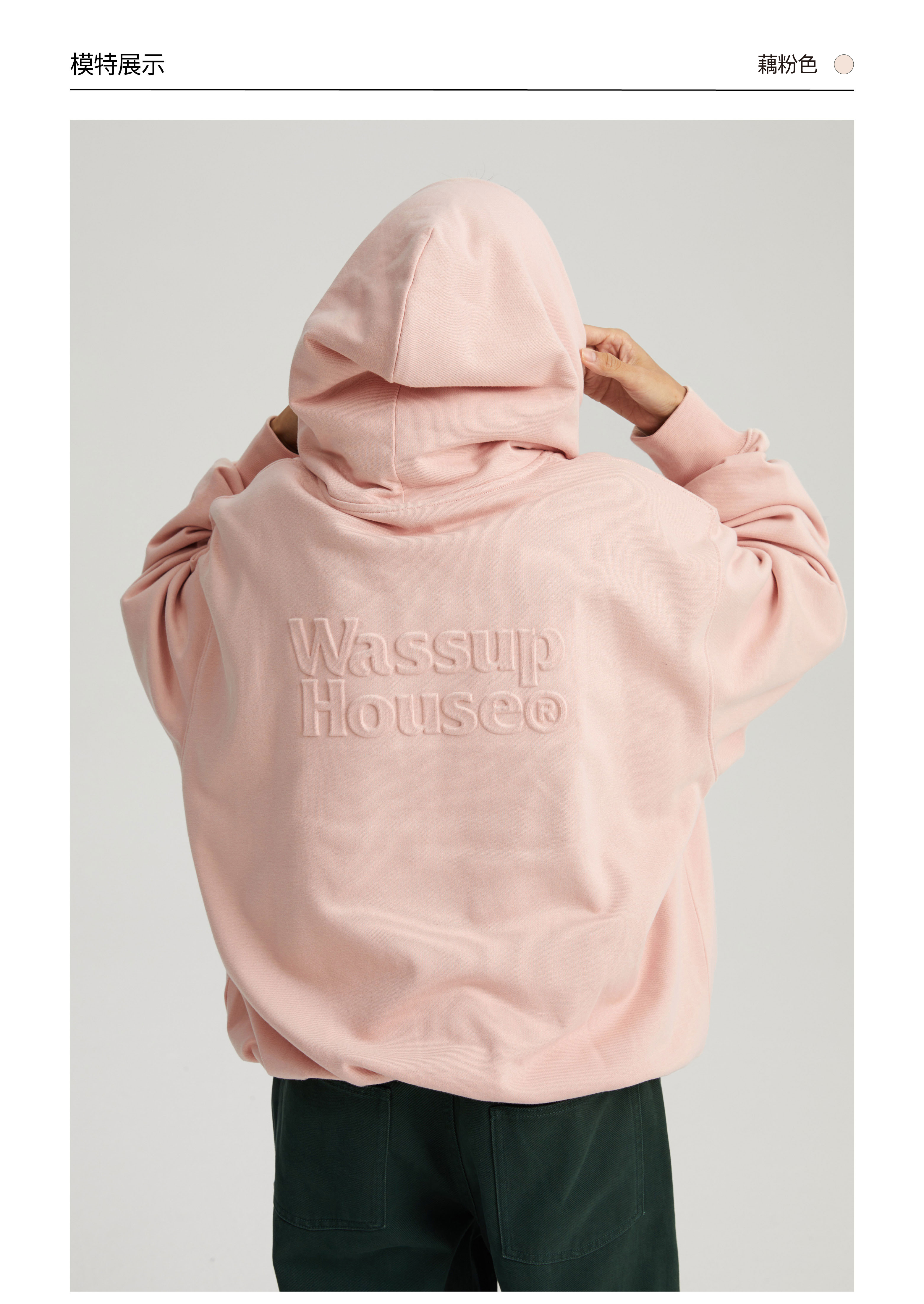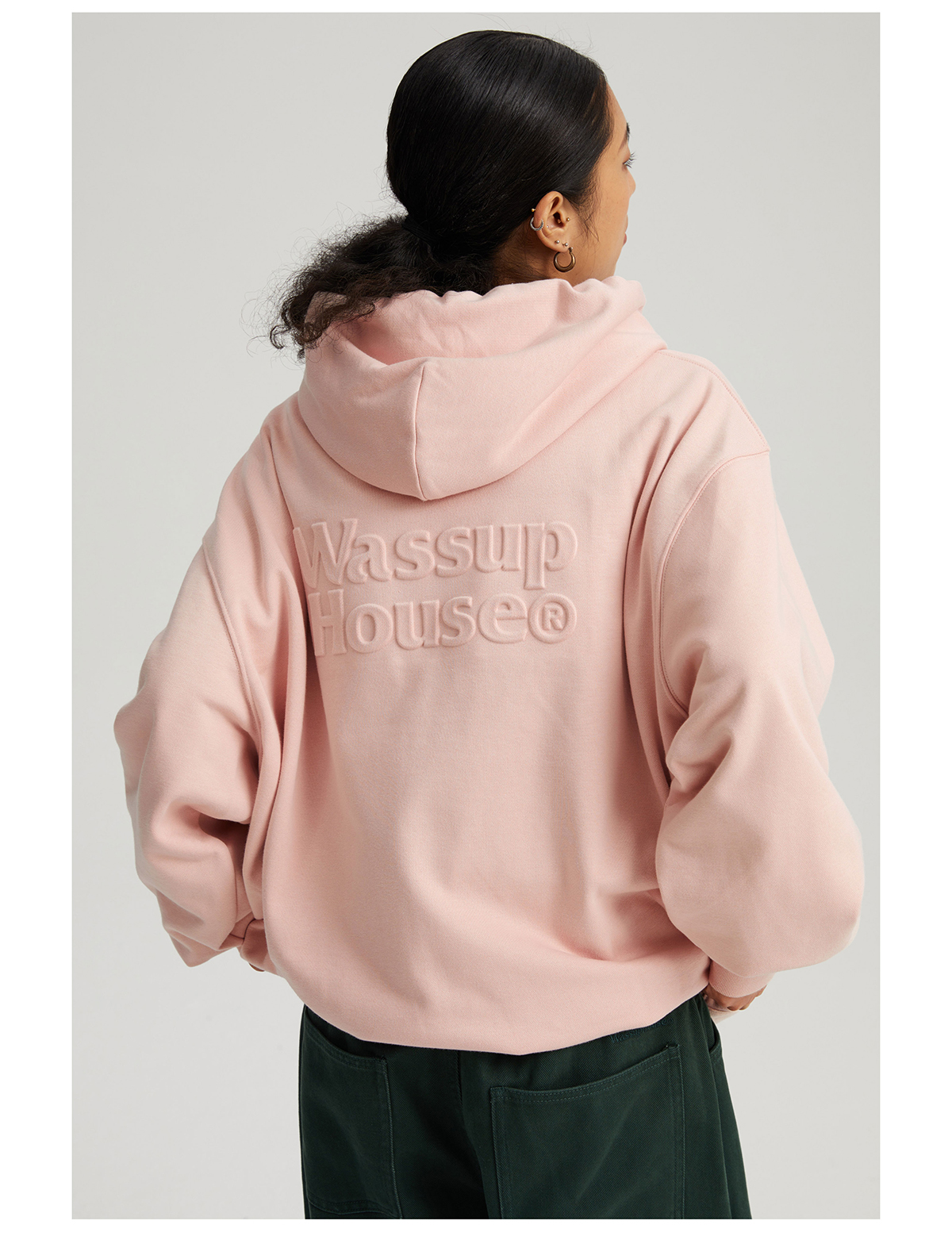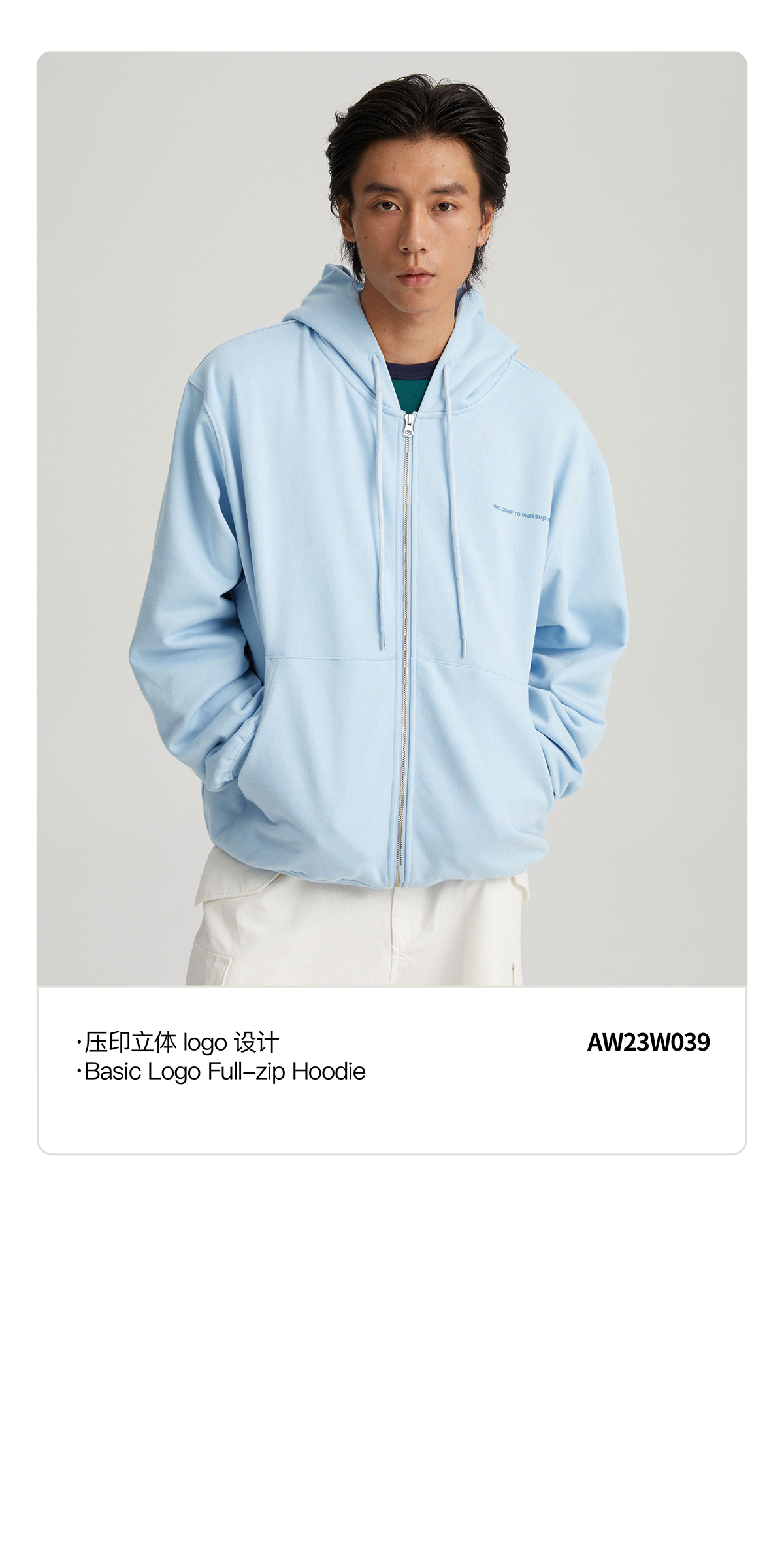 WassupHouse 立体凸印拉链连帽卫衣