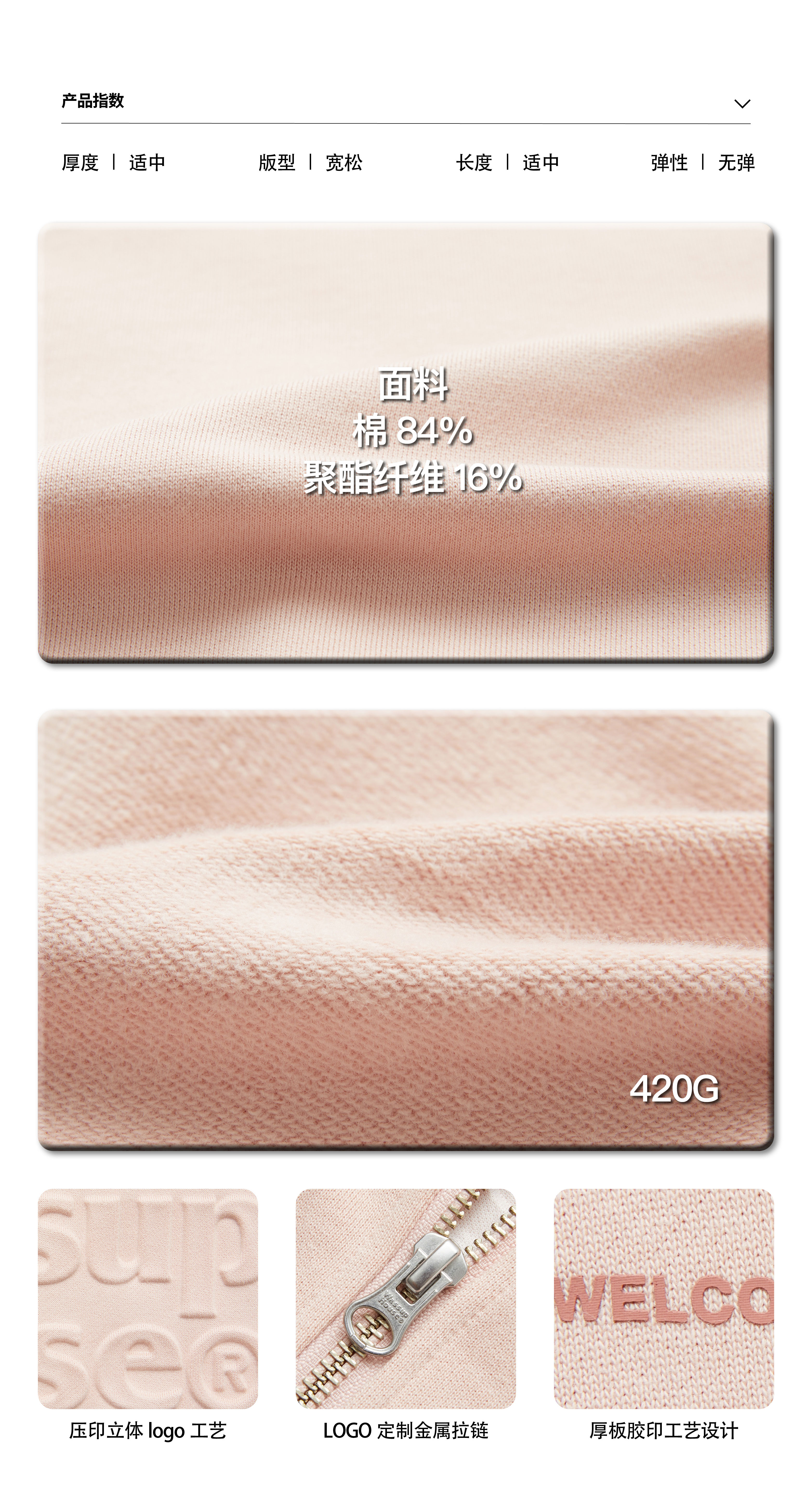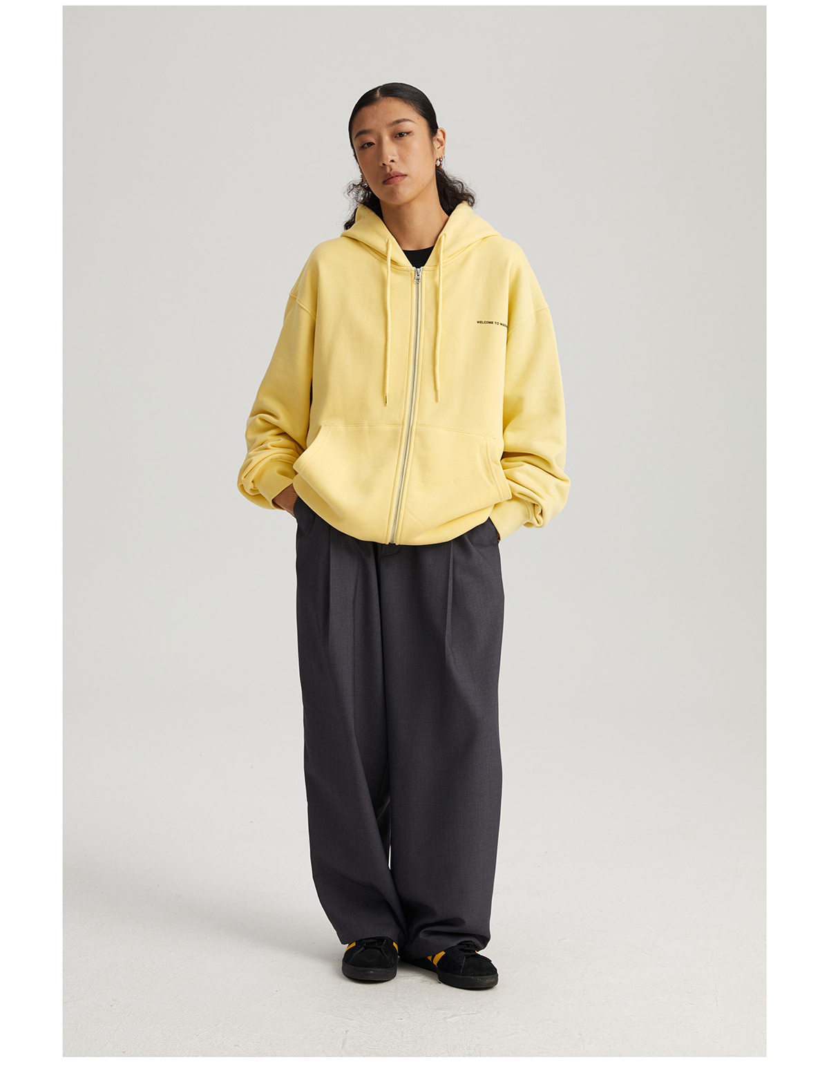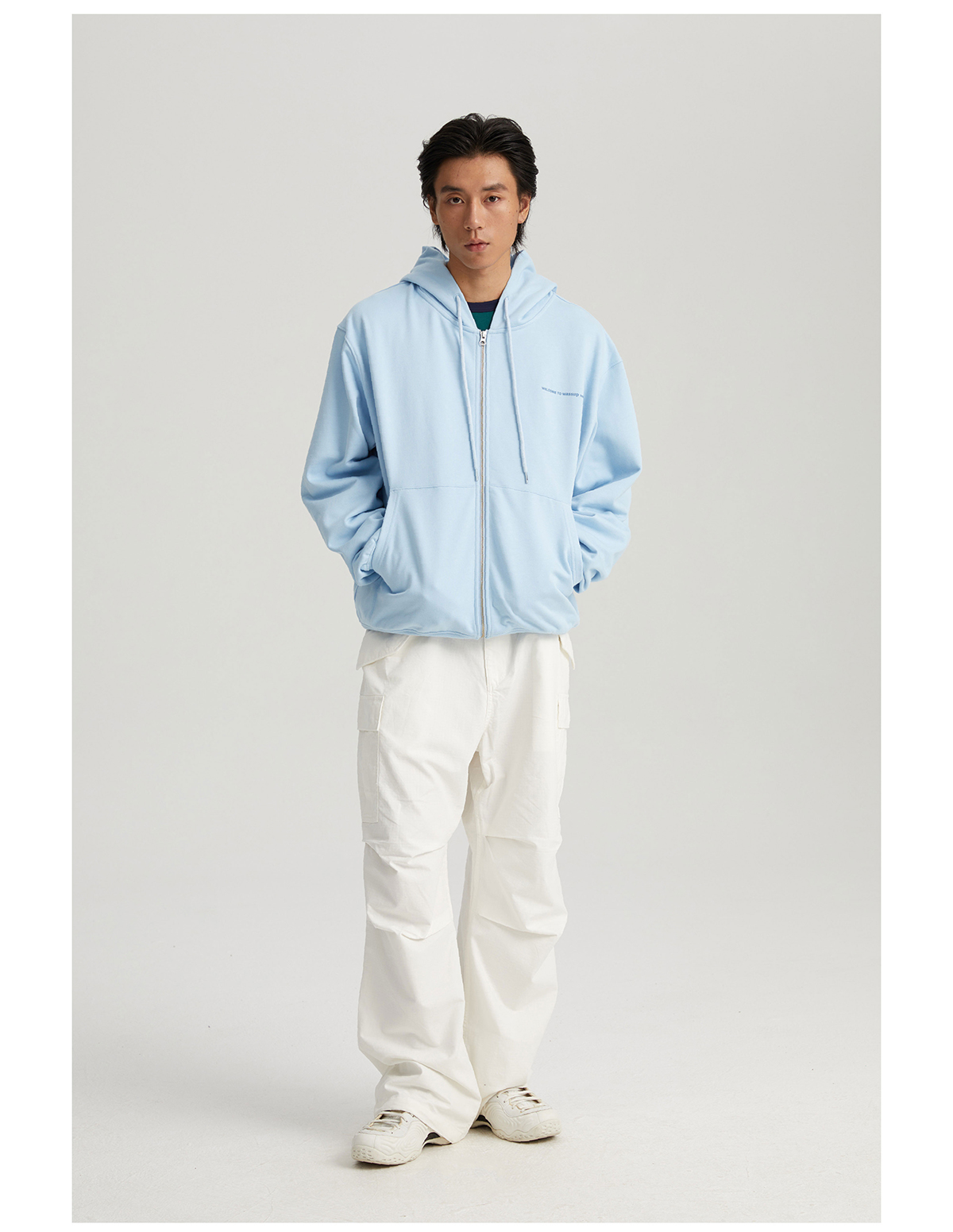 WassupHouse 立体凸印拉链连帽卫衣