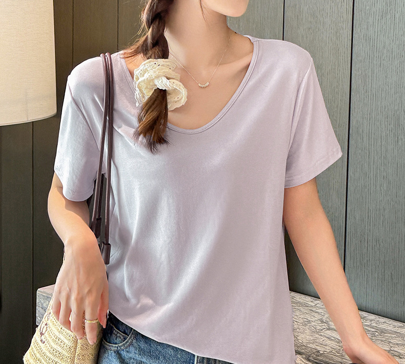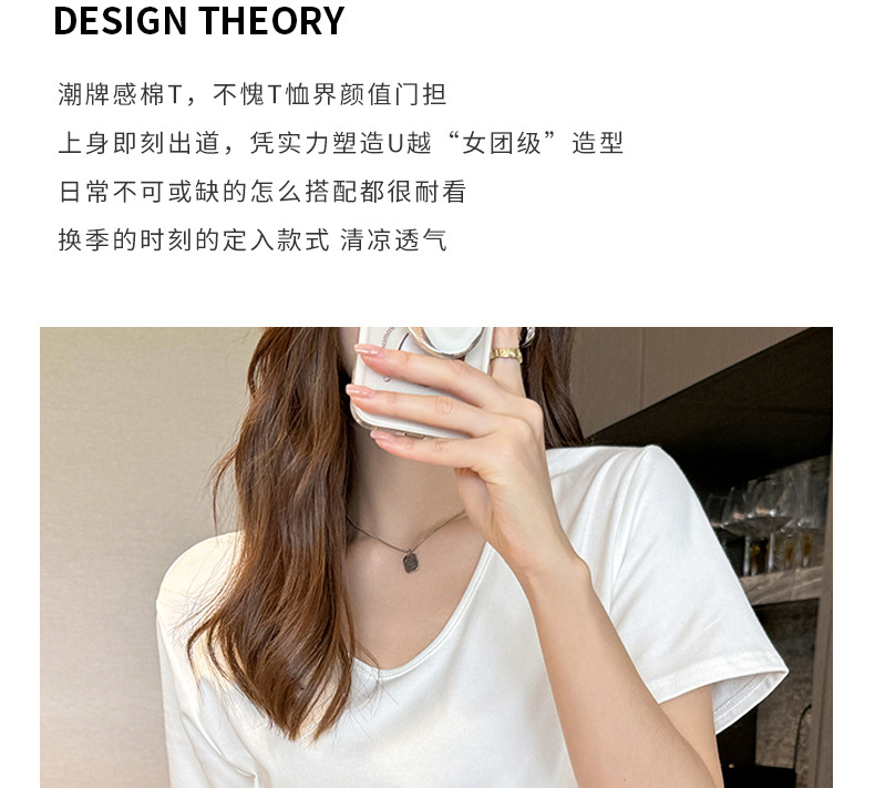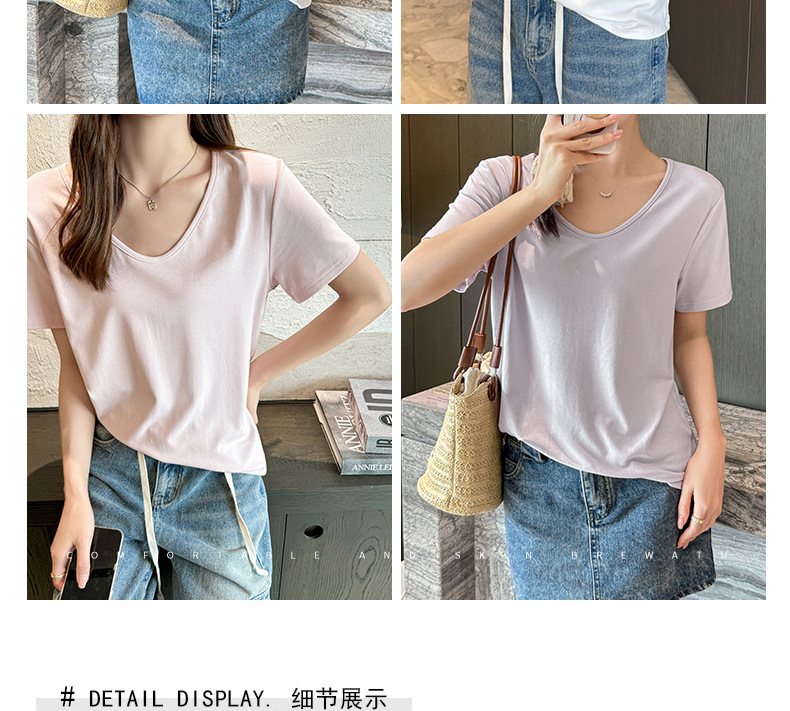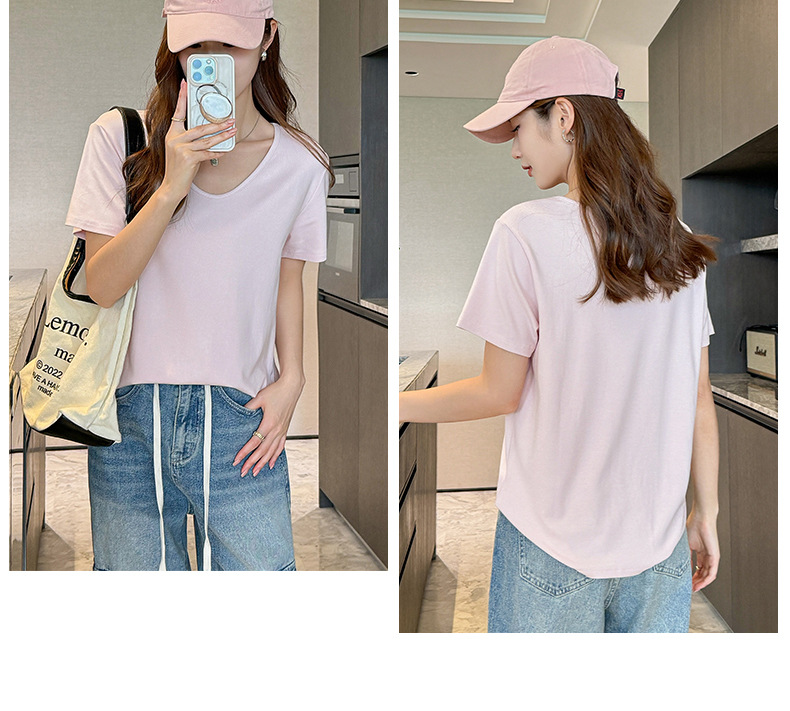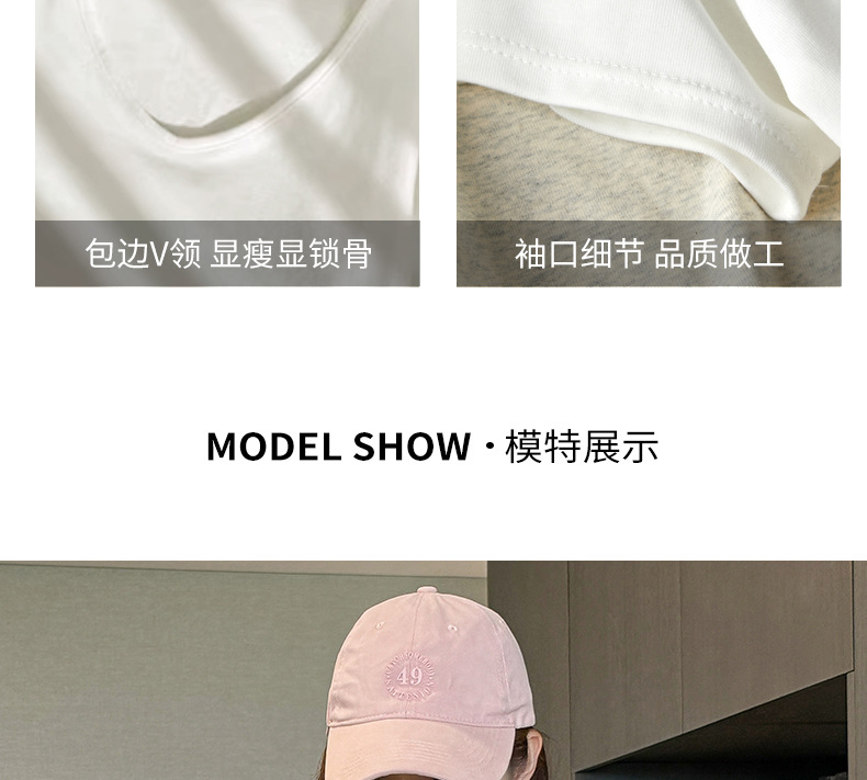 2025新款宽松V领正肩短袖t恤女夏季大码体恤高级感衣服遮肚子T恤
