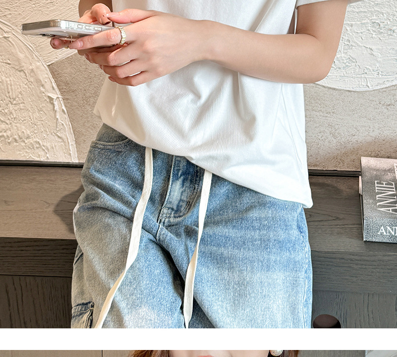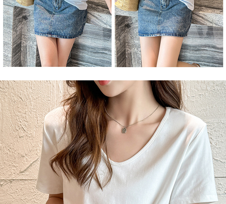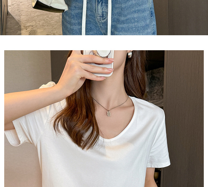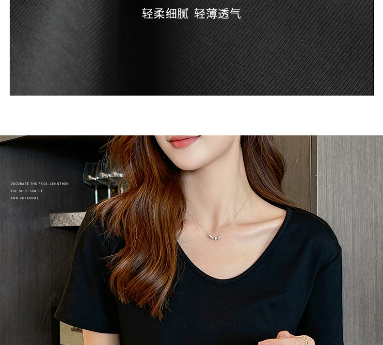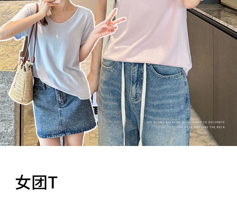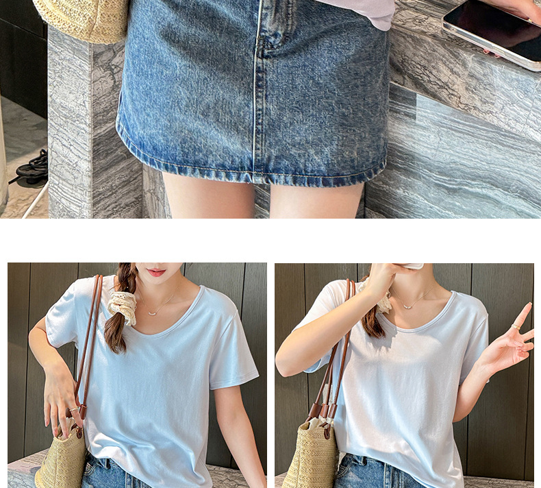 2025新款宽松V领正肩短袖t恤女夏季大码体恤高级感衣服遮肚子T恤