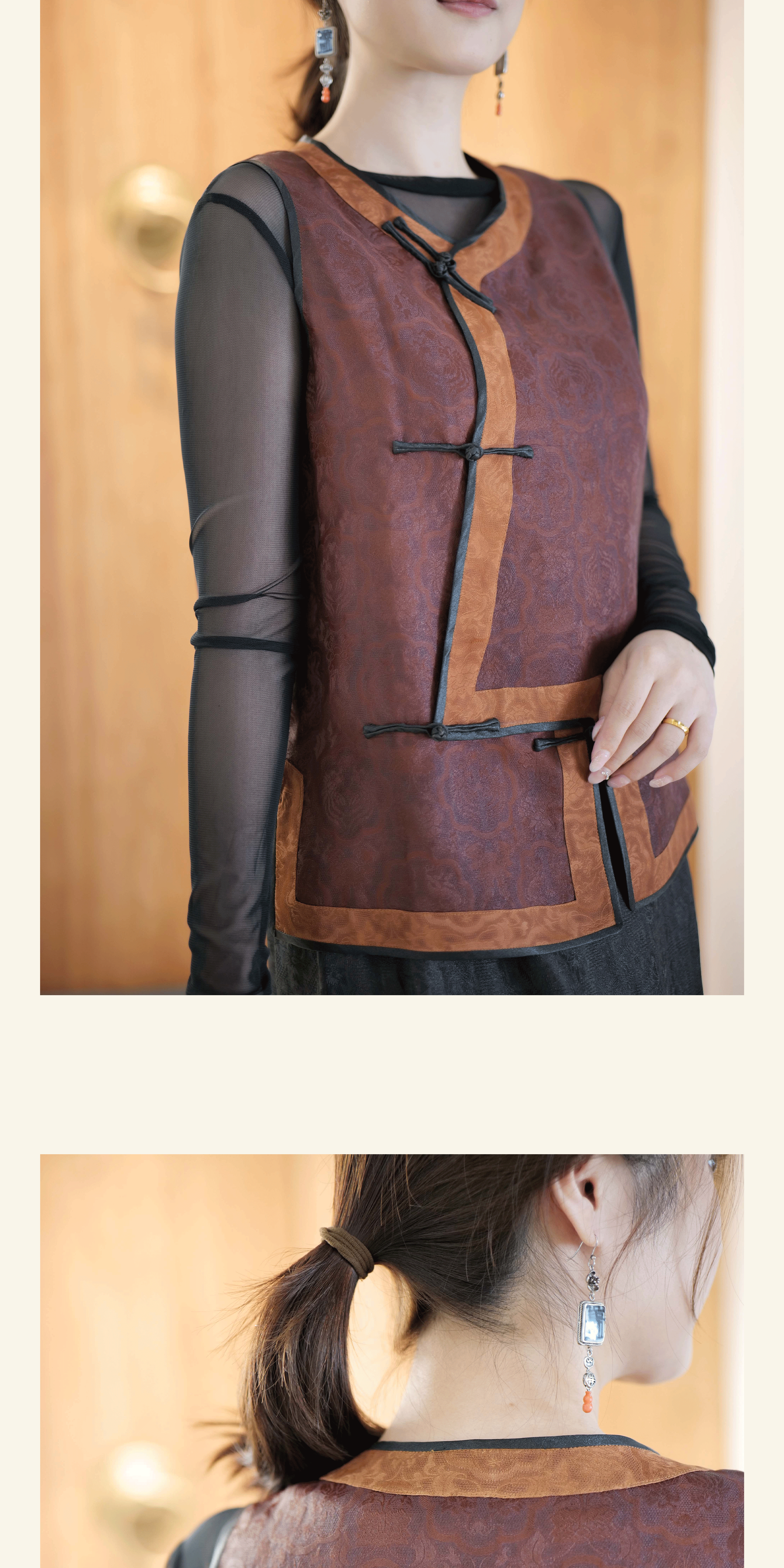 漫物记盘扣红云纱马甲XYS-W159