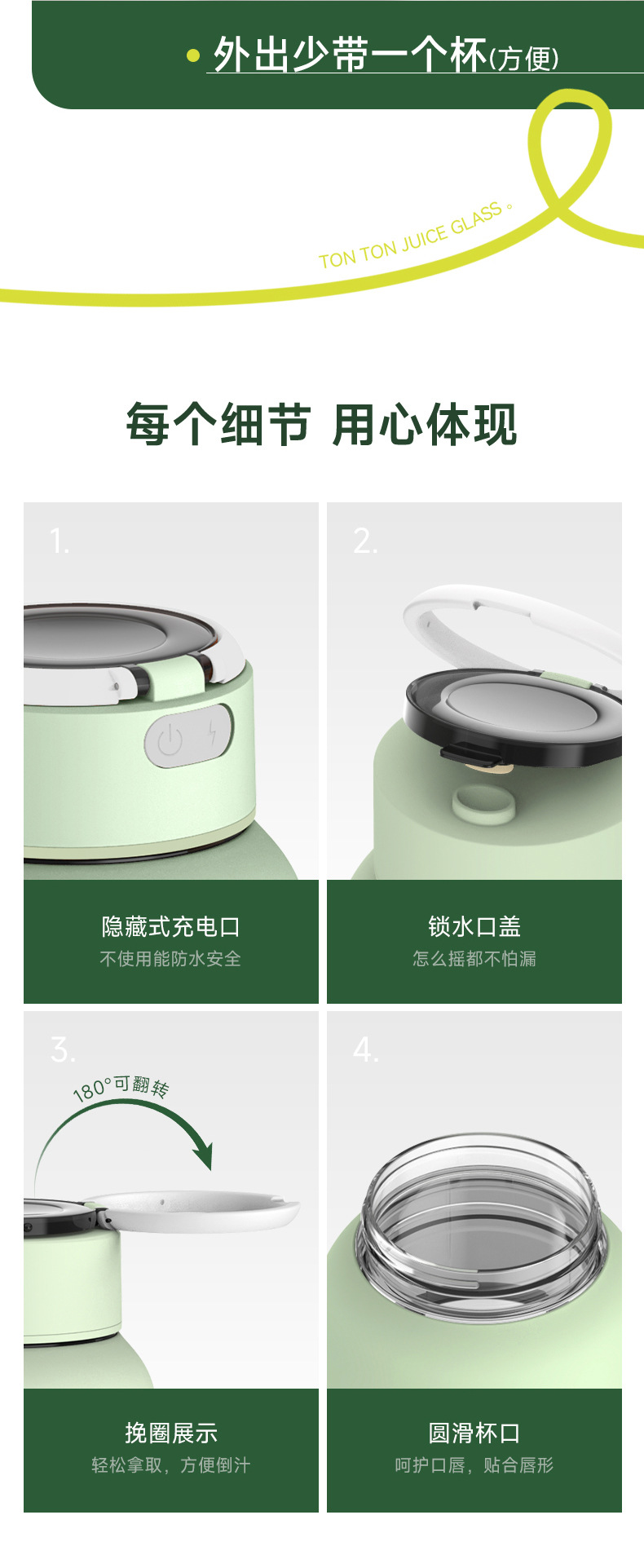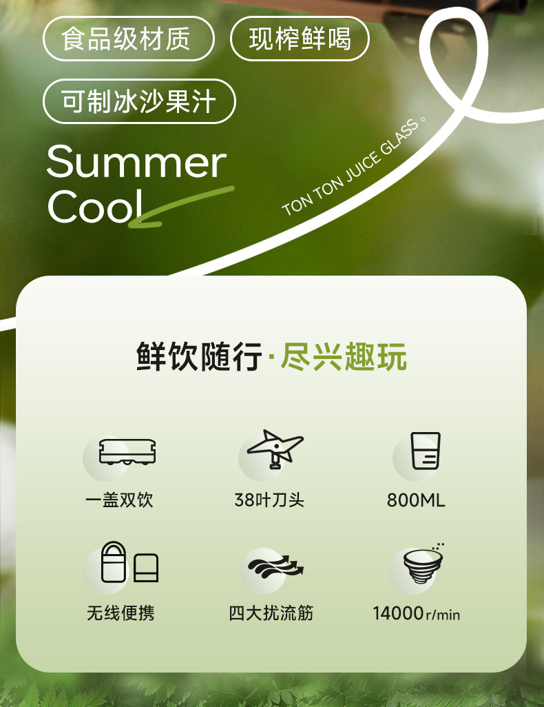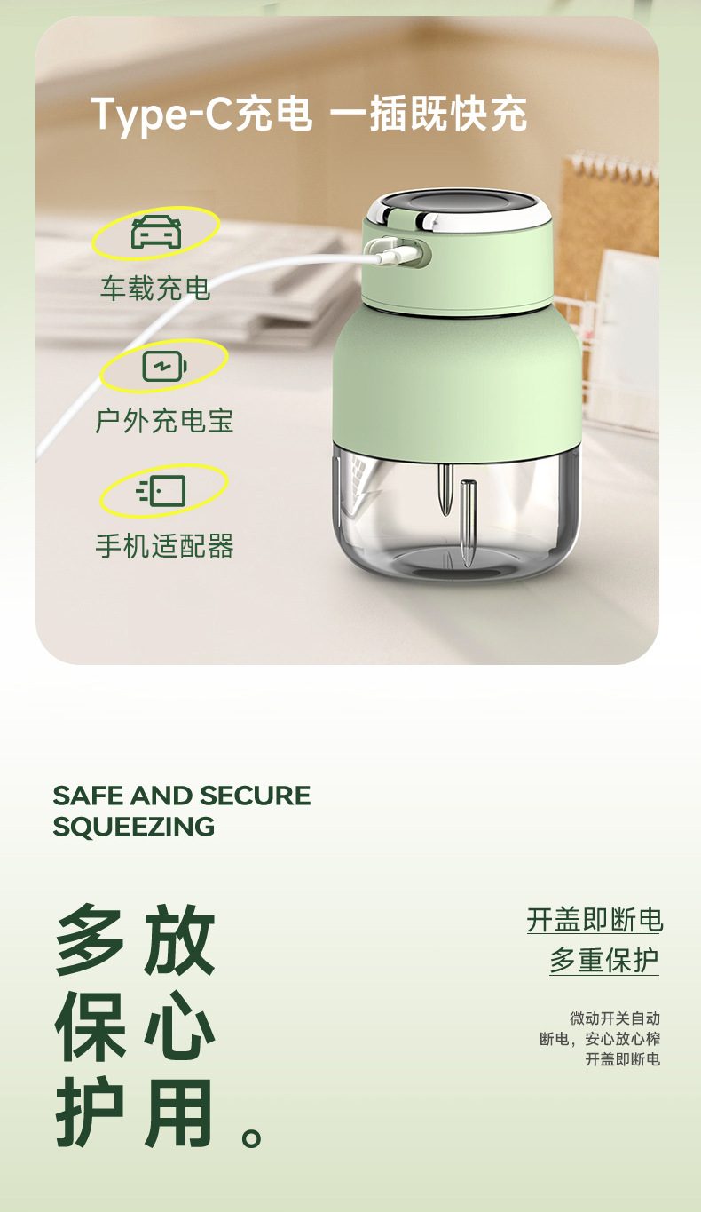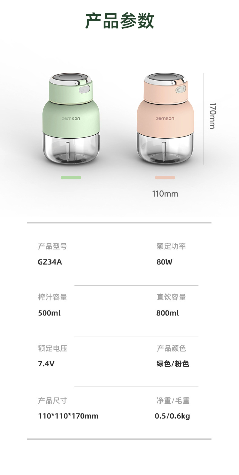 「高颜值!便携榨汁机」Zemkon榨汁机便携式小型水果做果汁机果蔬blender迷你榨汁杯餐饮用具