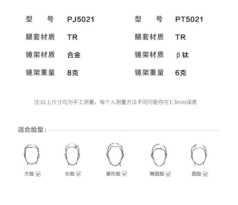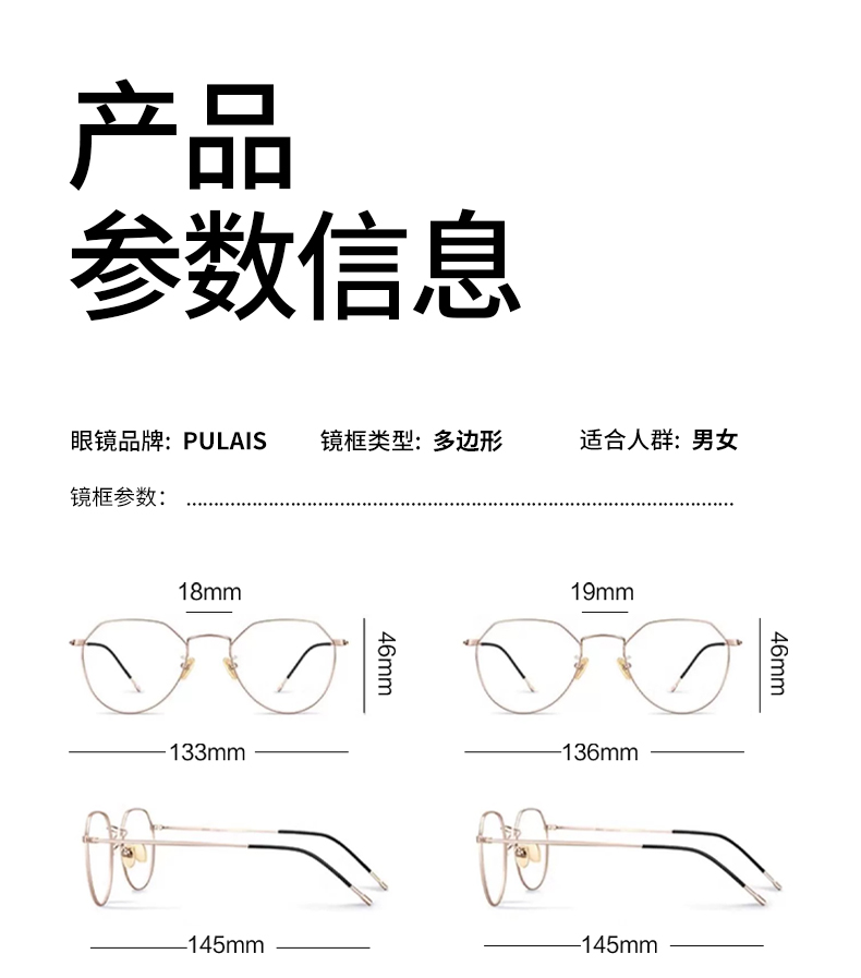 普莱斯PJ5021/PT5021 合金/B钛 素颜小心机 不化妆也好看多色可选
