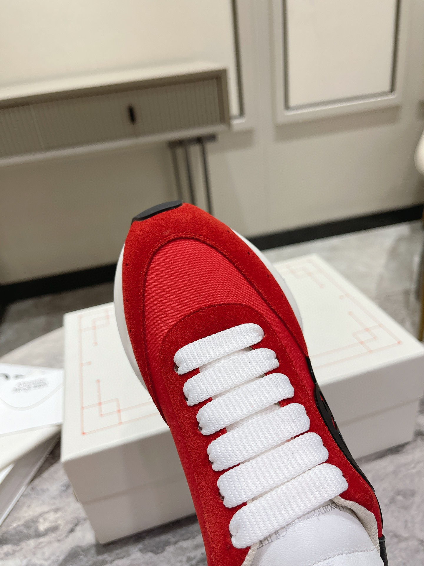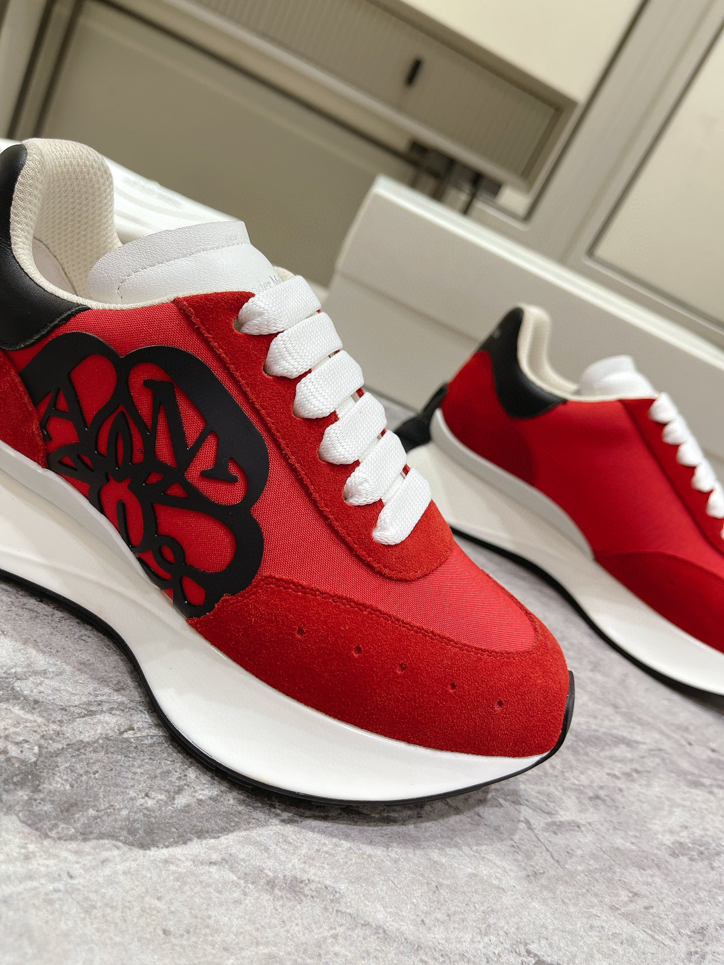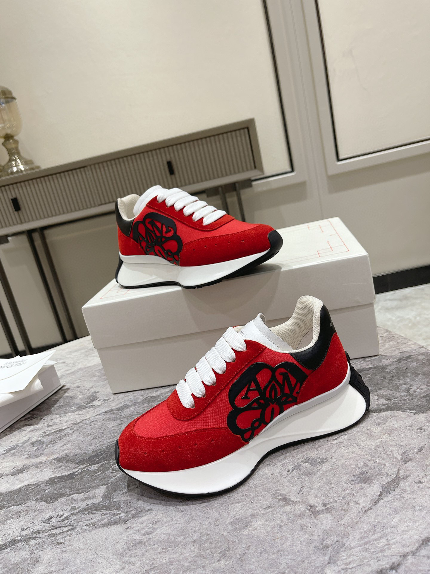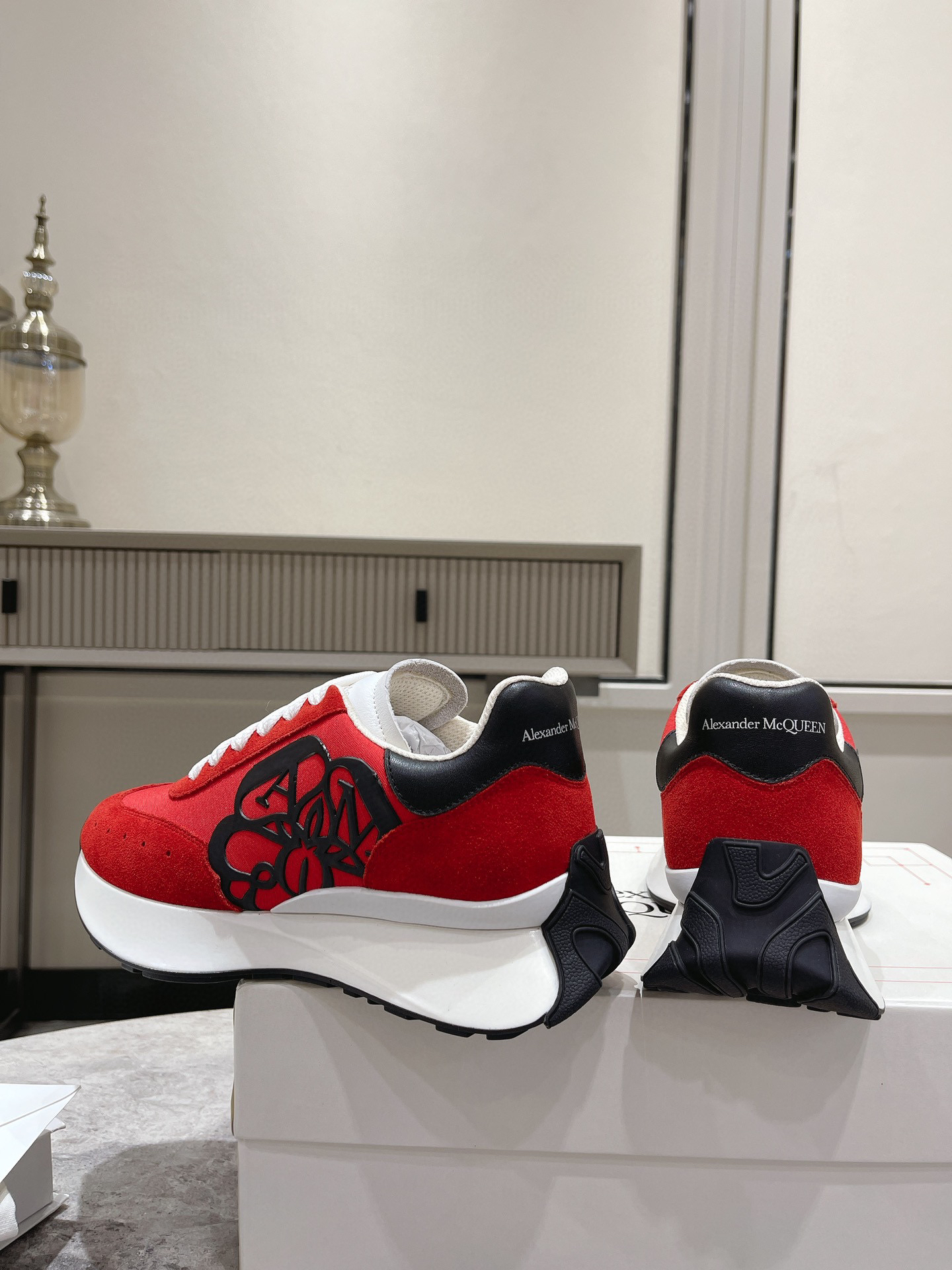 红色布面拼牛反绒