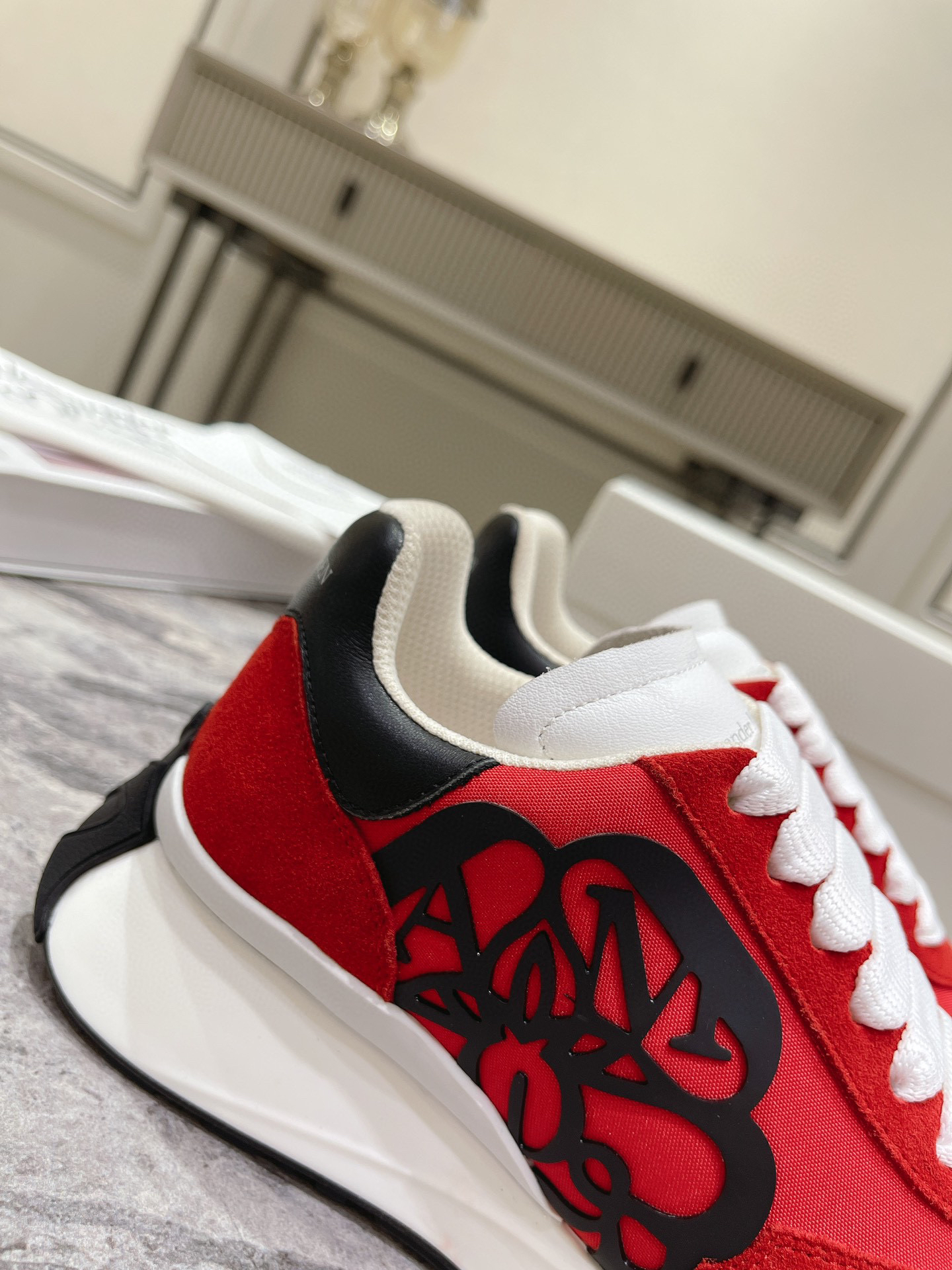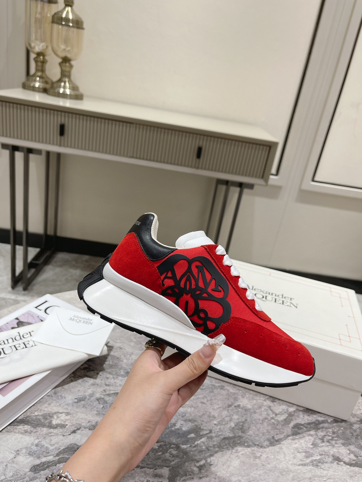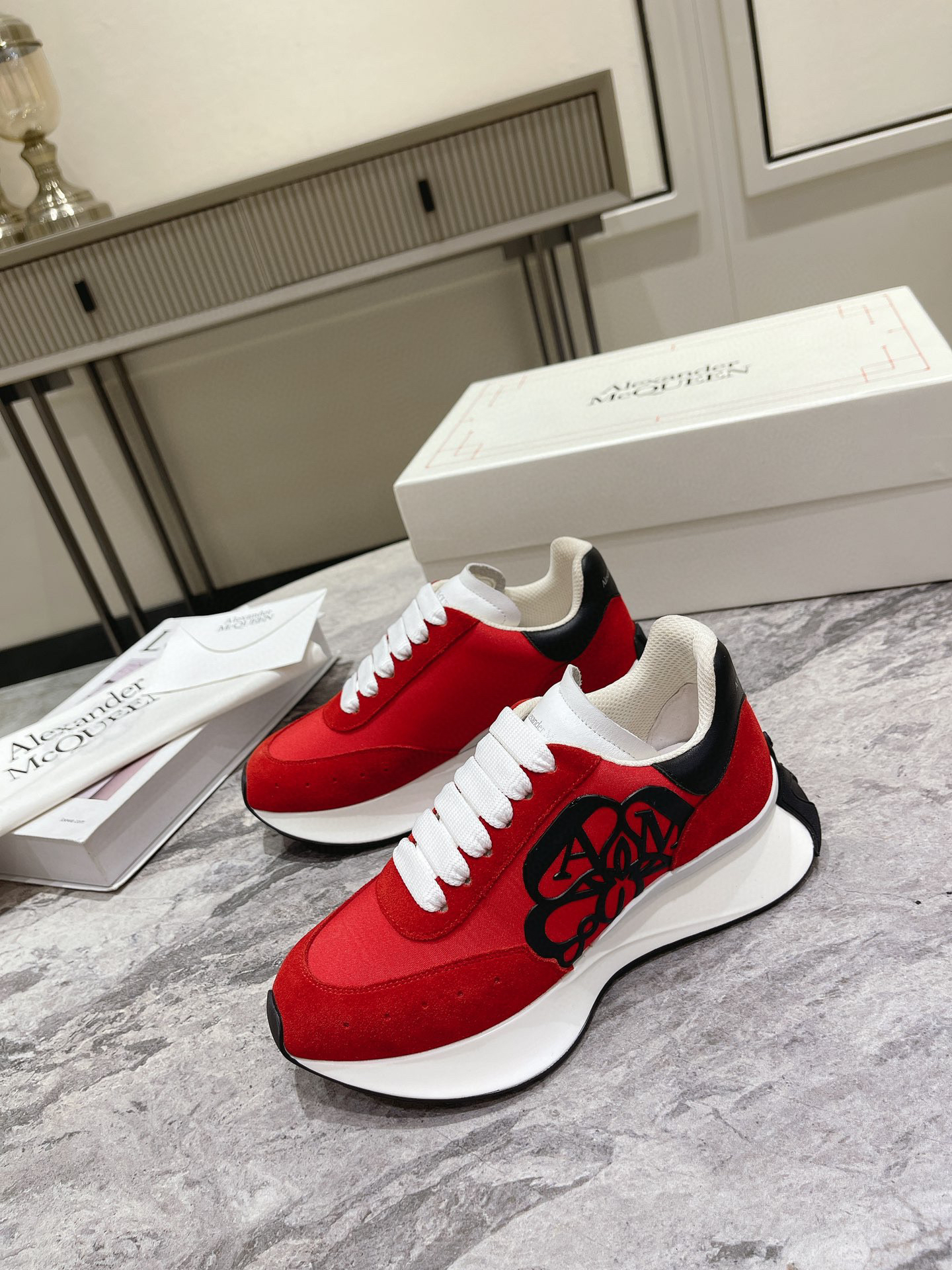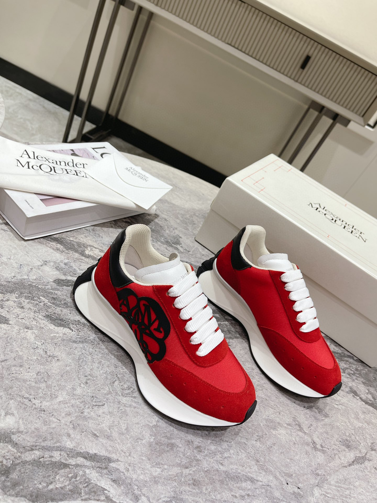 红色布面拼牛反绒