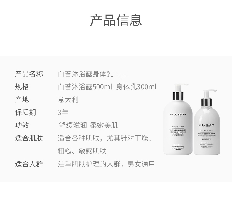商品名称:ACCA KAPPA 白苔沐浴露 300ml/白苔香味润肤露300ml
