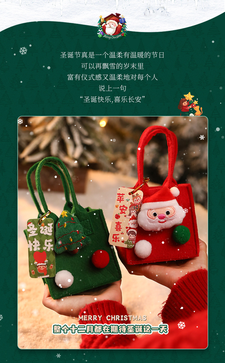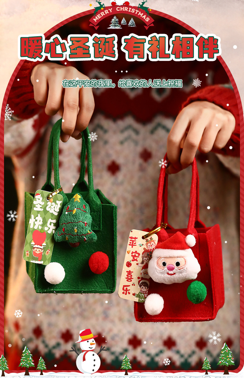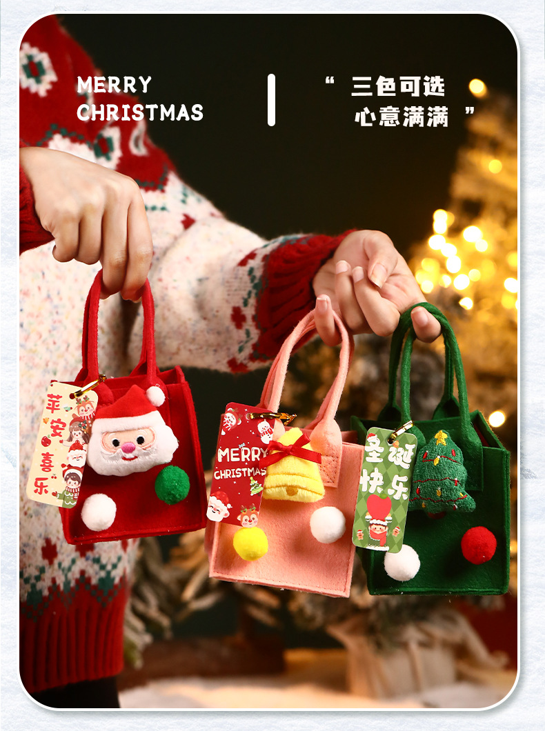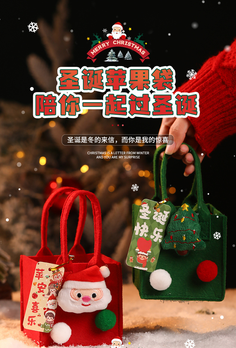 圣诞节🔔【拍1送1❗️趣味礼品袋】 】礼物苹果袋平安夜平安果包装盒毛毡手提袋 装饰小礼盒