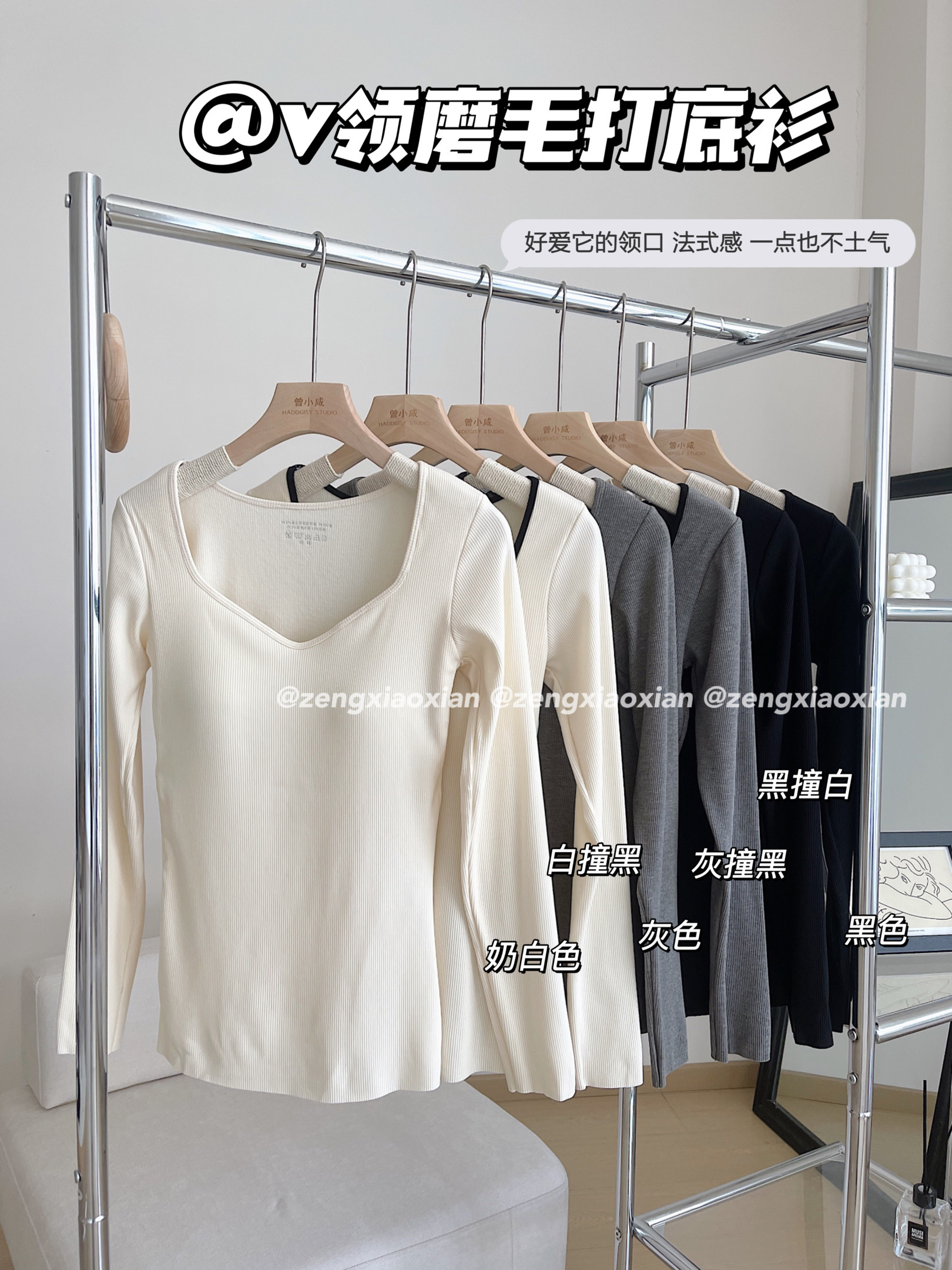 <曾小咸推荐> V领磨毛打底衫