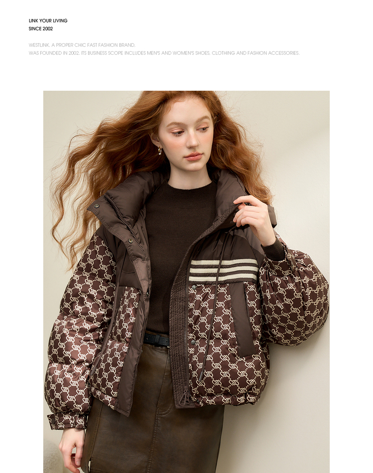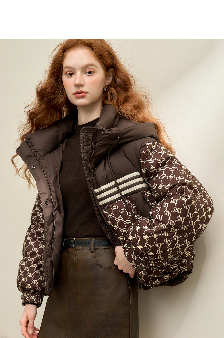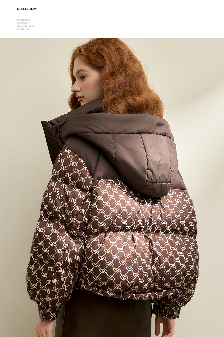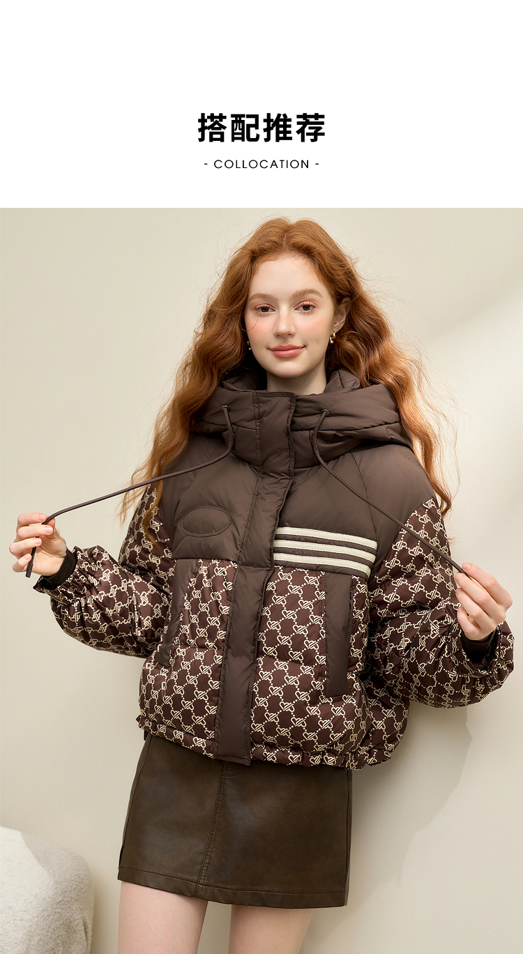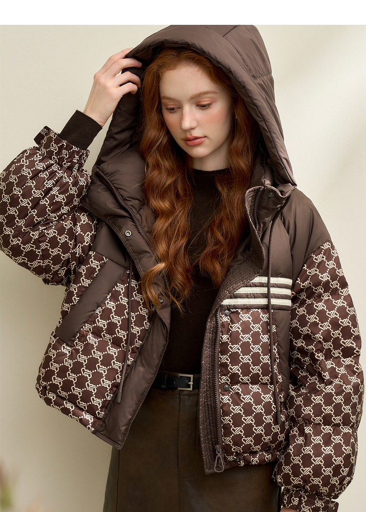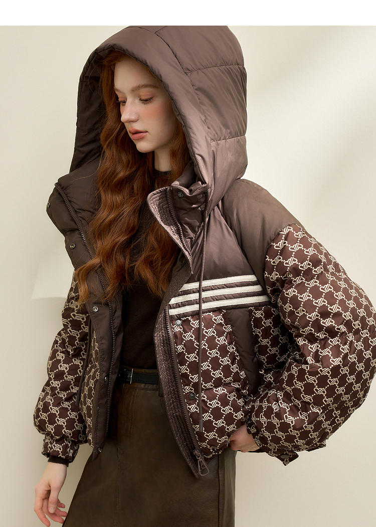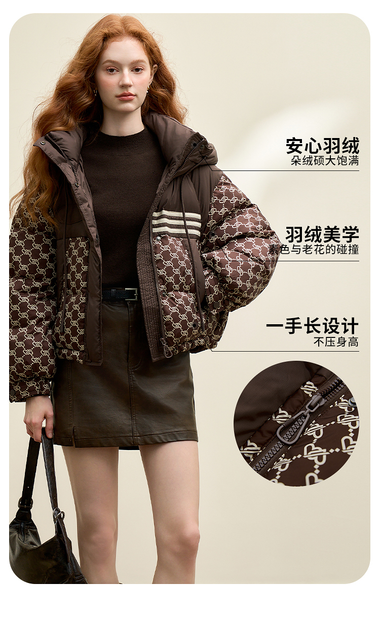 高级感老花立领连帽短款羽绒服女秋冬面包服保暖外套V0043510