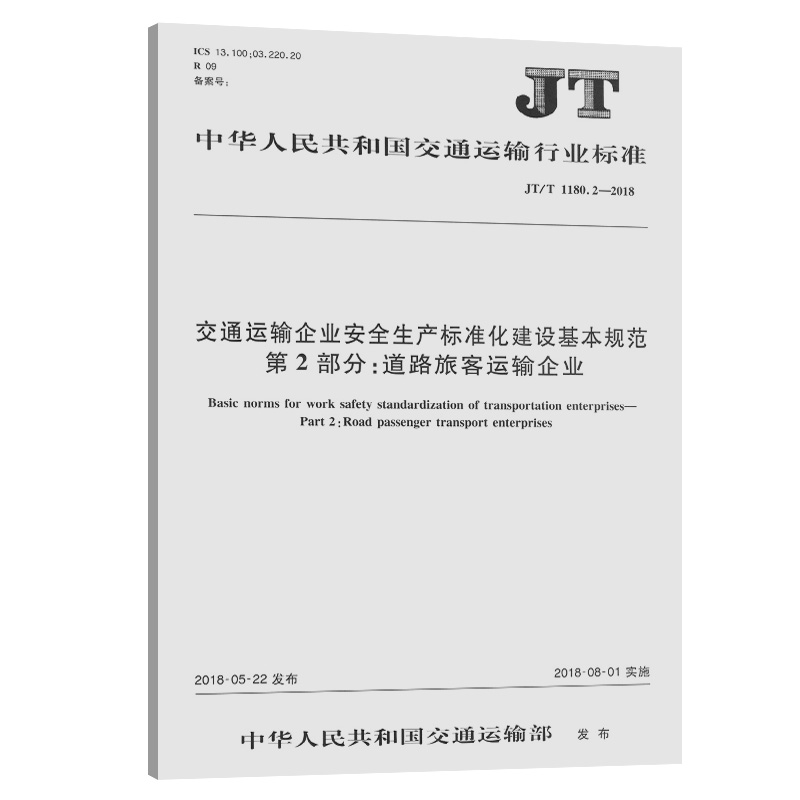 正版现货 JT/T 1180.2-2018 交通运输企业安全生产标准化建设基本规范 第2部分:道路旅客运输企业 人民交通出版社股份有限公司