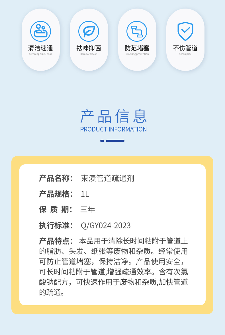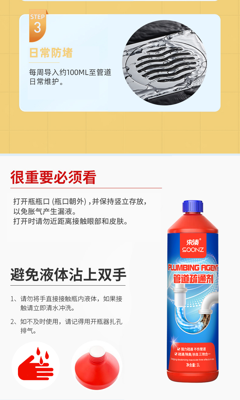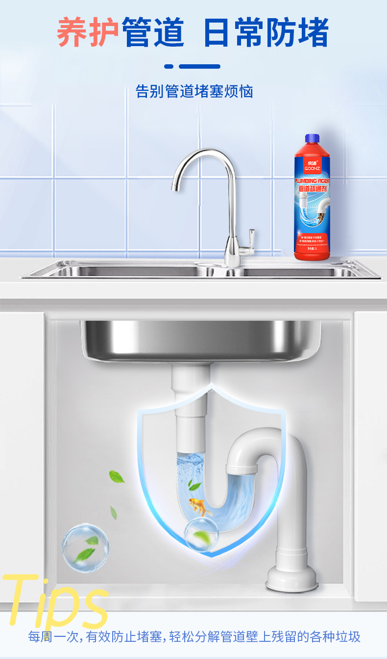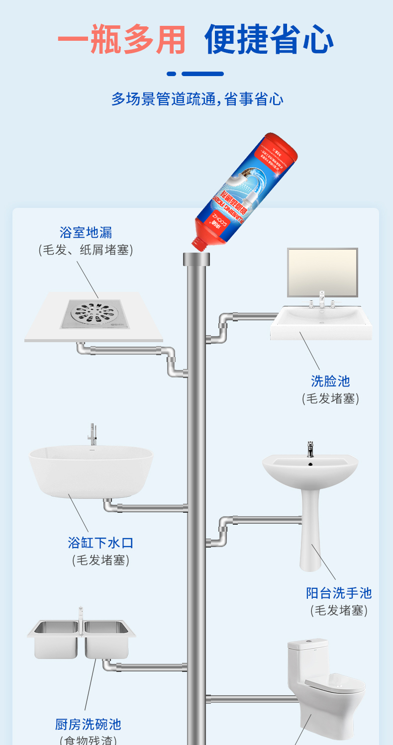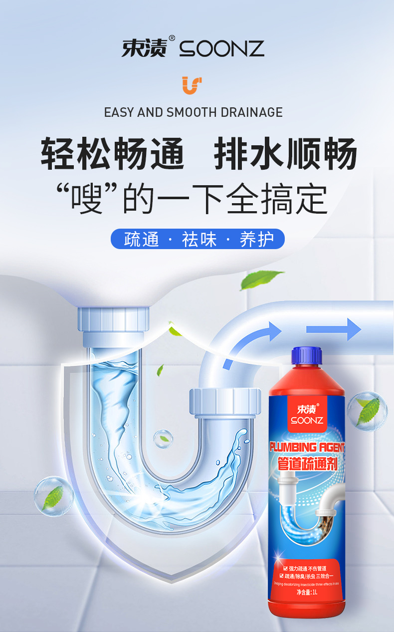 【自营】束渍-管道疏通啫喱强力卫生间马桶厨房下水道疏通剂除臭溶解清洁剂(1L) SUZHI-043