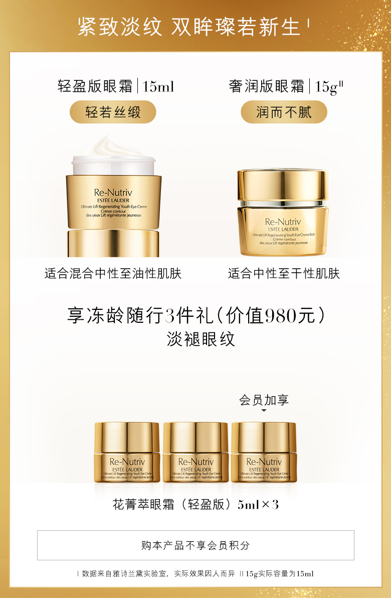 雅诗兰黛白金眼霜清爽15ml 淡细纹眼袋 提眼角