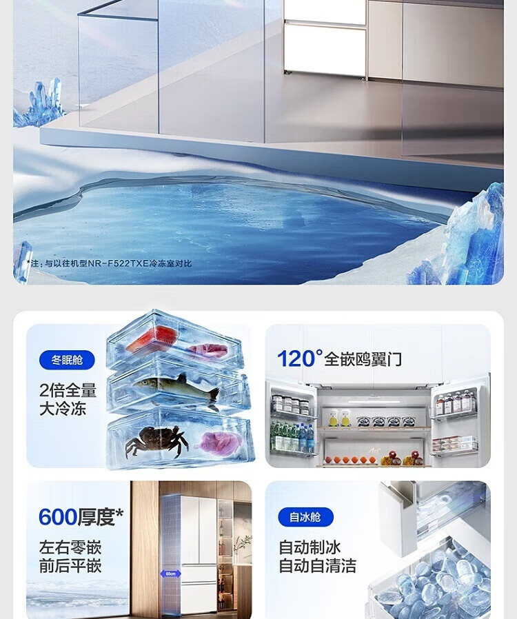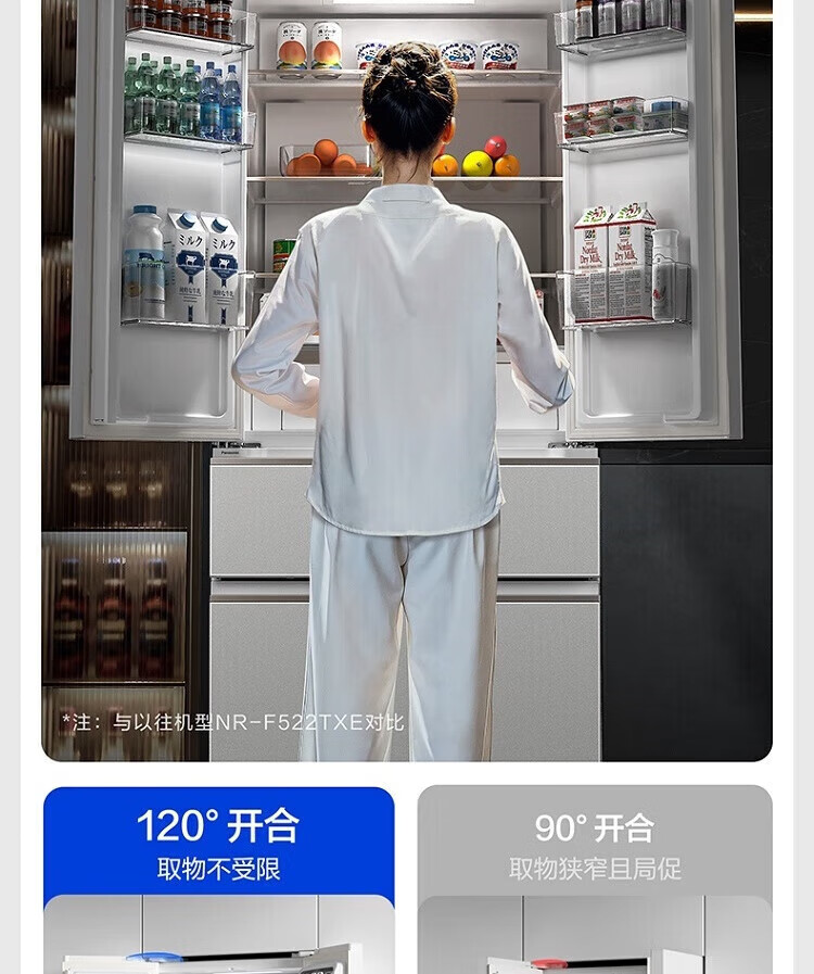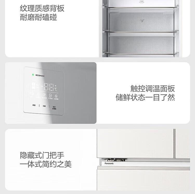 【国补15%】松下大海豹冰箱NR-D531AX-S法式四门银钢化玻璃面板法式零嵌冰箱