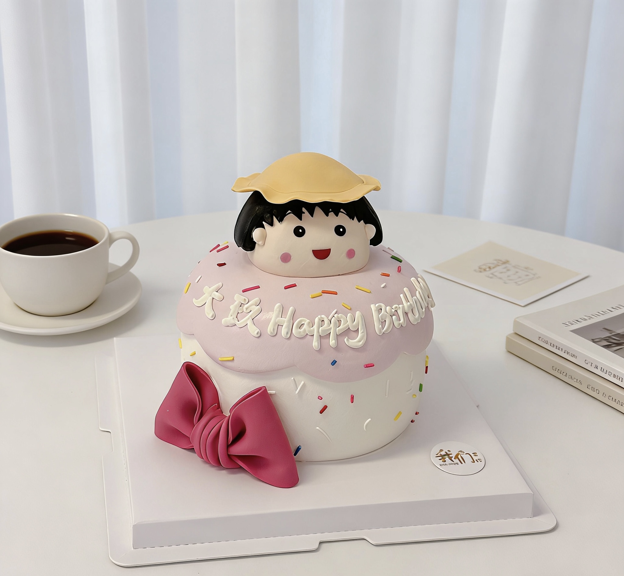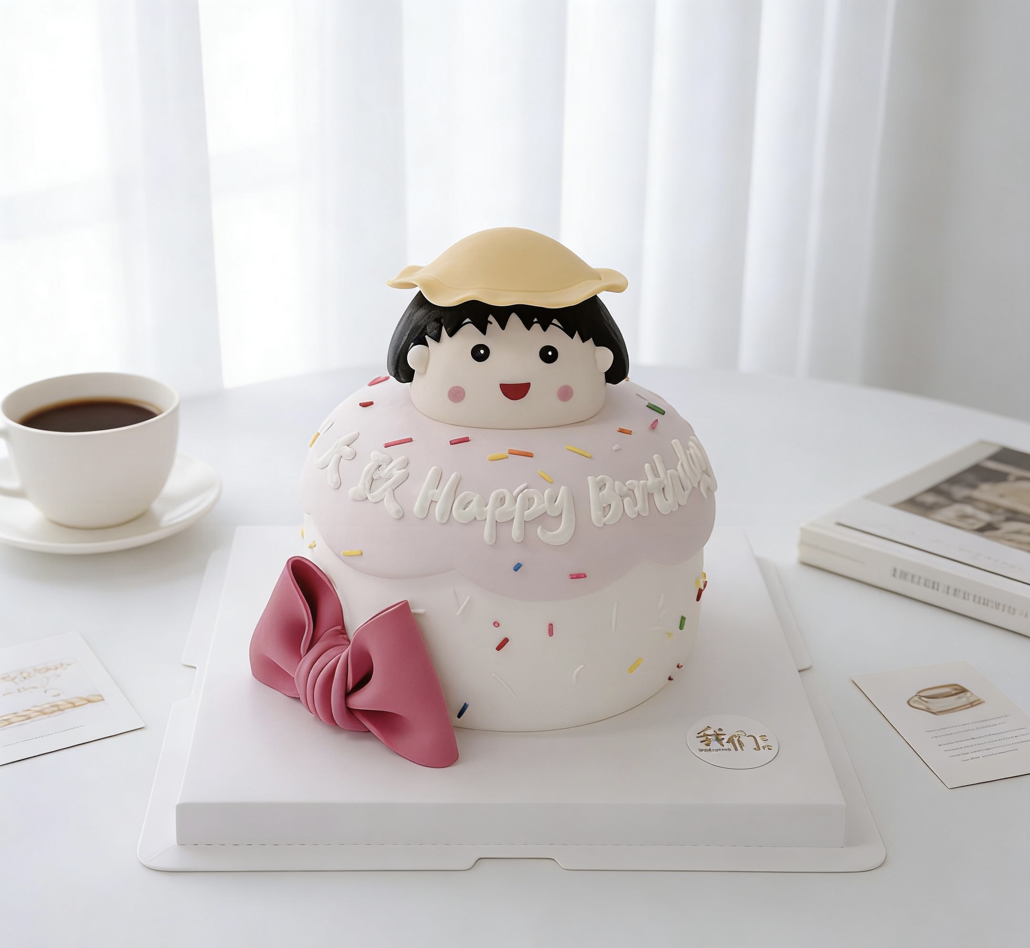 樱桃小丸子蝴蝶结立体卡通蛋糕-低糖处理无添加