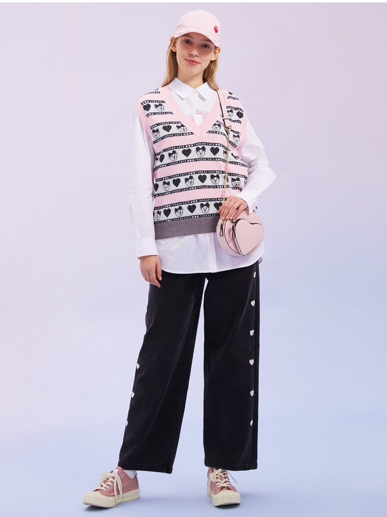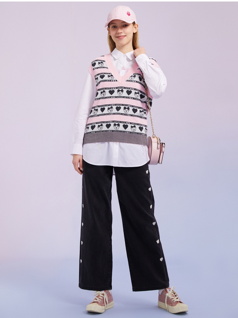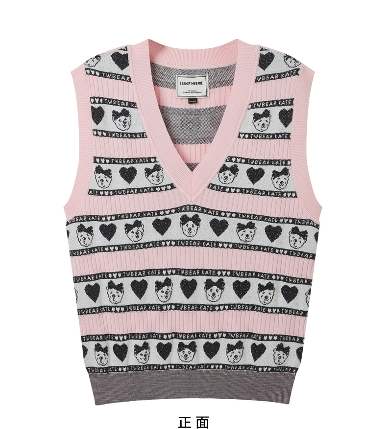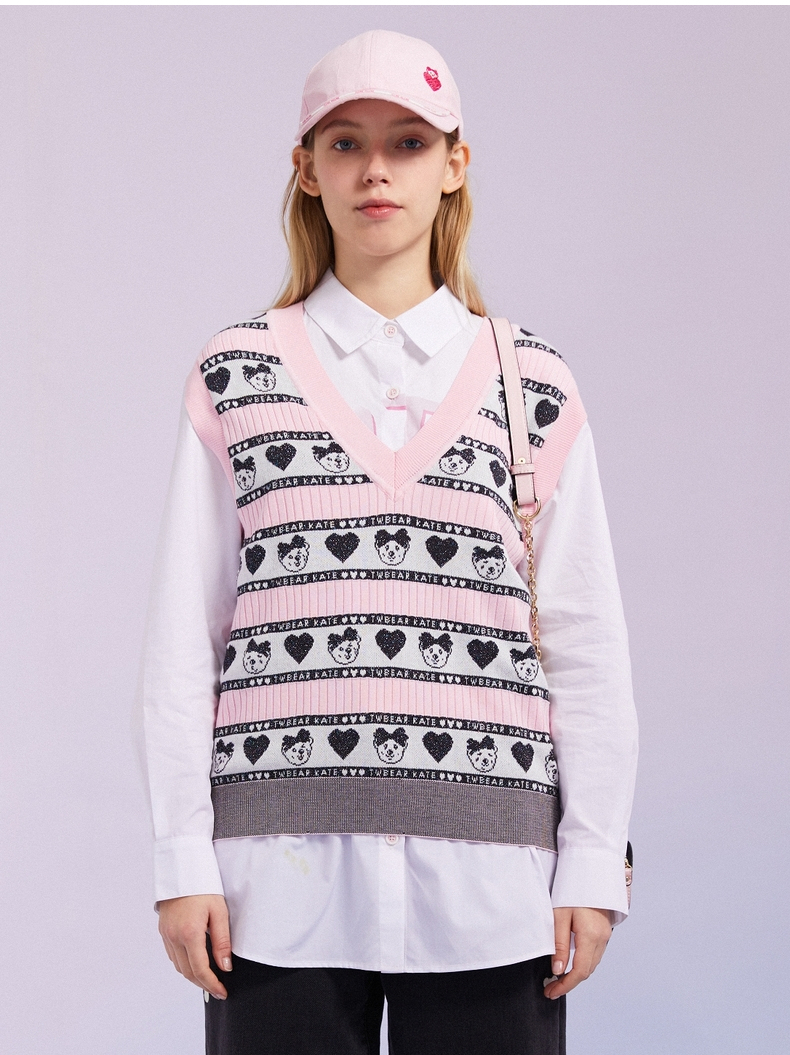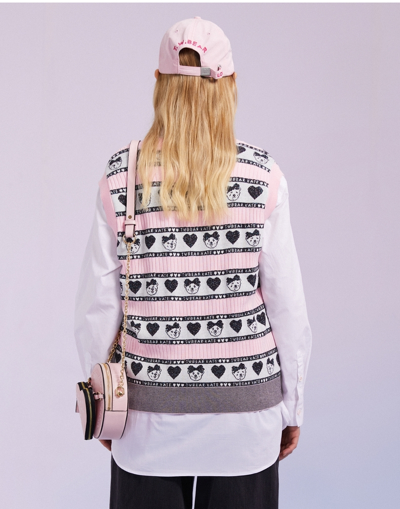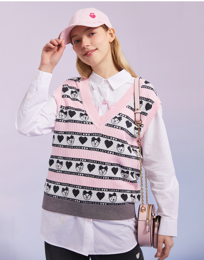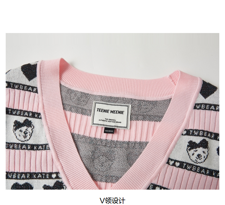 TeenieWeenie小熊2022春季新款V领针织衫背心马甲女甜美外穿内搭TTKN221202T