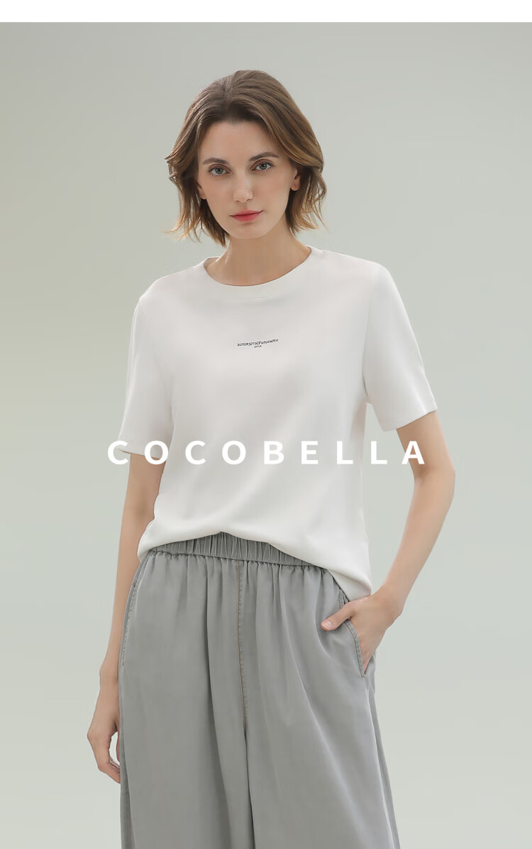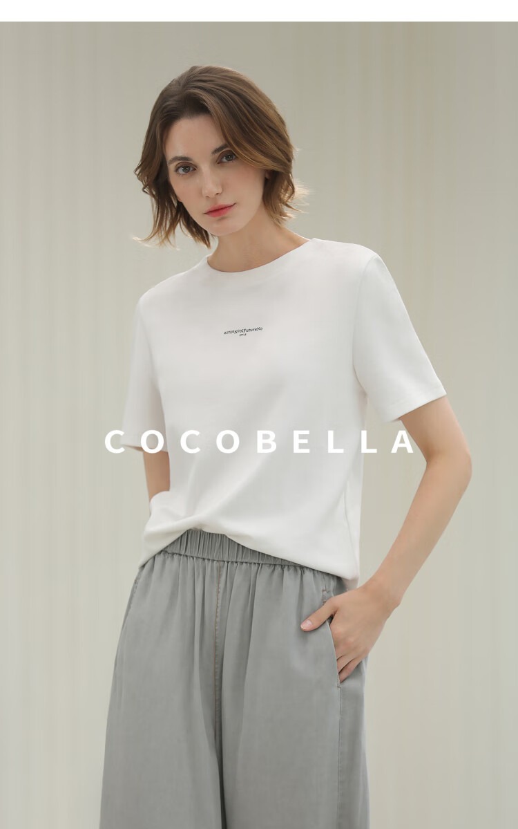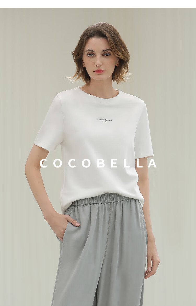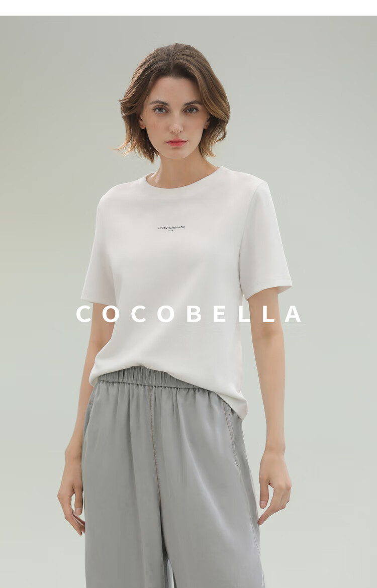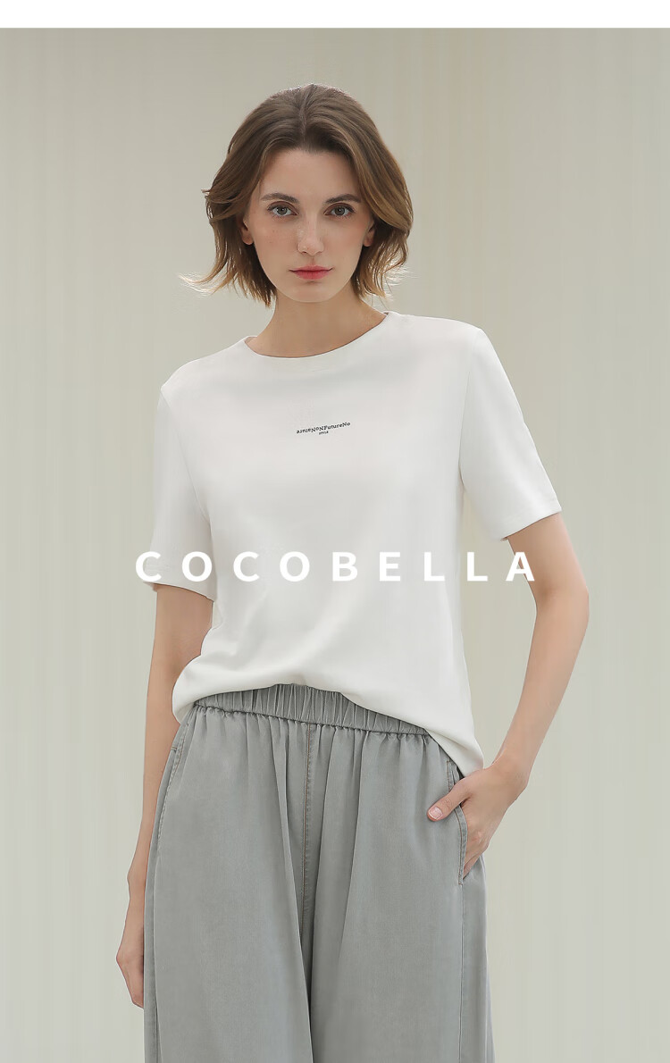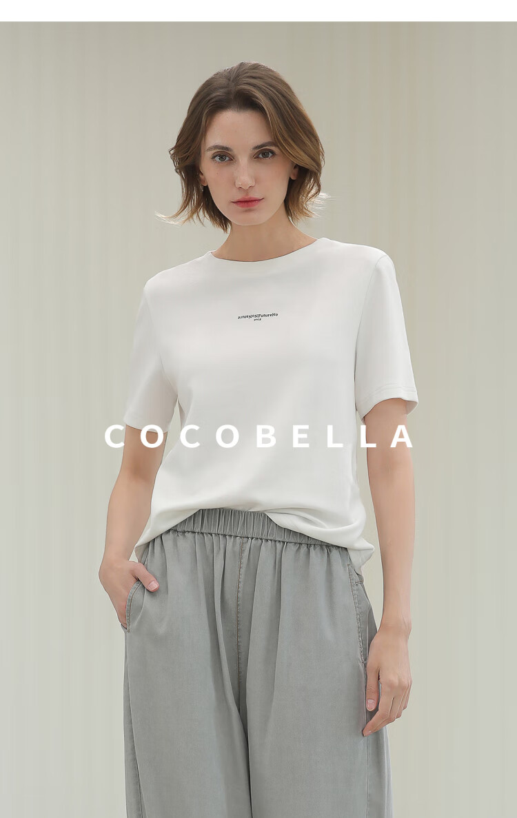 COCOBELLA简约字母印花短袖T恤女气质休闲舒适圆领半袖TS640