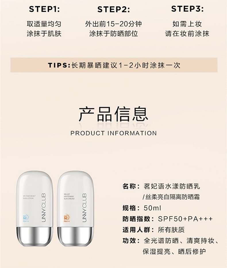 UNNY 悠宜 茗妃水润漾防晒50ML 韩国