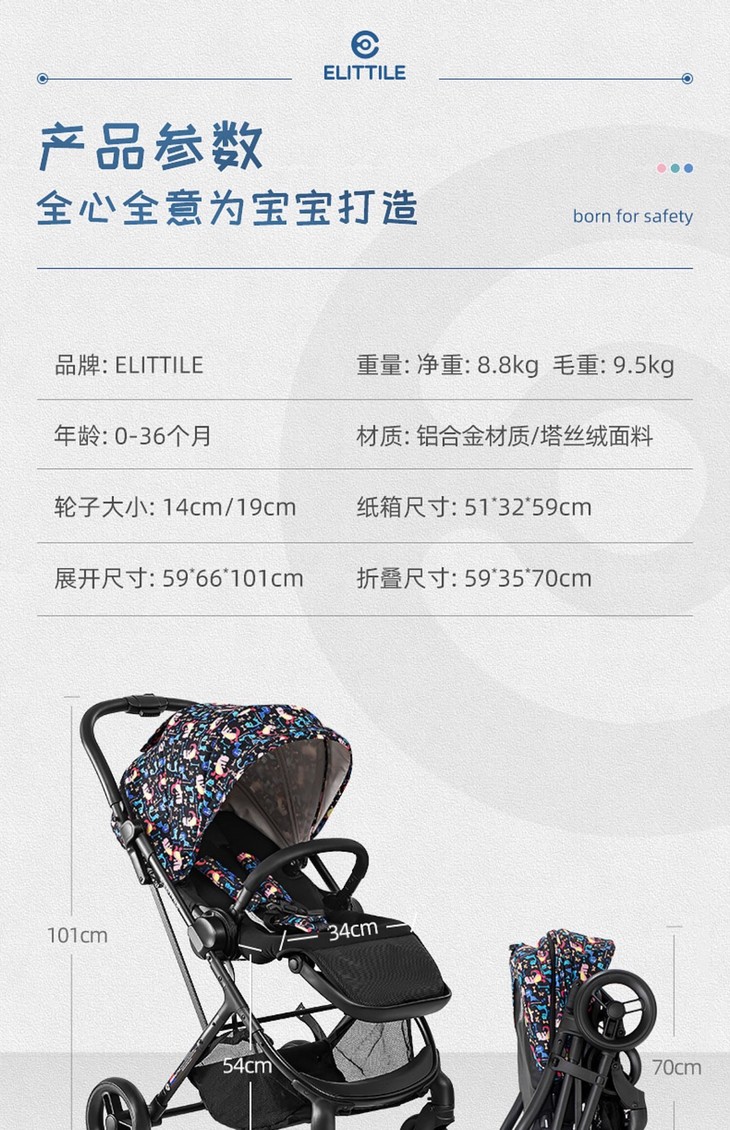 逸乐途elittle dream5代 婴儿折叠双向推车【厂家直发】(下单前请确认,不支持无理由退换)