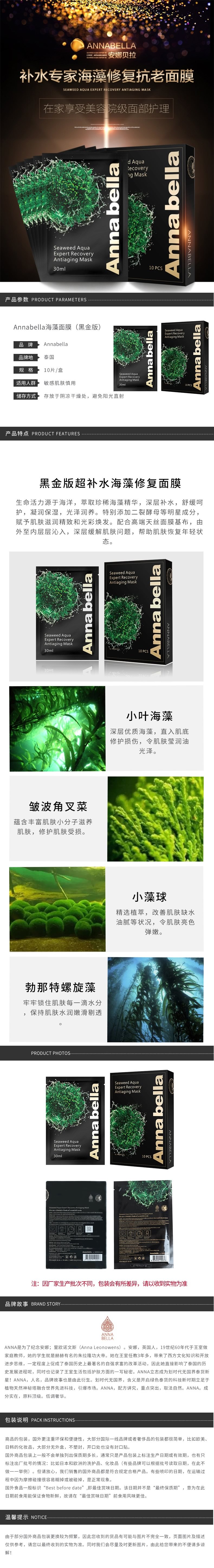 ANNABELLA 安娜贝拉 黑金版海藻面膜 10片 泰国