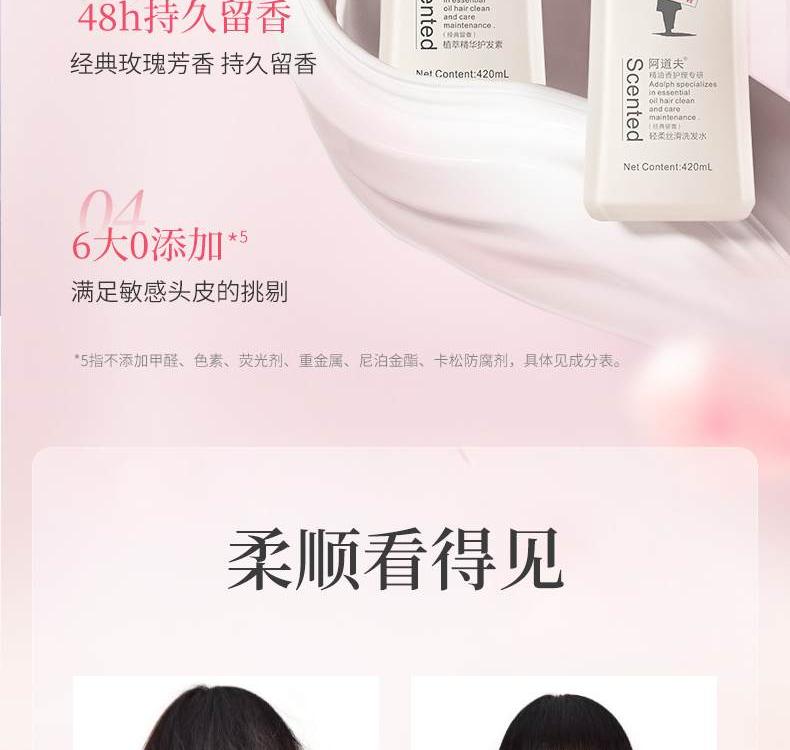 【自营】阿道夫精油香护理专研洗发水(轻柔丝滑)420ml