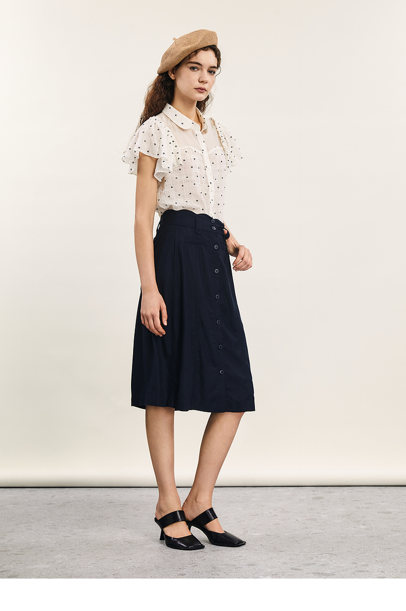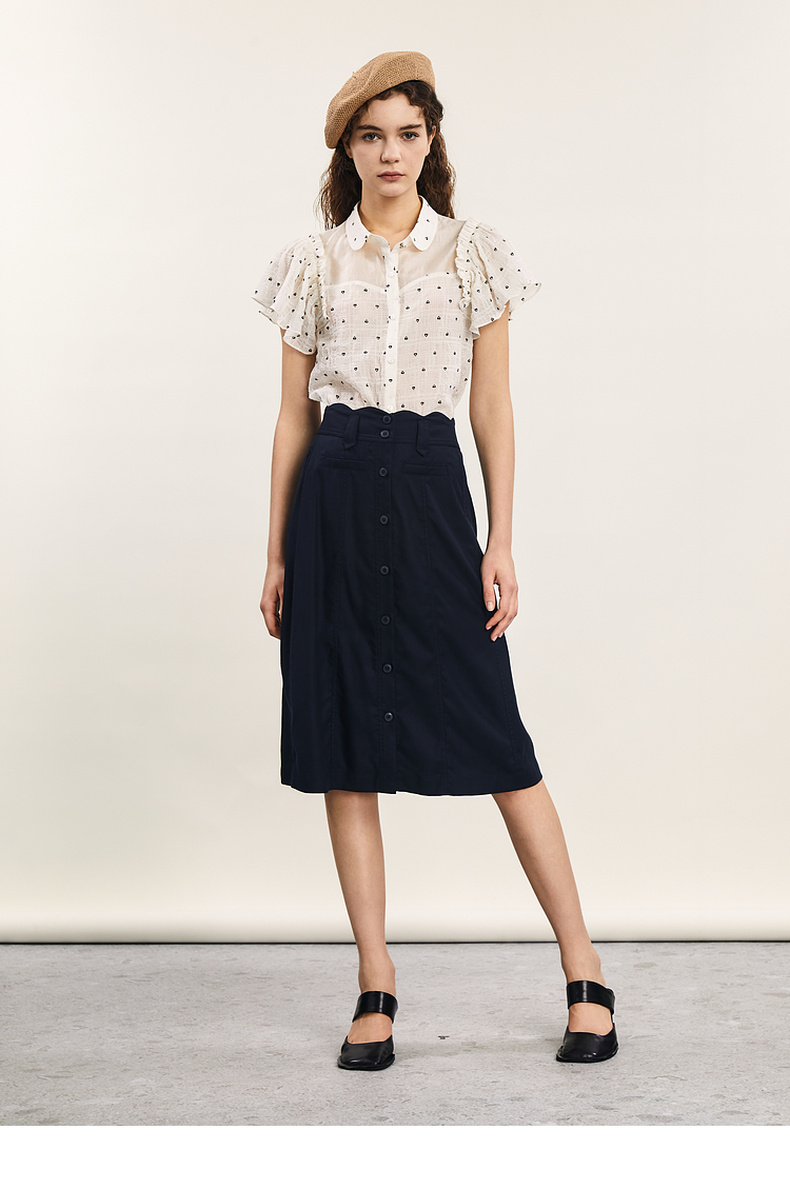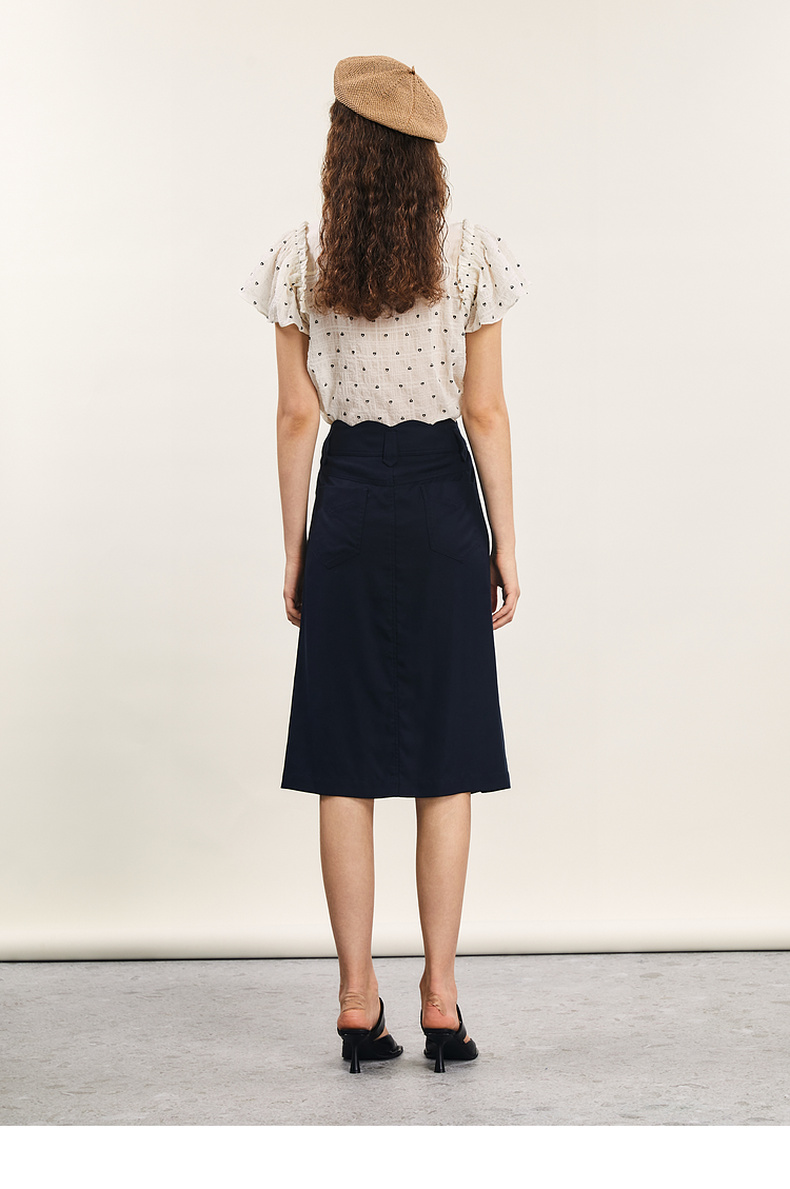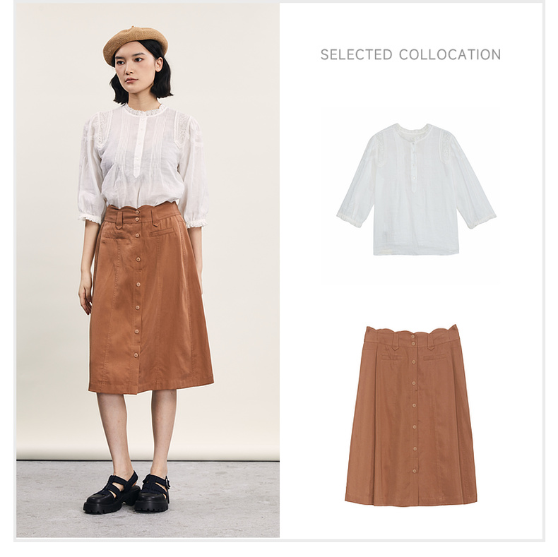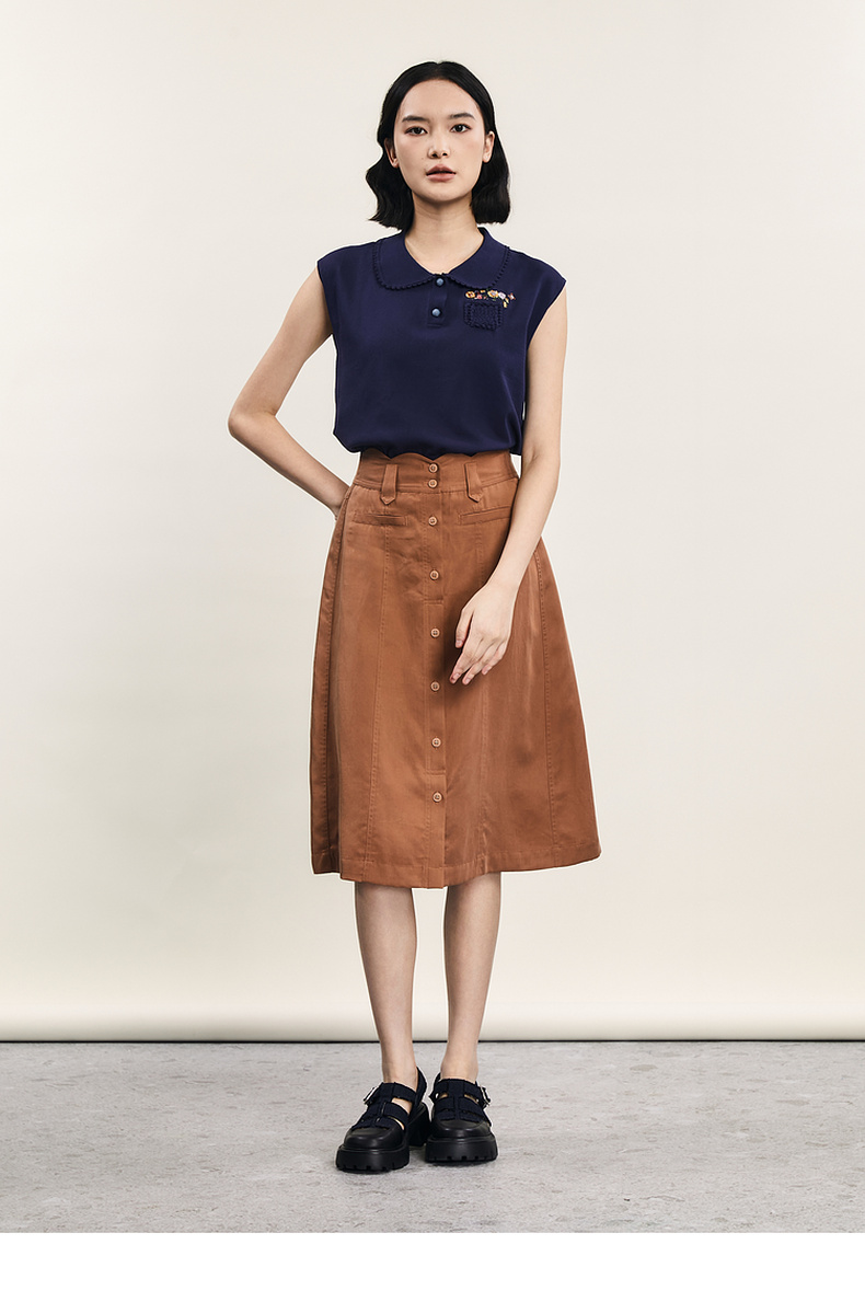 谜底A字型半身裙2024年夏季新品通勤风高腰百搭中长半裙242MB0662