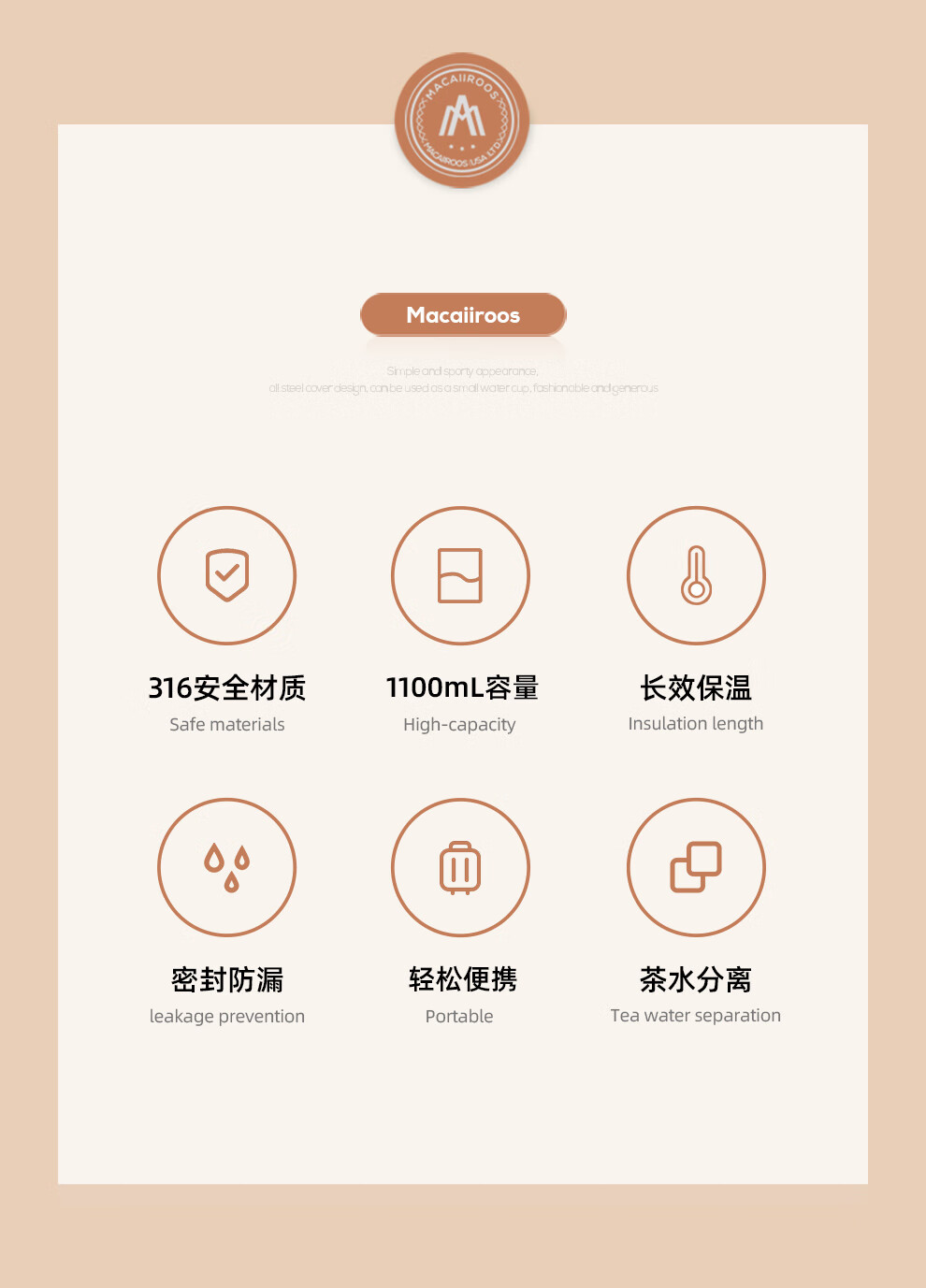 【小家电】迈卡罗MC-6110HW保温杯 316不锈钢保温水杯 茶水分离高档商务保温杯HF