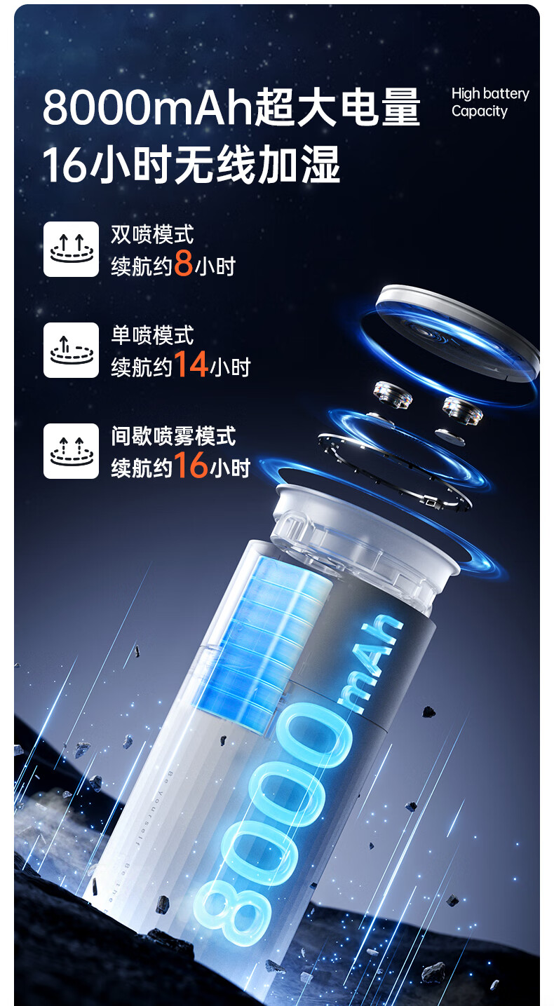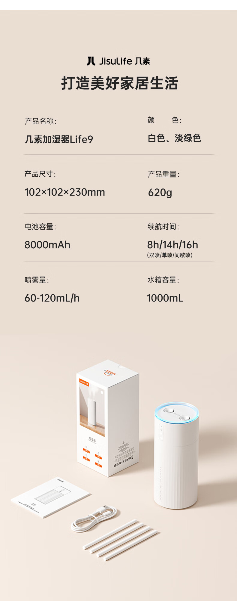 【小家电】几素桌面加湿器蓄电款I大雾0积水Humidifier Life9 HF