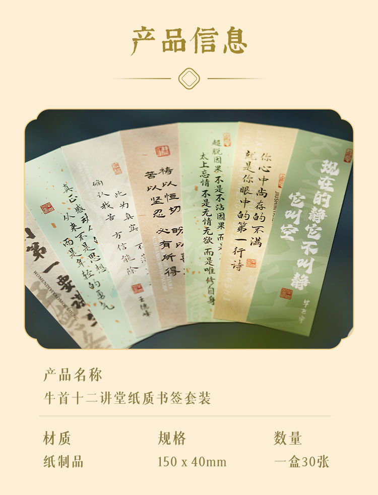 牛首山文创牛首十二讲堂纸质书签套装学生教师节礼物南京纪念品