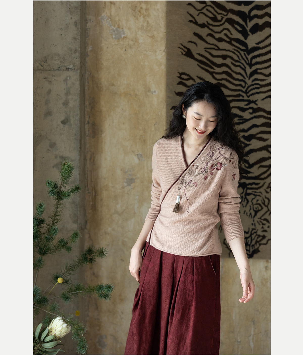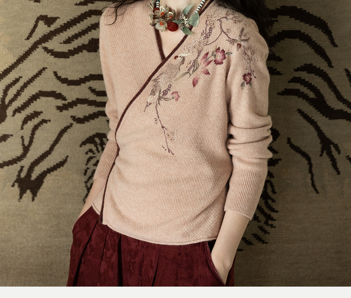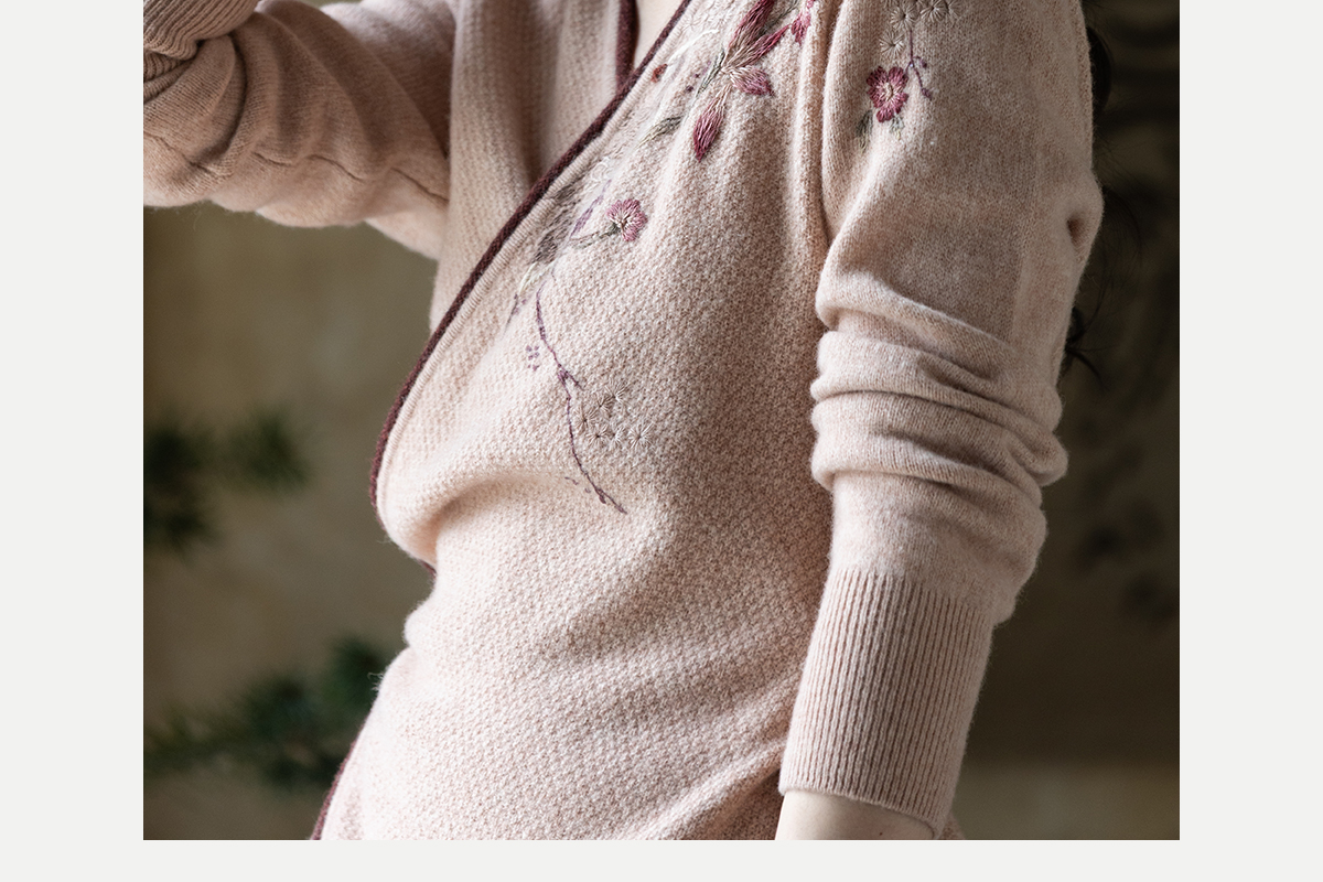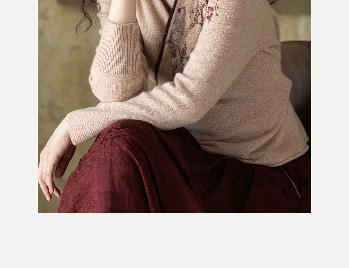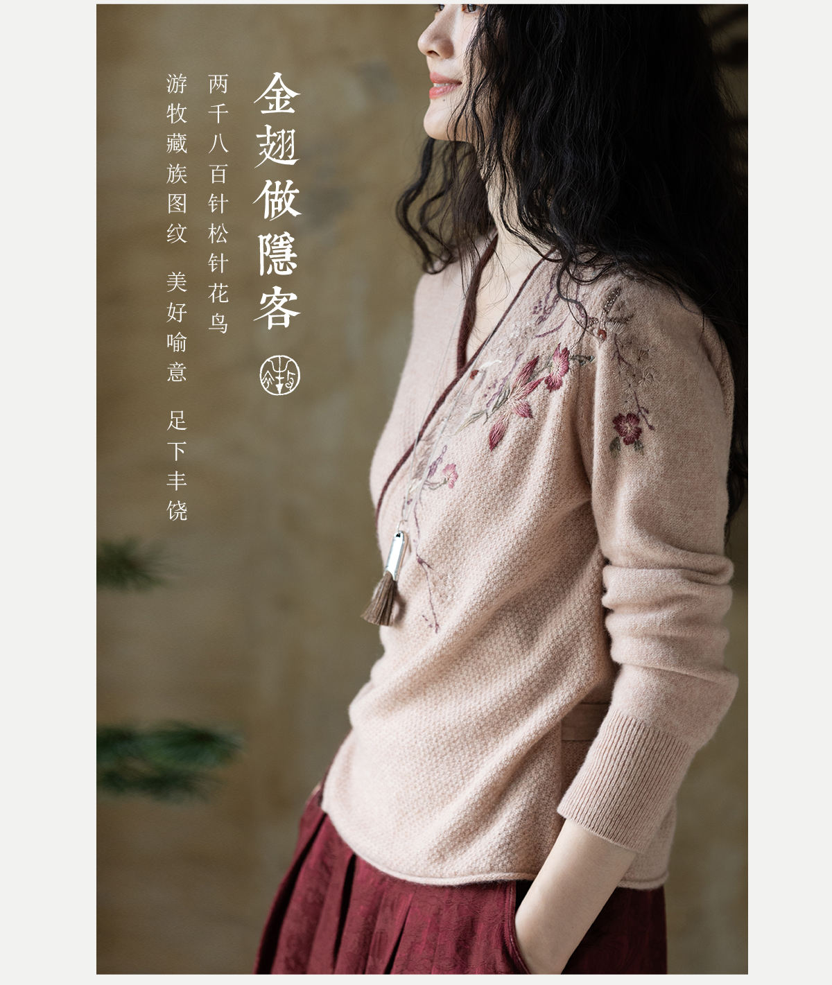 牧衣游原创 进口牦牛绒毛织混纺毛织外套手绣柔软文艺开衫 檀兮