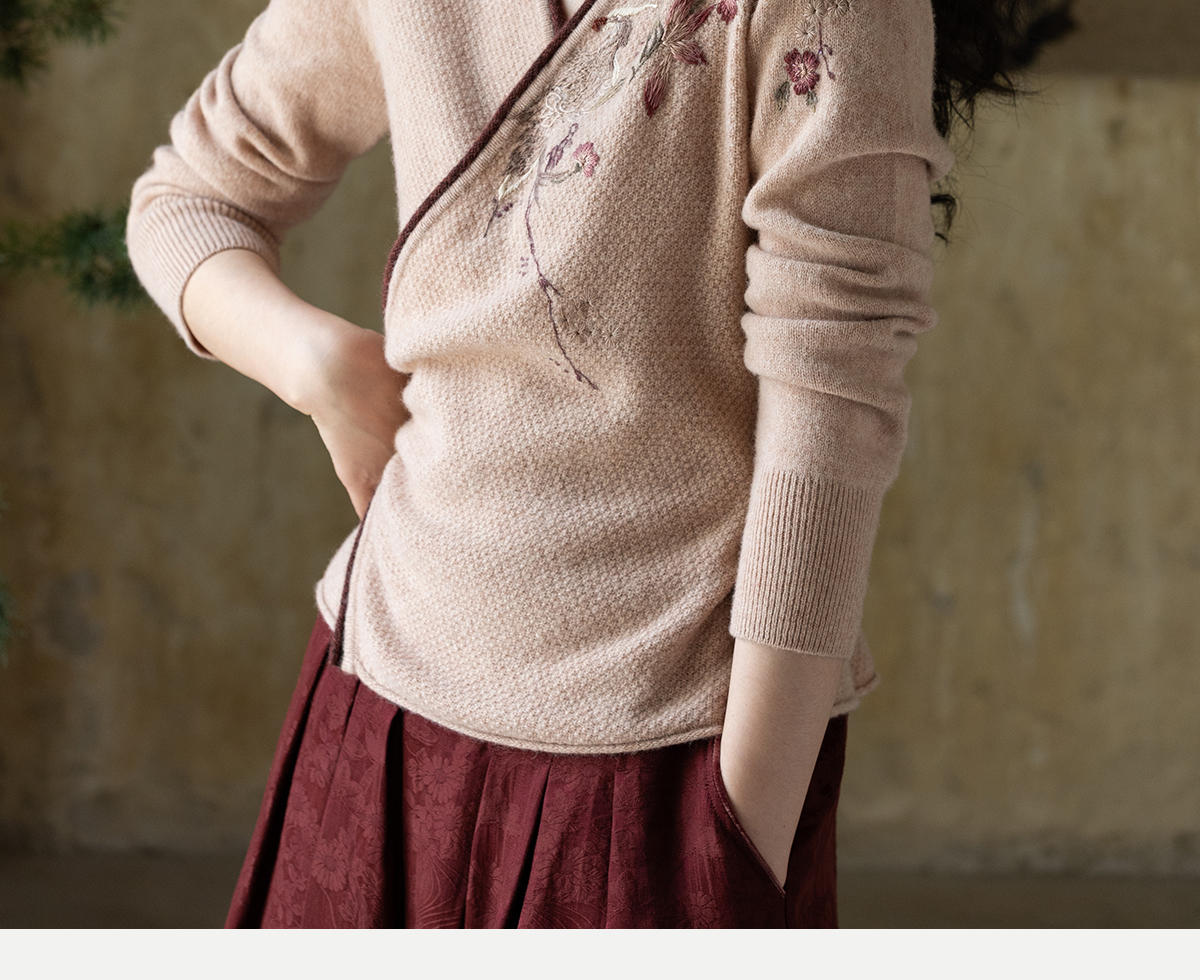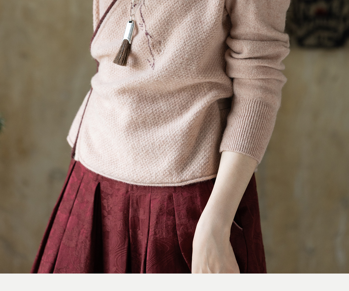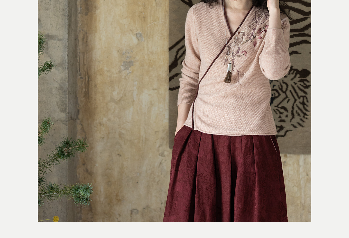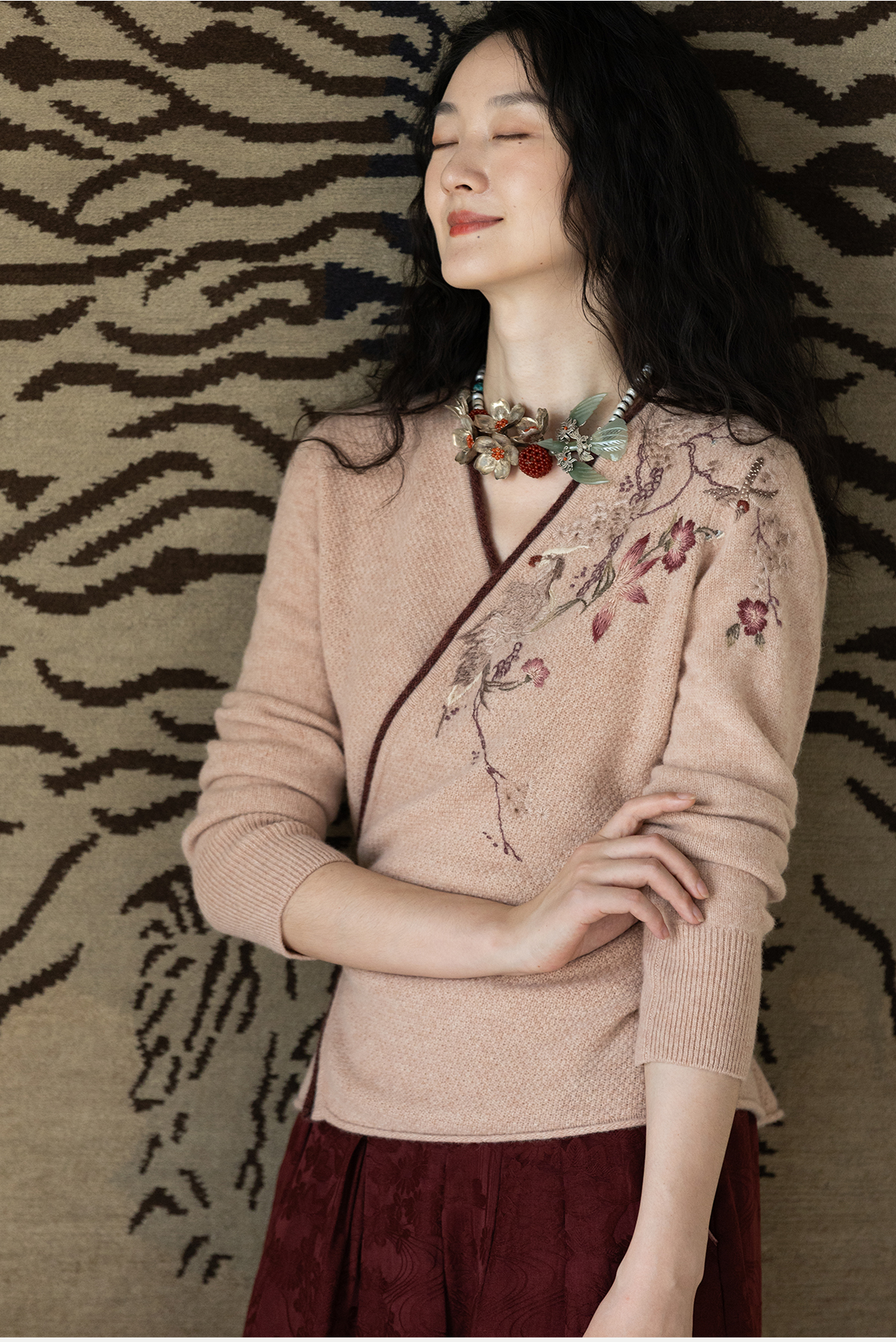 牧衣游原创 进口牦牛绒毛织混纺毛织外套手绣柔软文艺开衫 檀兮