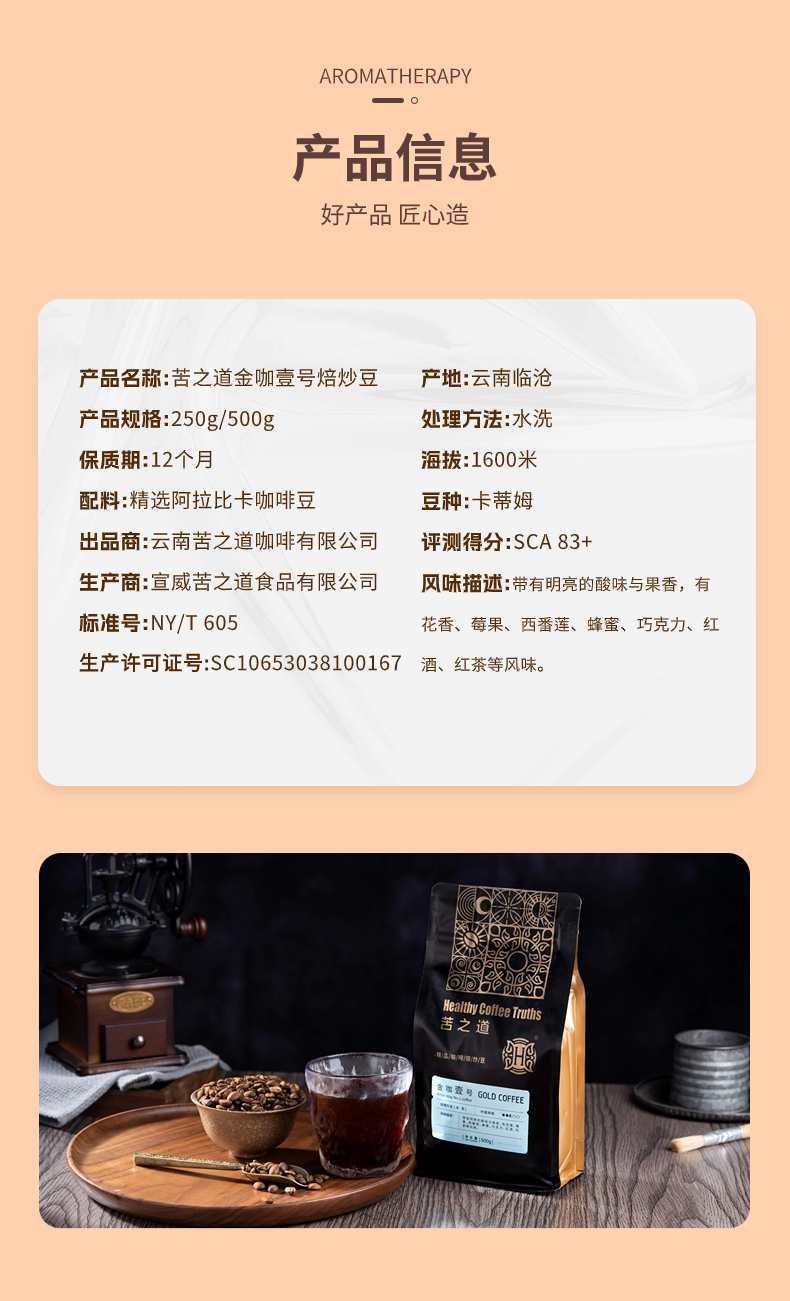 苦之道 金咖壹号 云南精品咖啡焙炒豆 水洗中烘咖啡豆