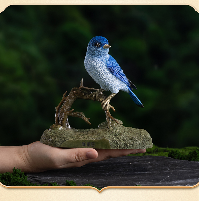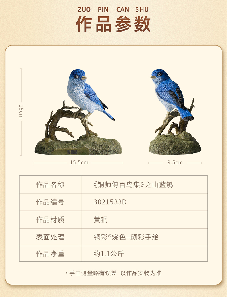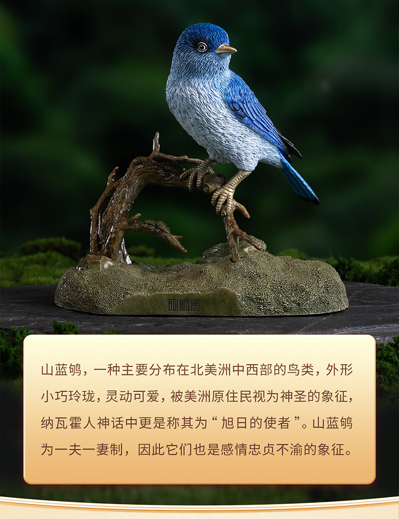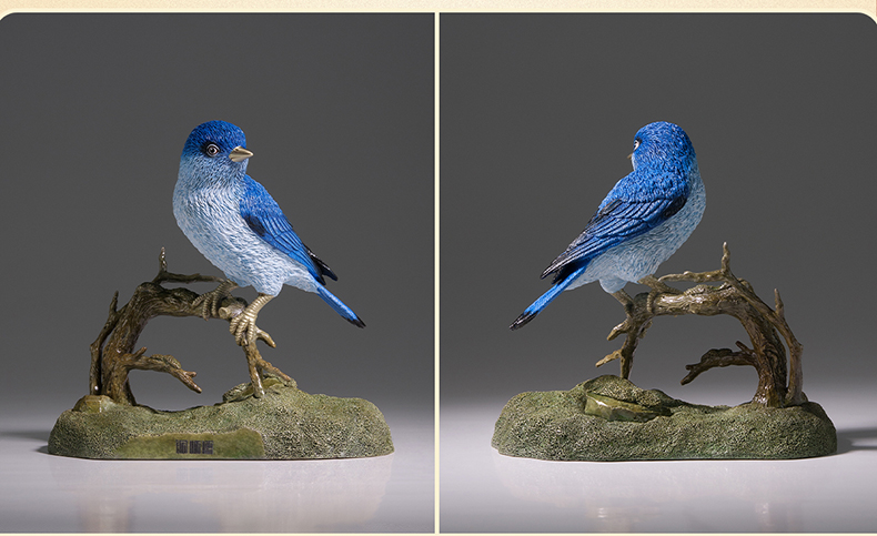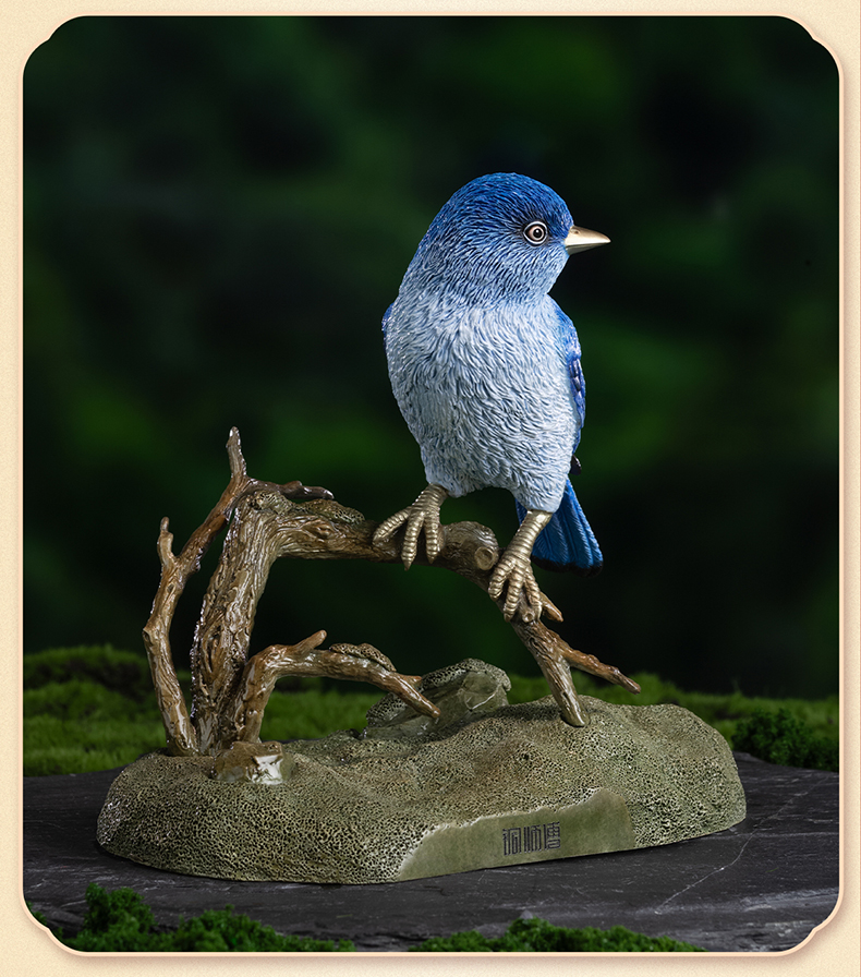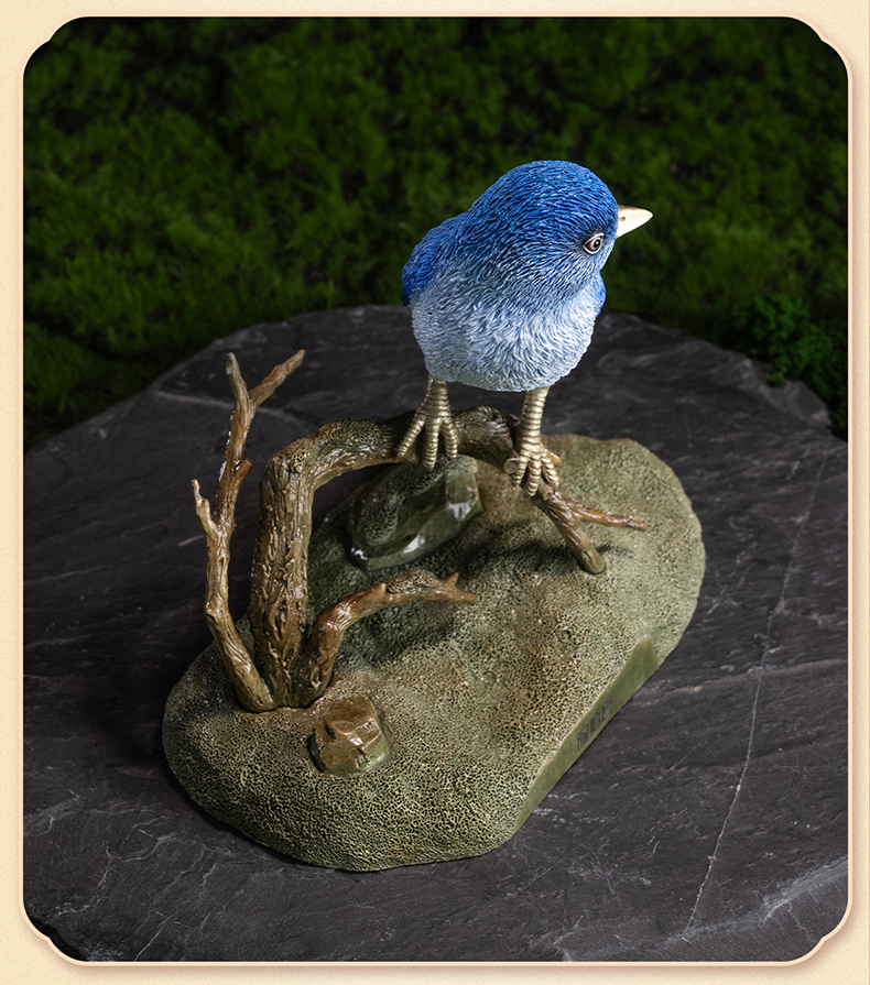 《铜师傅百鸟集》之山蓝鸲 客厅桌面铜鸟摆件 家居装饰工艺品