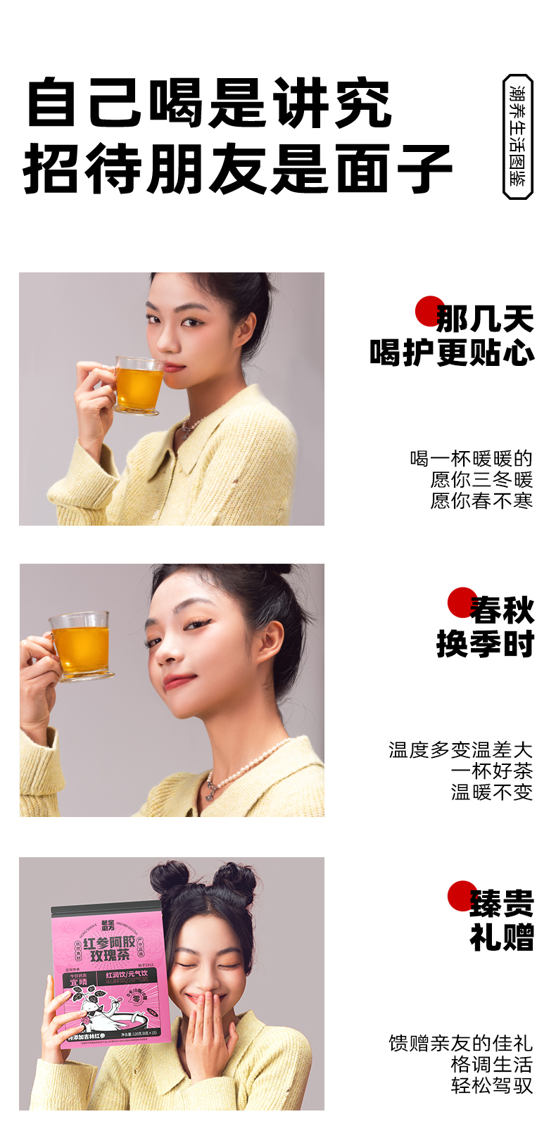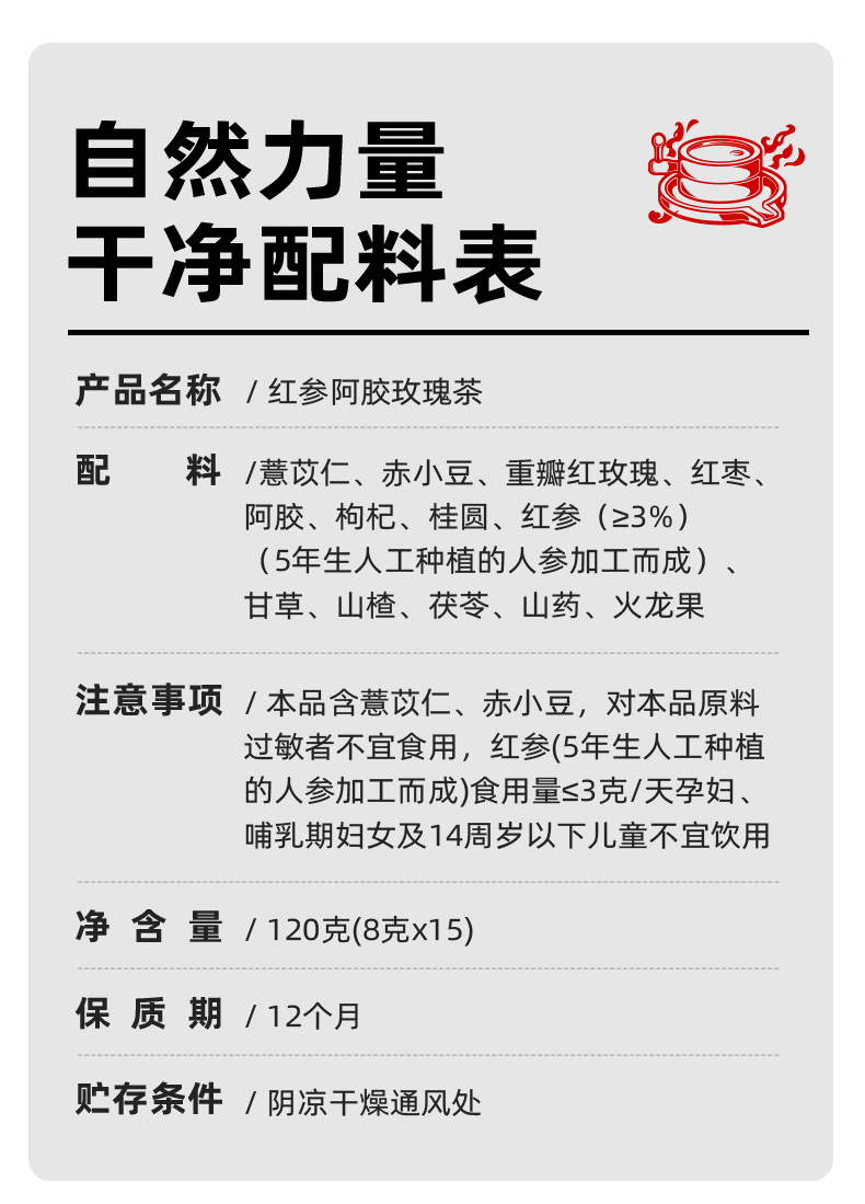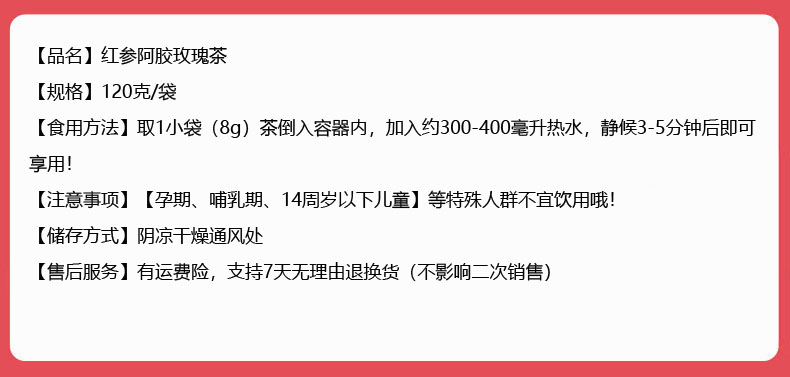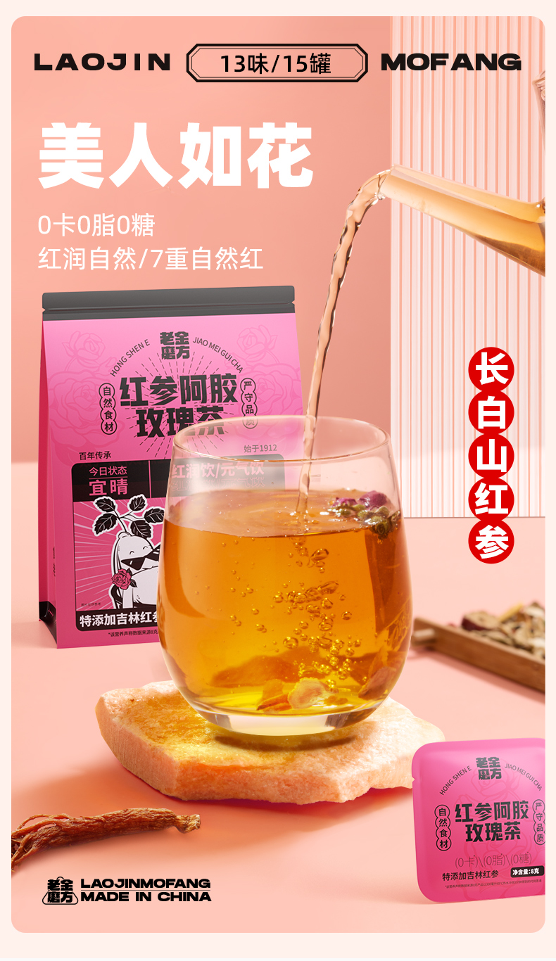 老金磨方红参阿胶玫瑰茶红润饮女性花茶养生茶元气饮袋泡茶 多规格