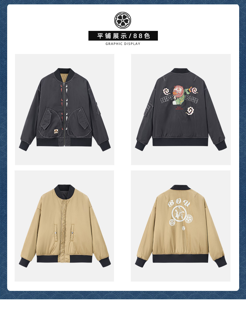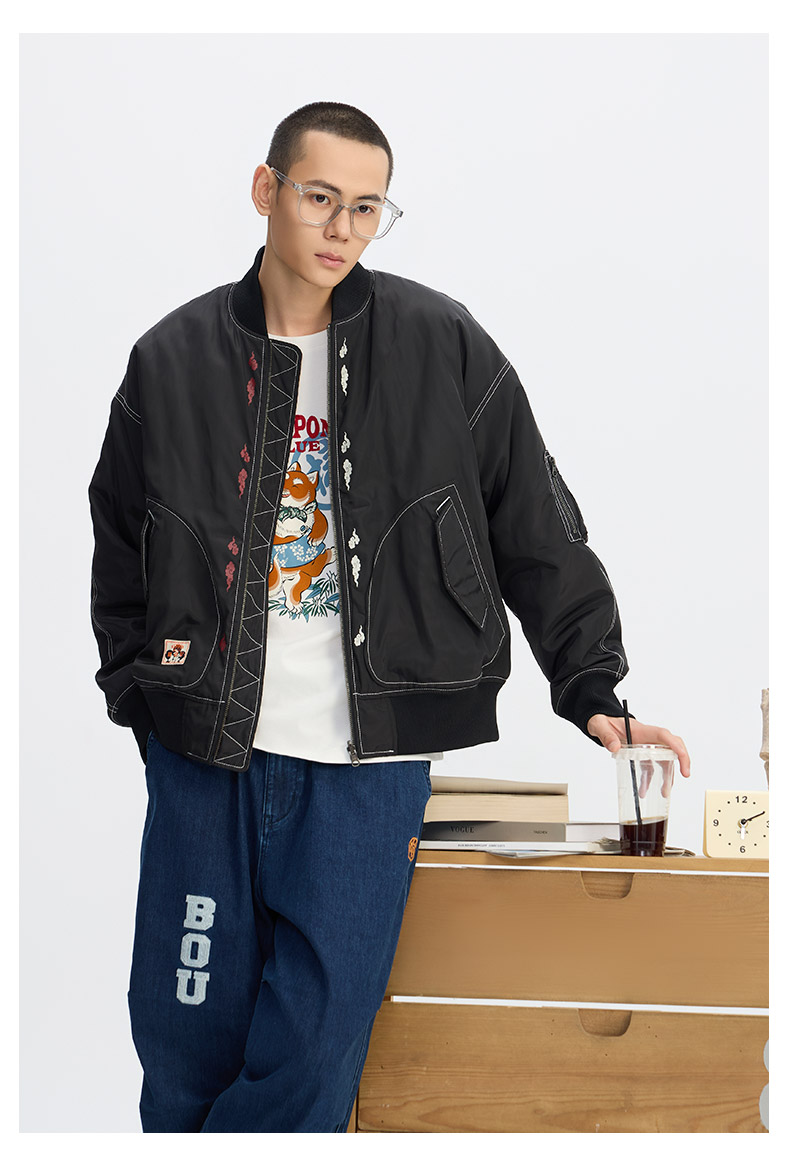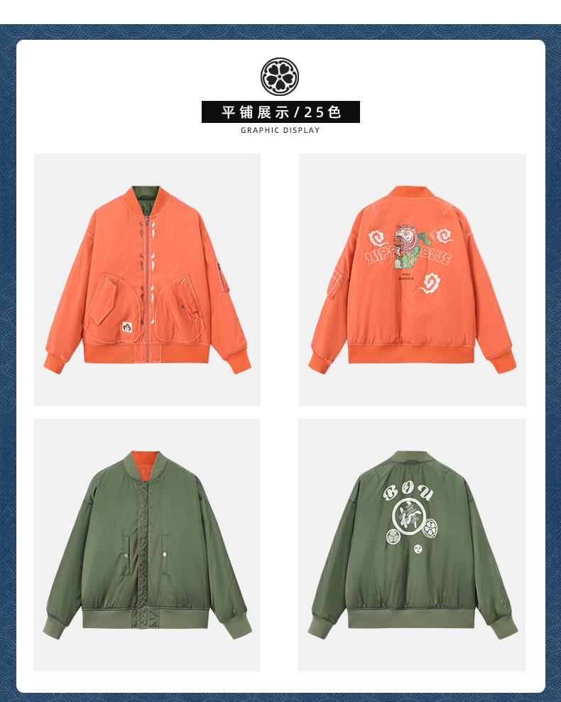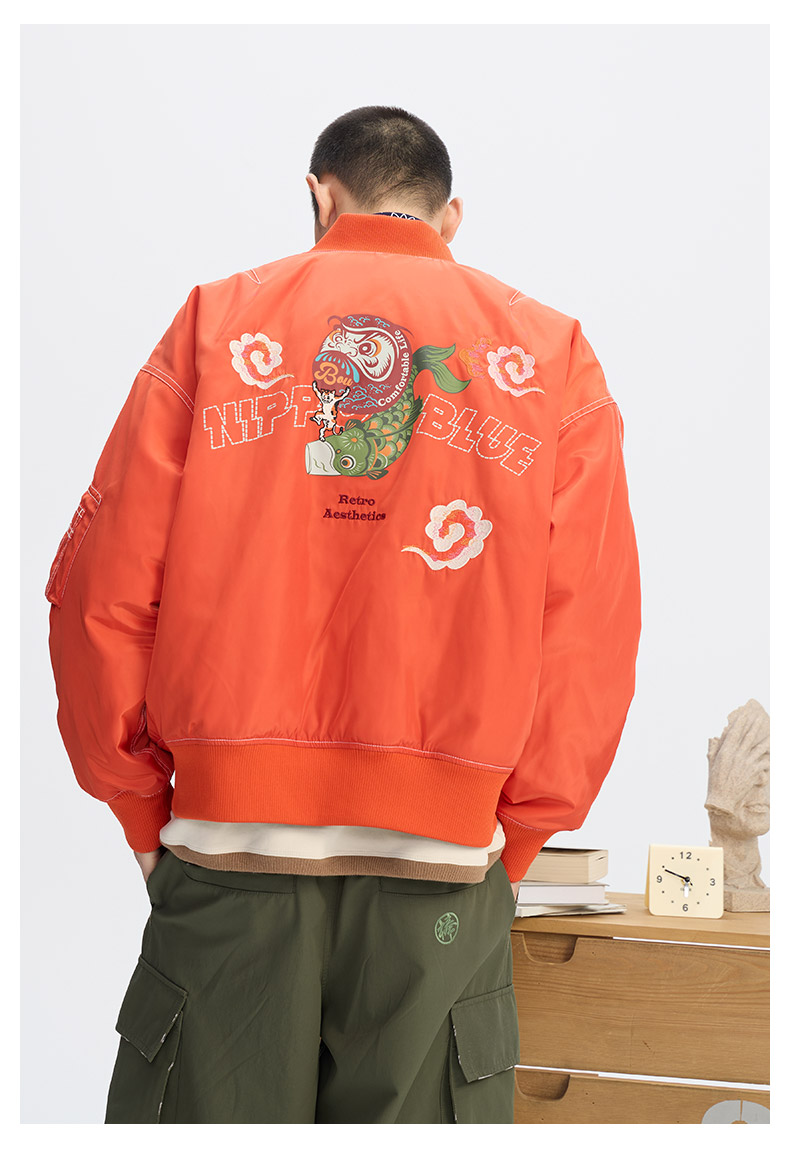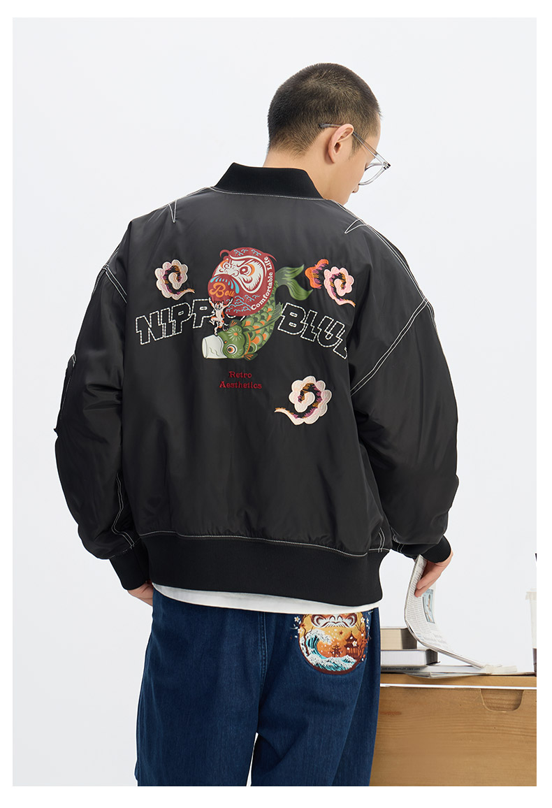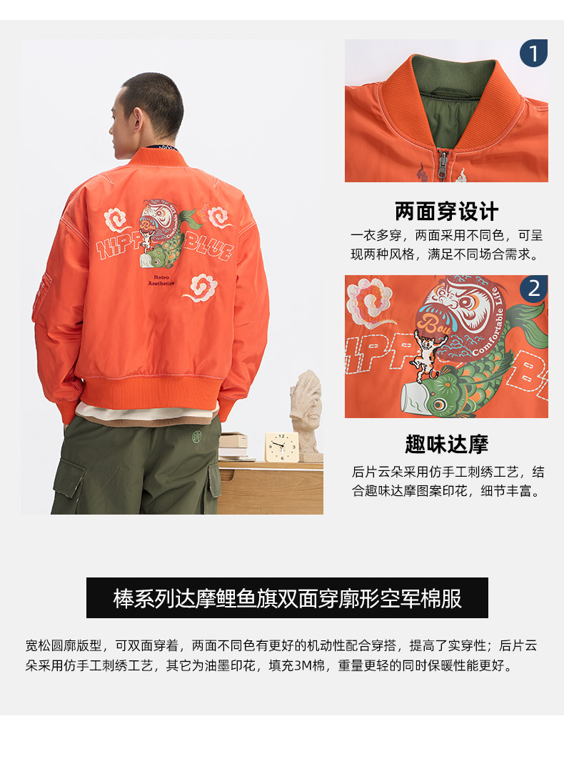 ONIARAI/鬼洗25秋冬棒达摩鲤鱼旗双面穿廓形空军棉服男式 N340226