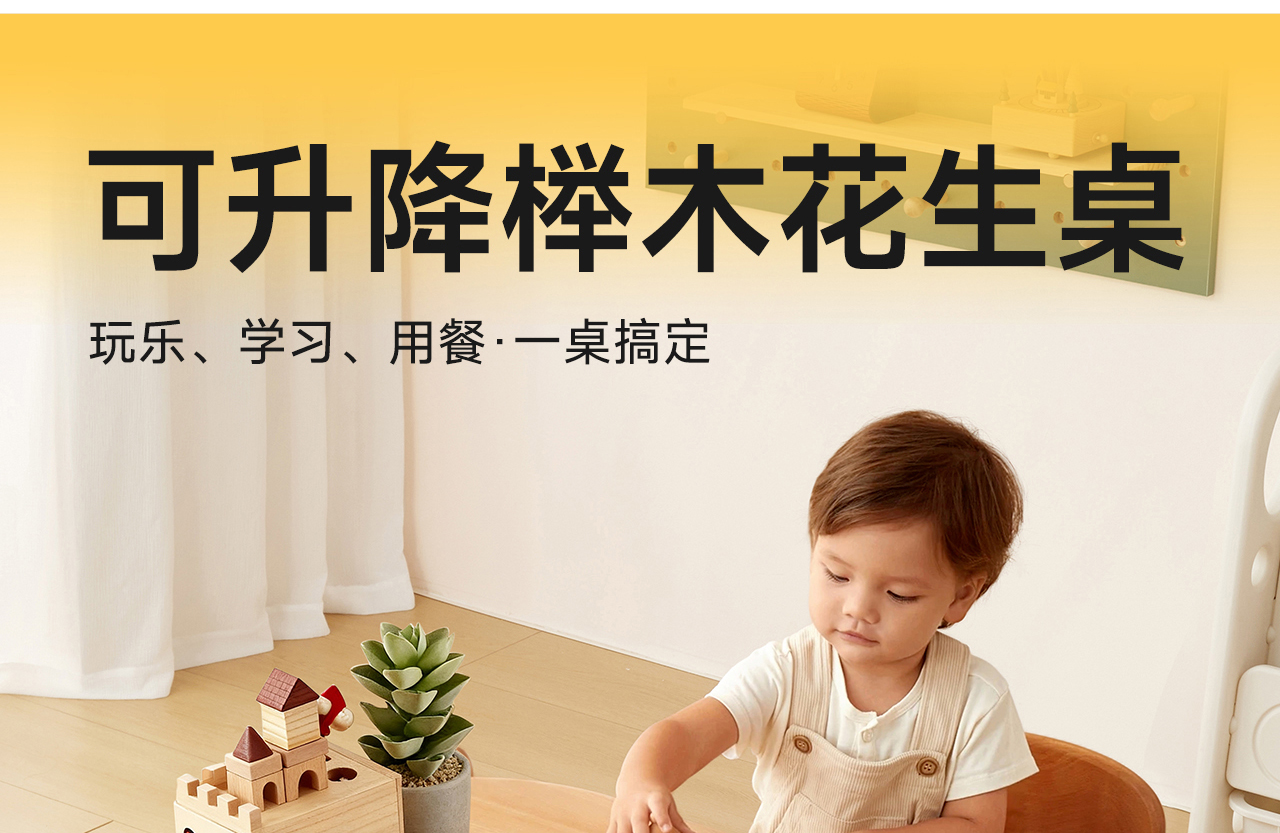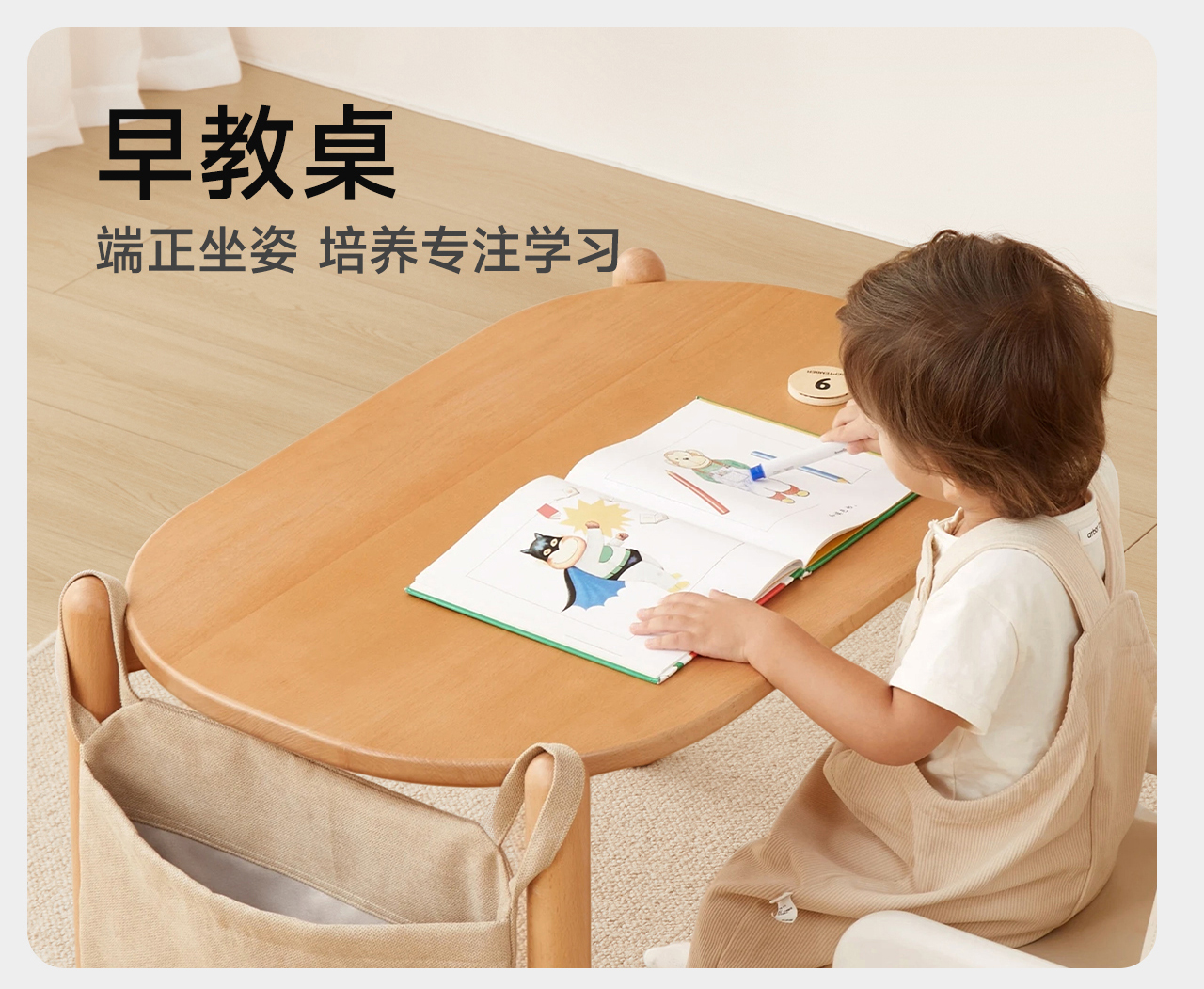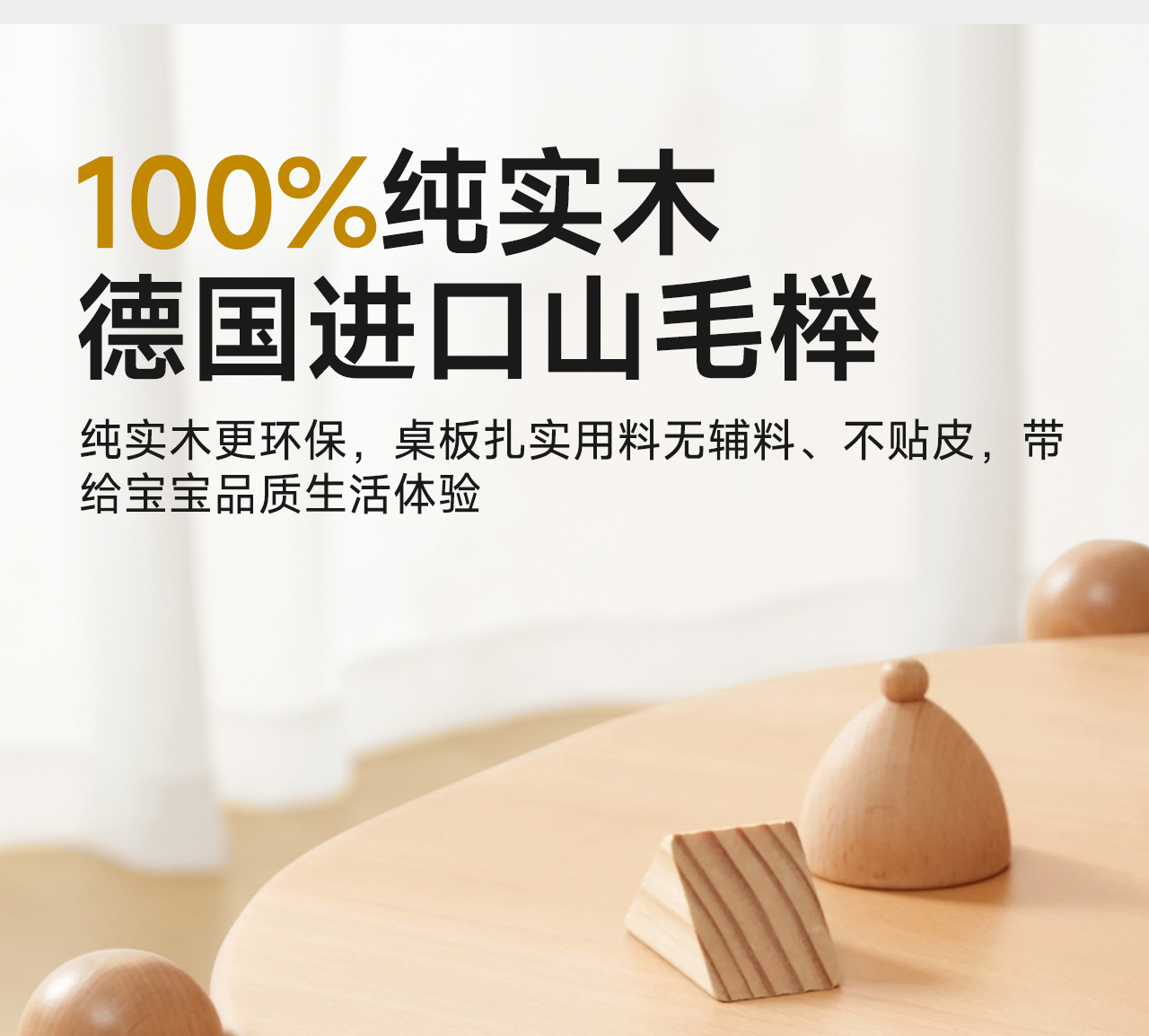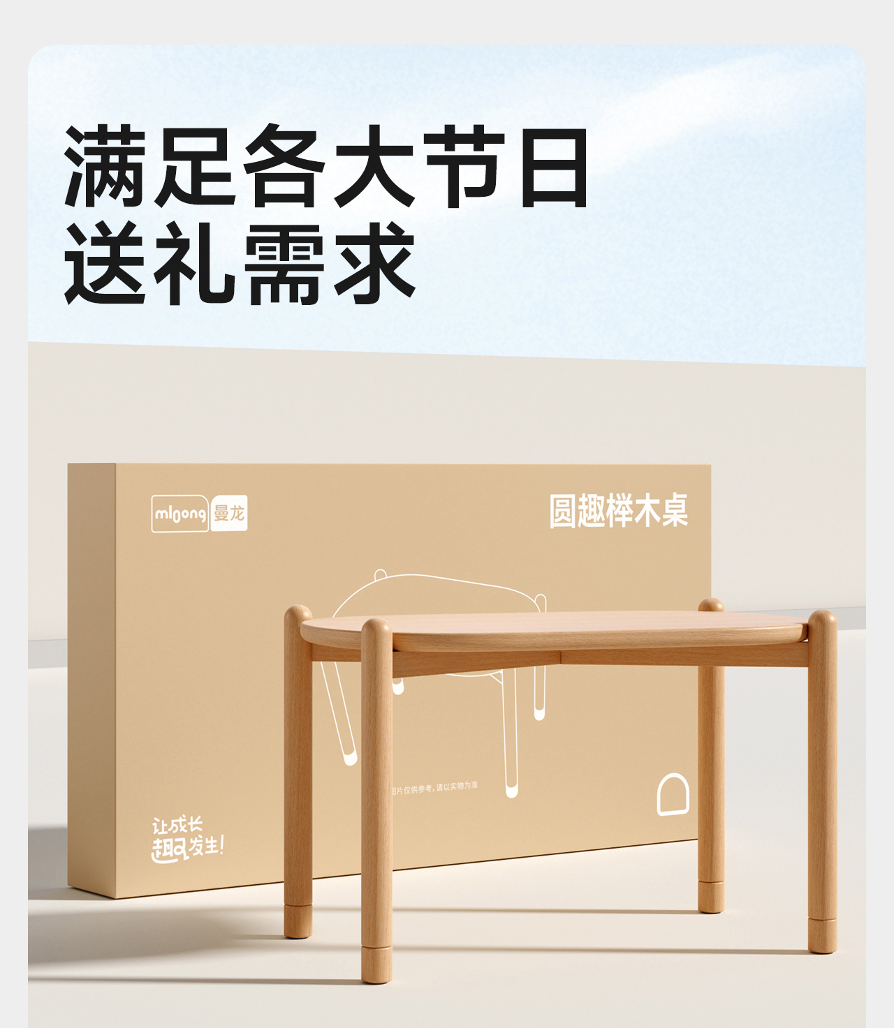【冬日暖拥】曼龙mloong ENF实木圆趣榉木桌花生桌手工桌学习桌书桌可升降调节游戏玩具学习桌椅套装