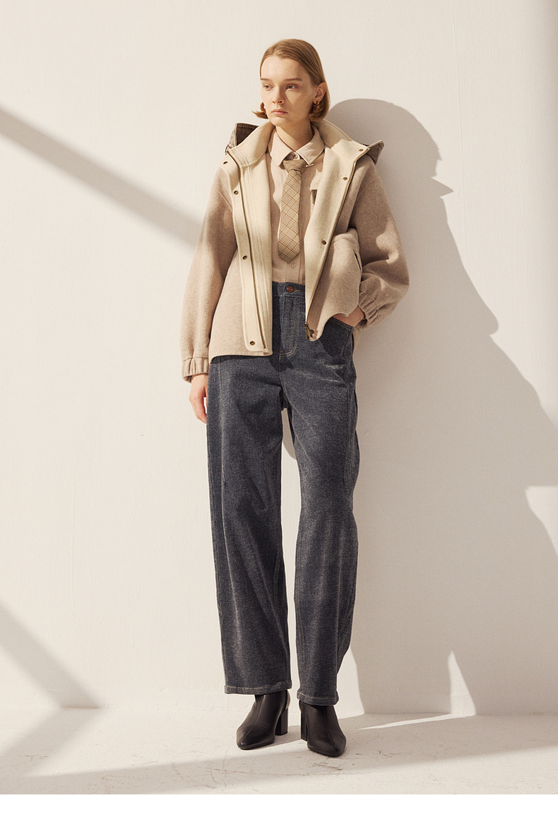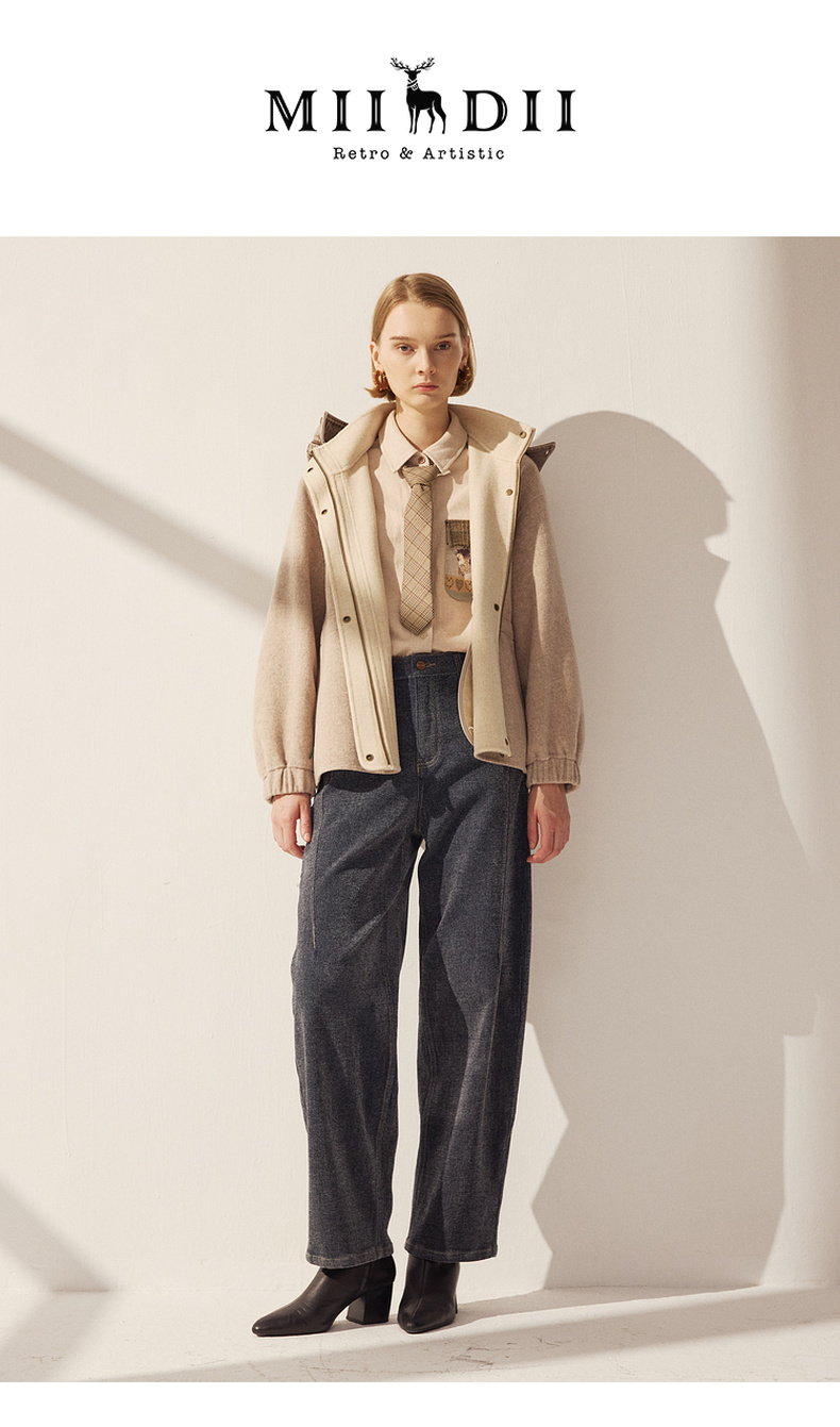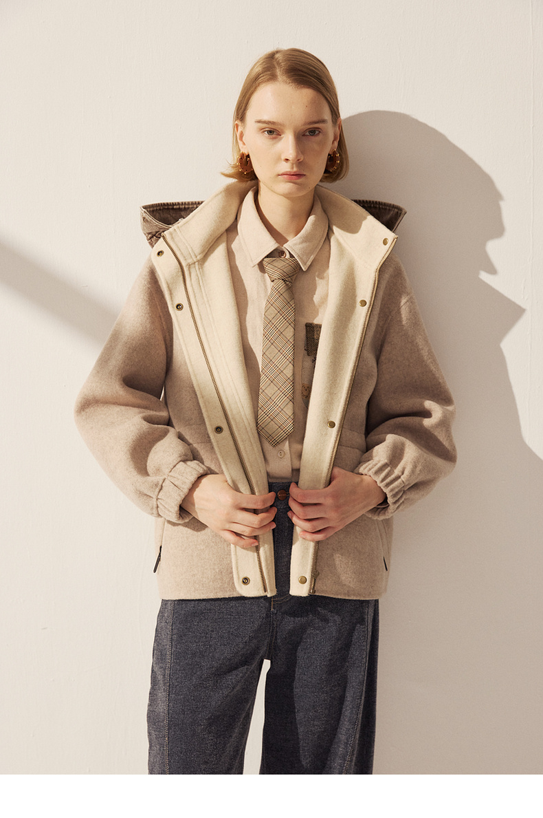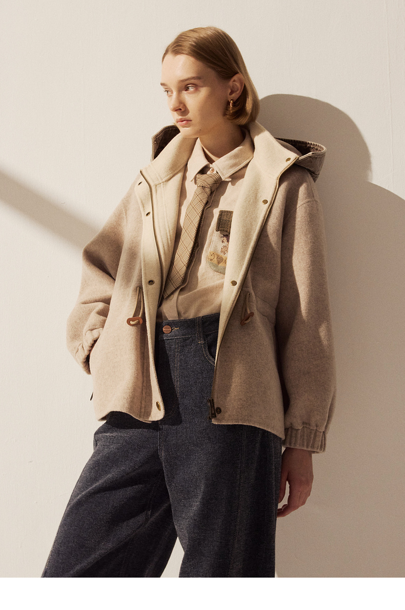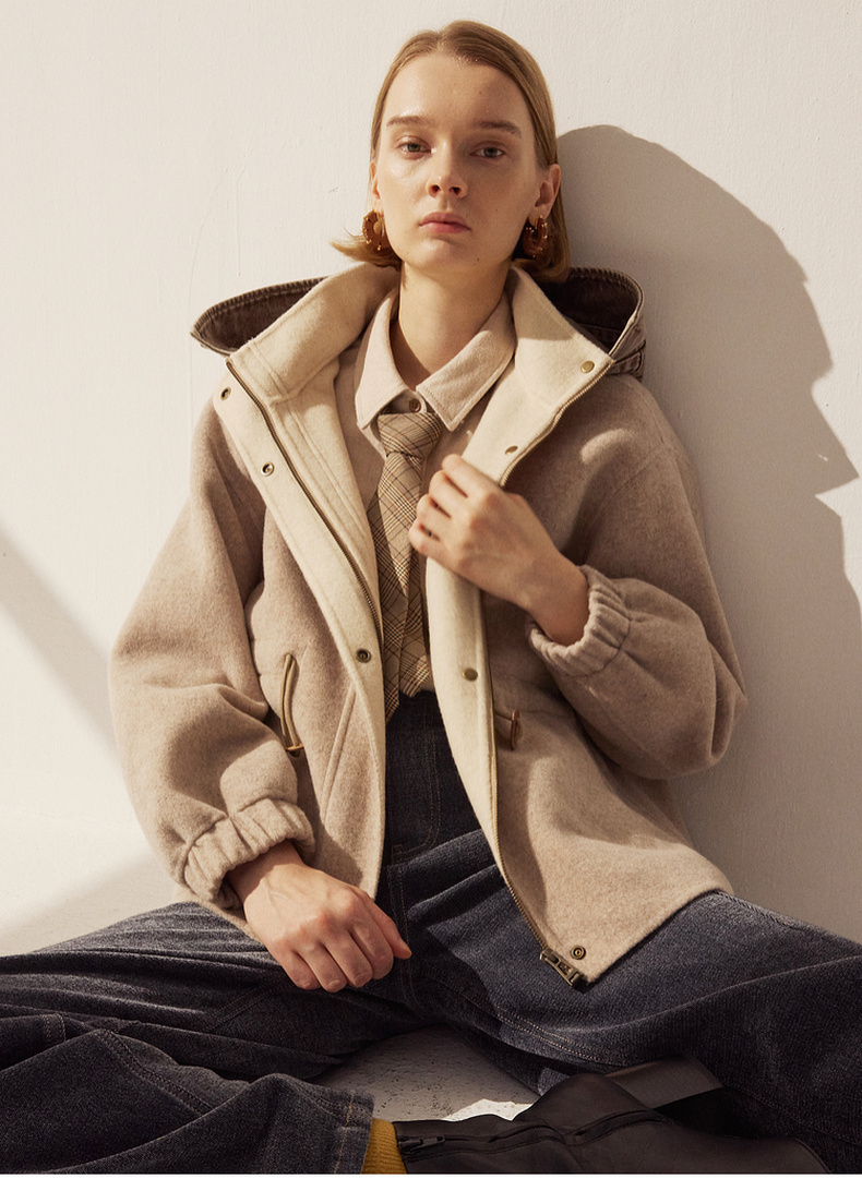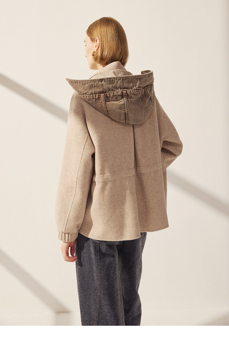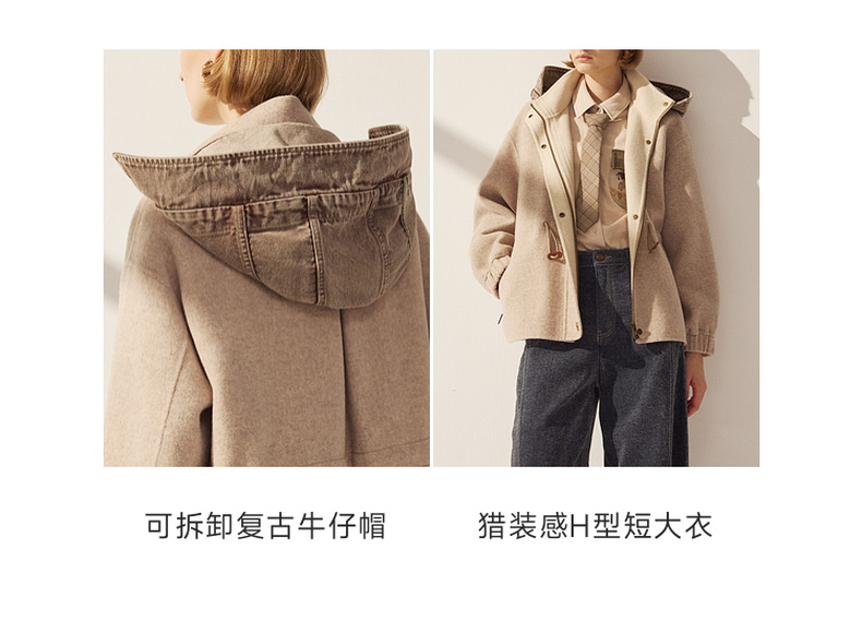 谜底羊毛双面呢大衣长袖2025冬新品猎装廓形抽绳收腰女254MD1724