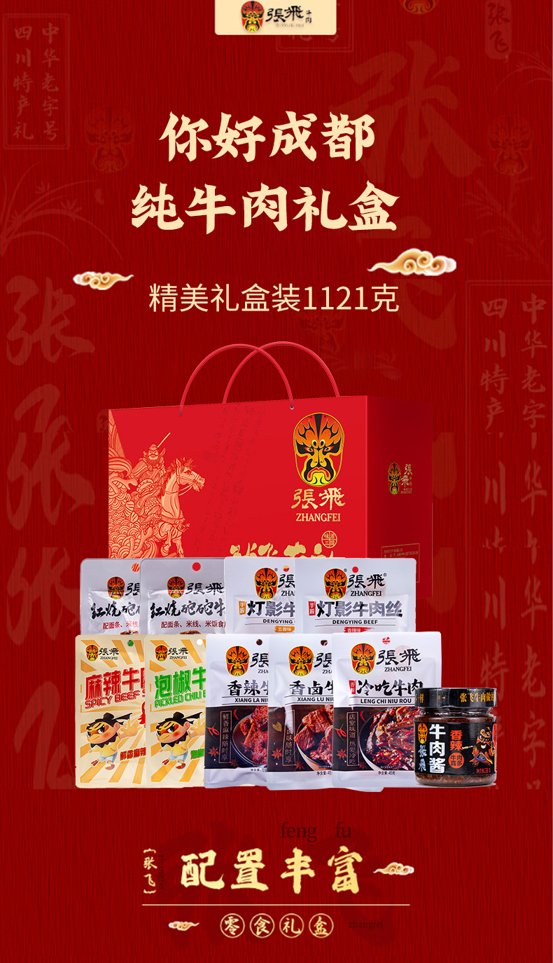 张飞 你好成都 纯牛肉礼盒-1121g【年货】JCT