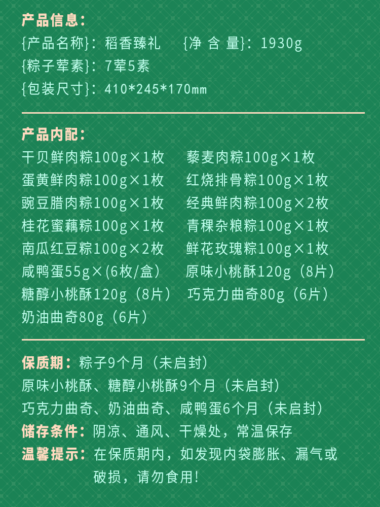 稻香村 稻香臻礼礼盒(12粽8蛋+点心)- 1930g【端午】LYX