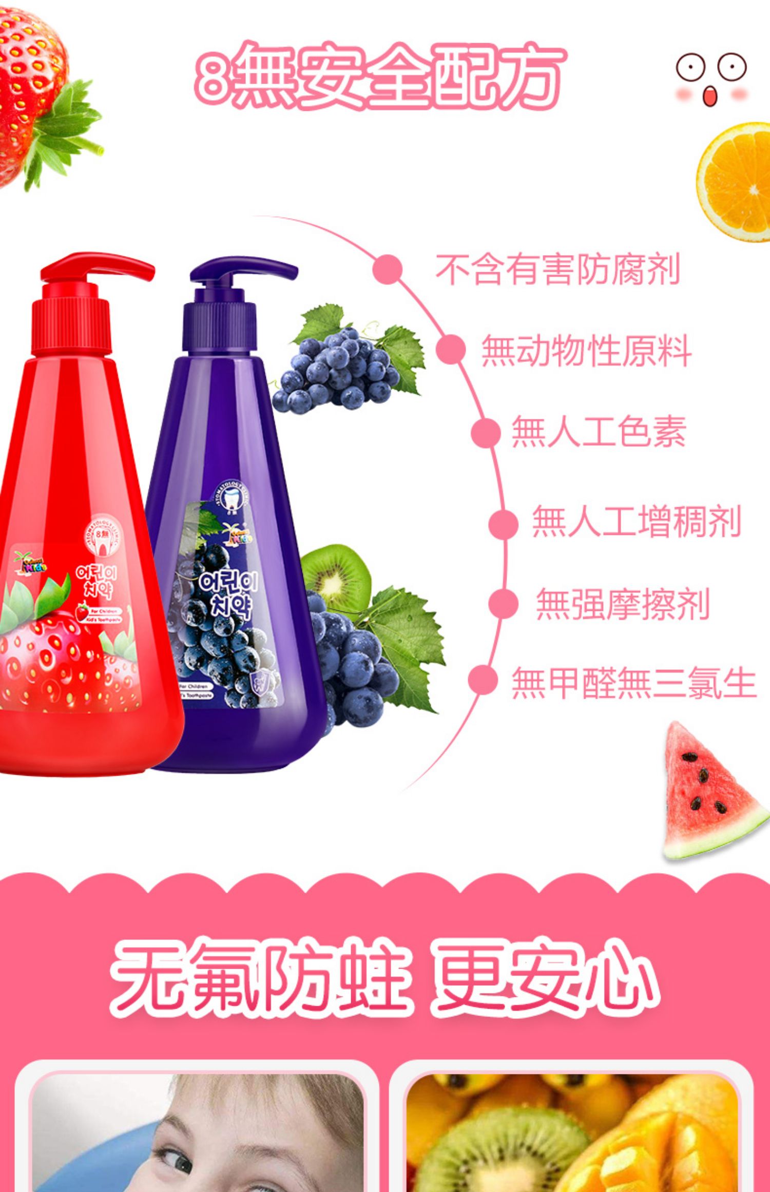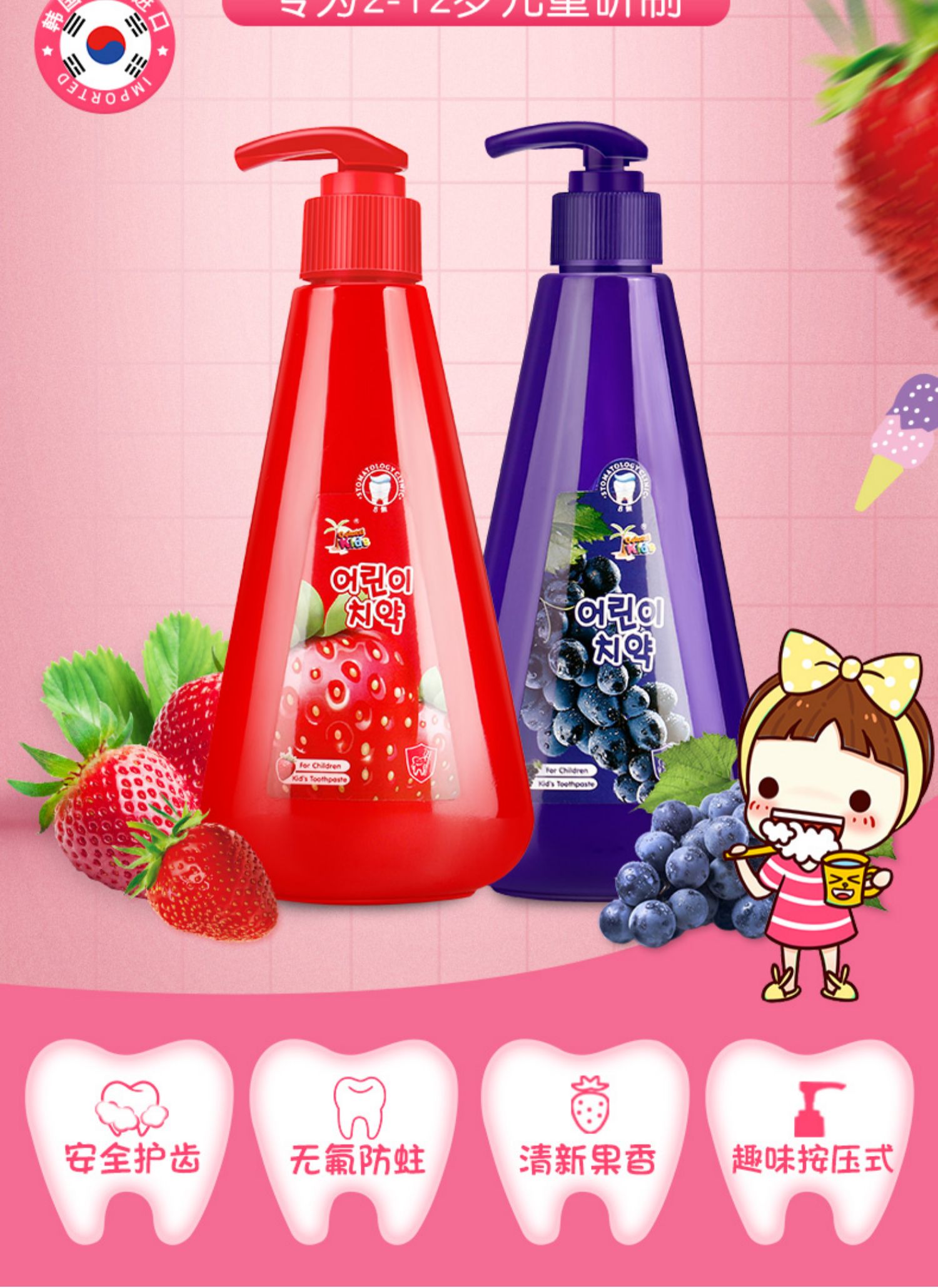 【中欧班列】韩国儿童牙膏 原装进口德露宝儿童牙膏按压式 251g/支