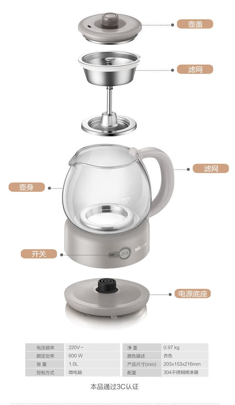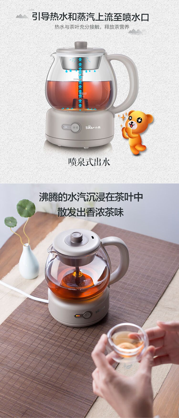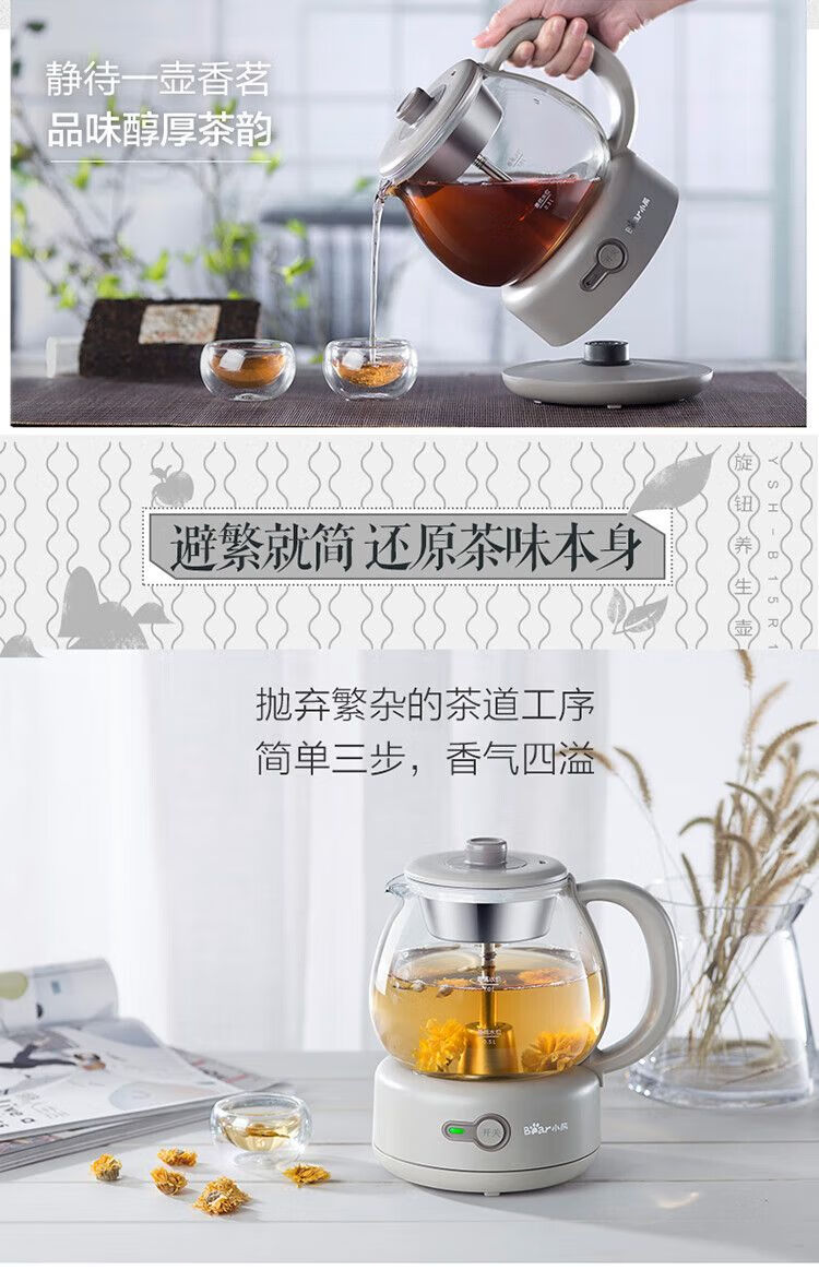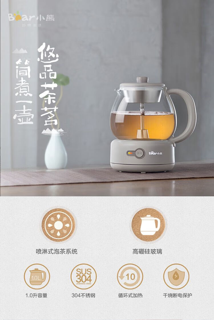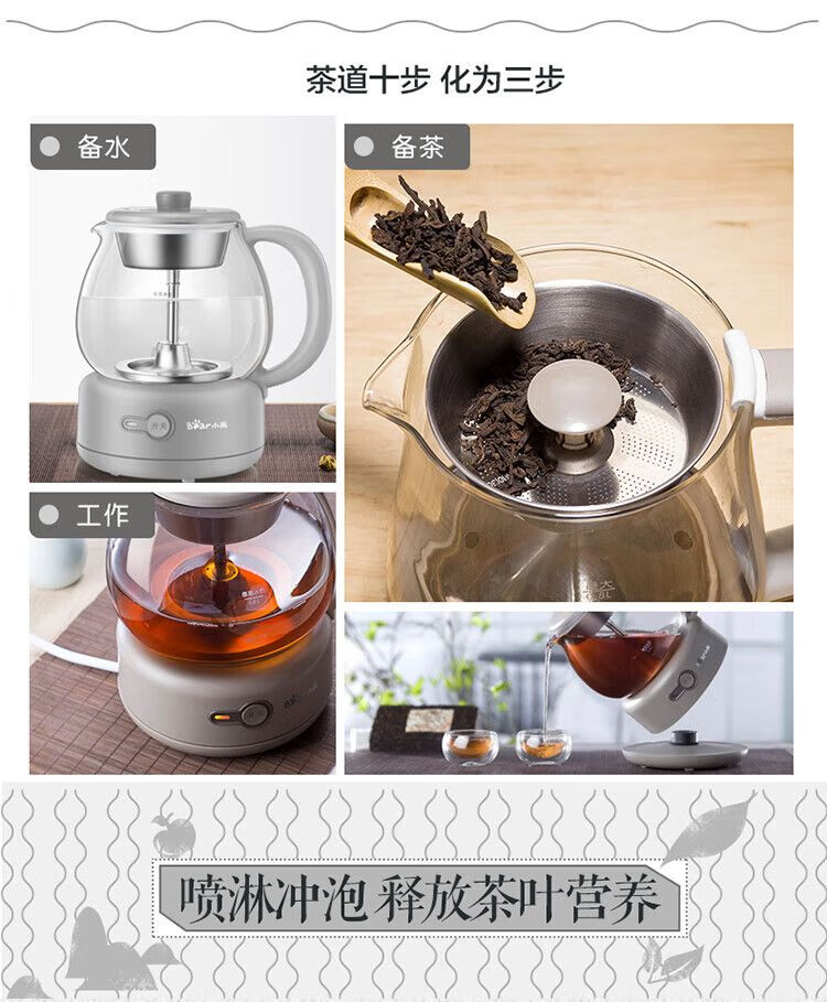 小熊(Bear)煮茶器全自动蒸汽黑茶普洱办公室保温煮茶壶迷你玻璃电热水壶【不支持补差,非质量问题不退不换】S