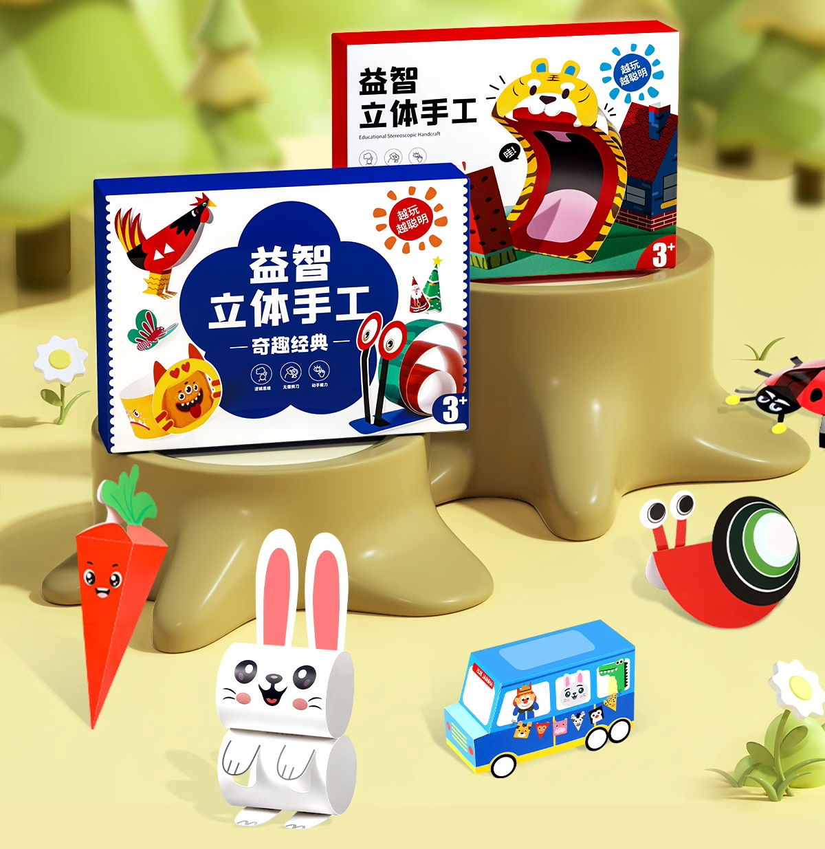 儿童卡通益智立体折纸 幼儿园diy创意手工折纸动手动脑3d立体折纸