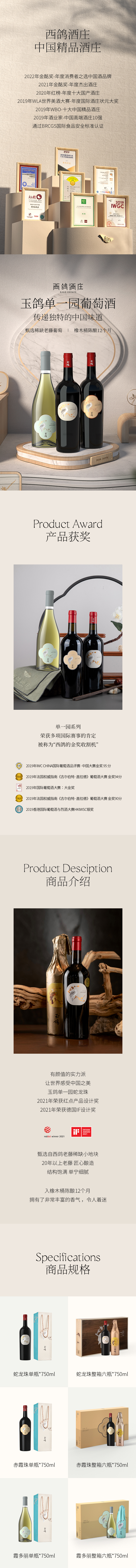 玉鸽单一园蛇龙珠干红葡萄酒 整箱750ml*6