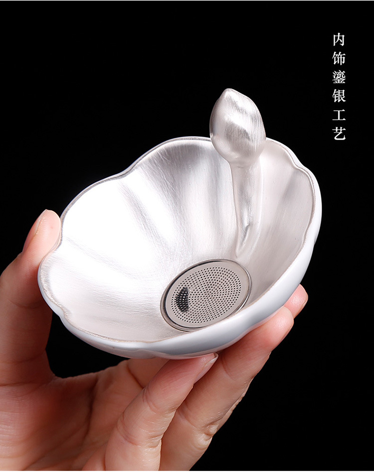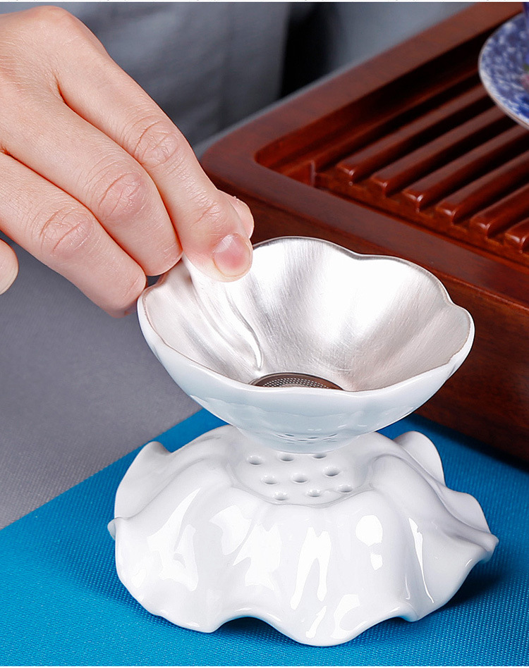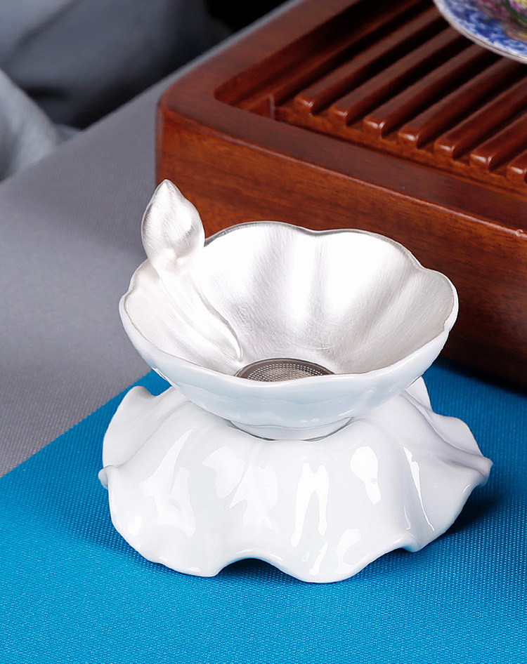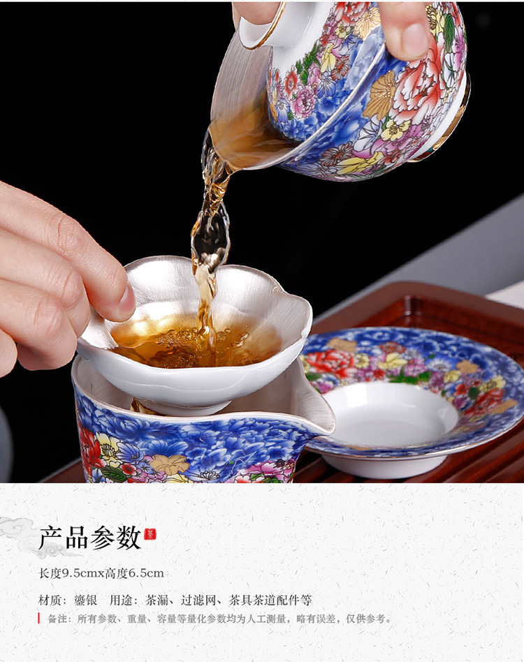鎏银纯银手工茶叶滤网器茶具配件泡茶神器茶漏茶滤创意个性办公室