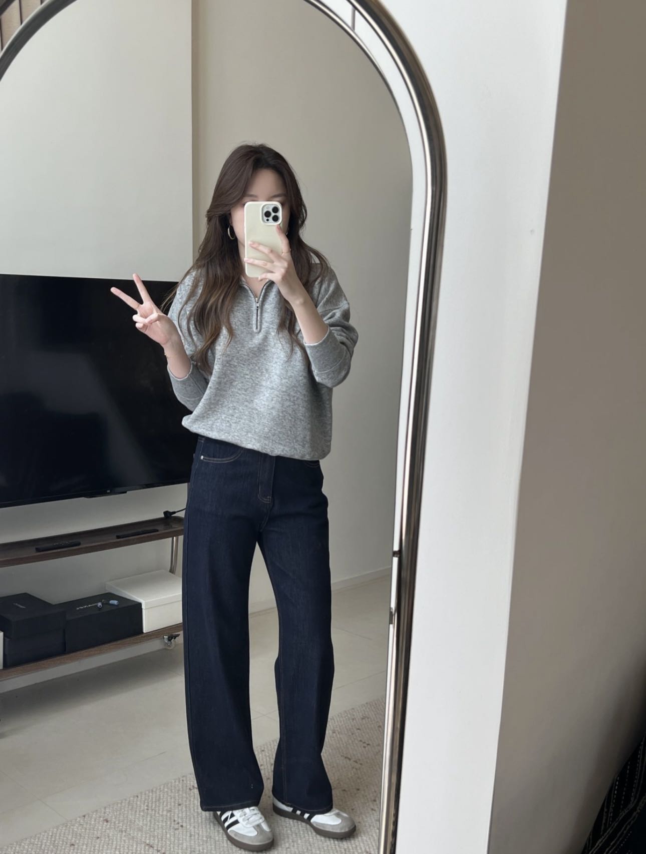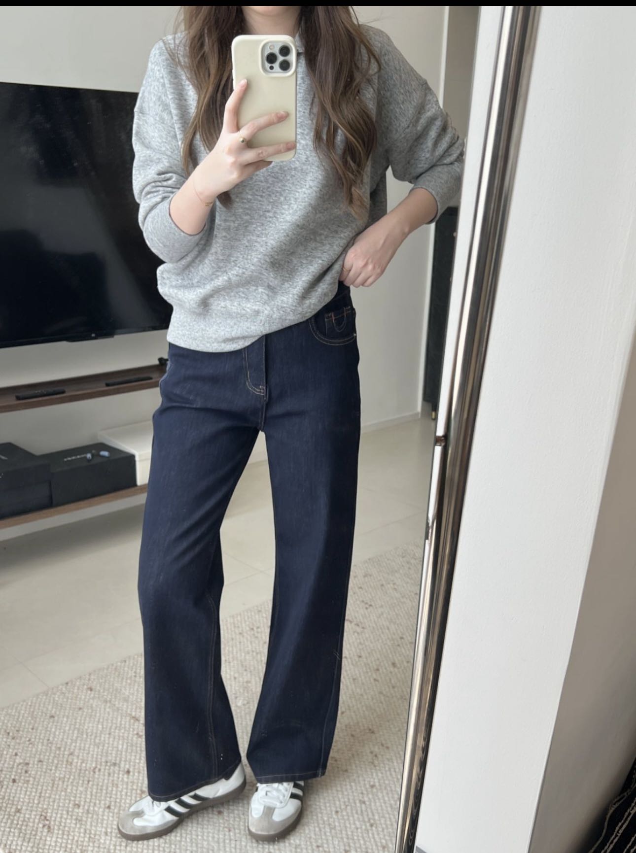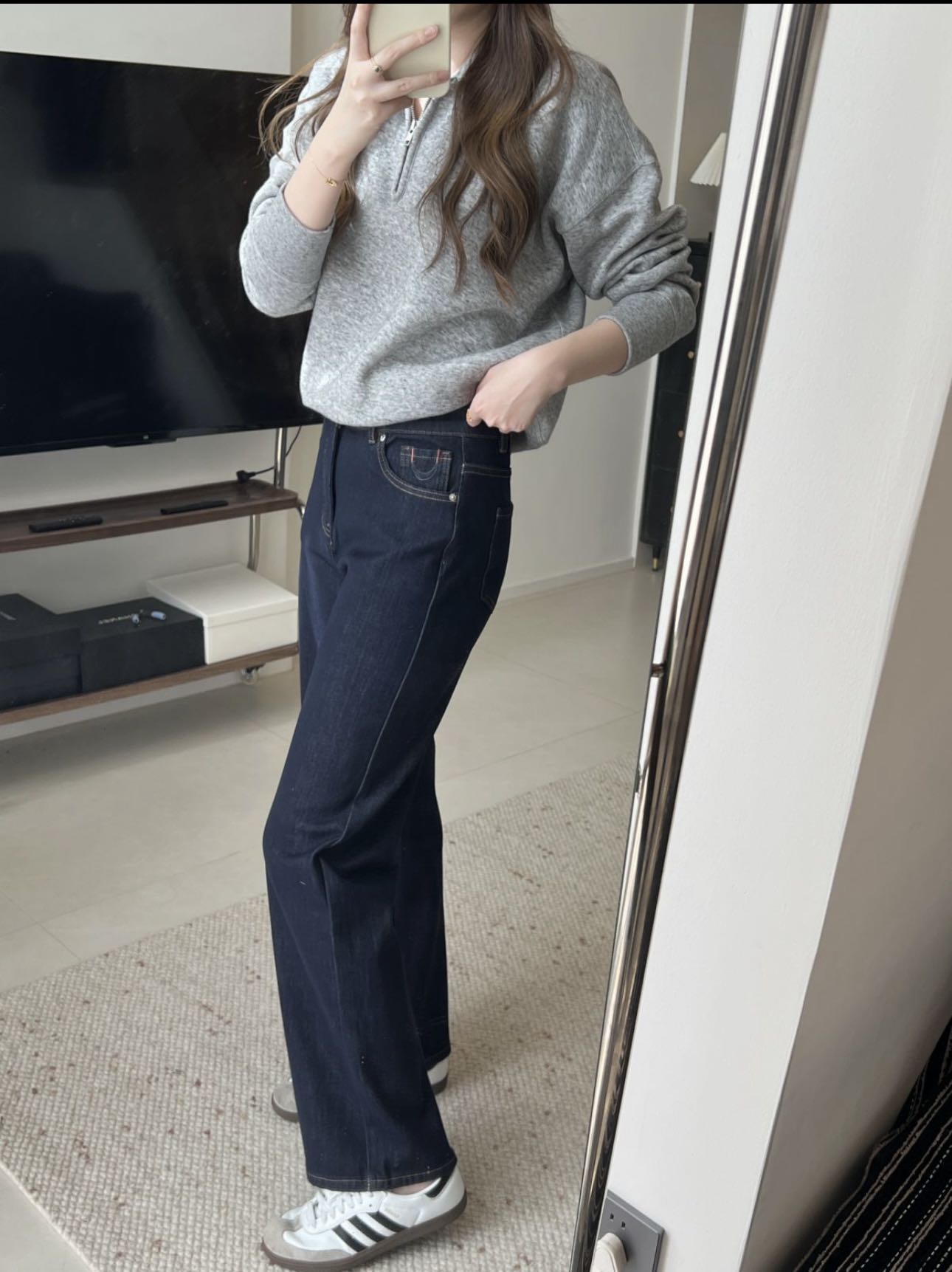 窄版直筒裤型,修饰腿型,瞬间遮胯,显腿直又显腿细~
