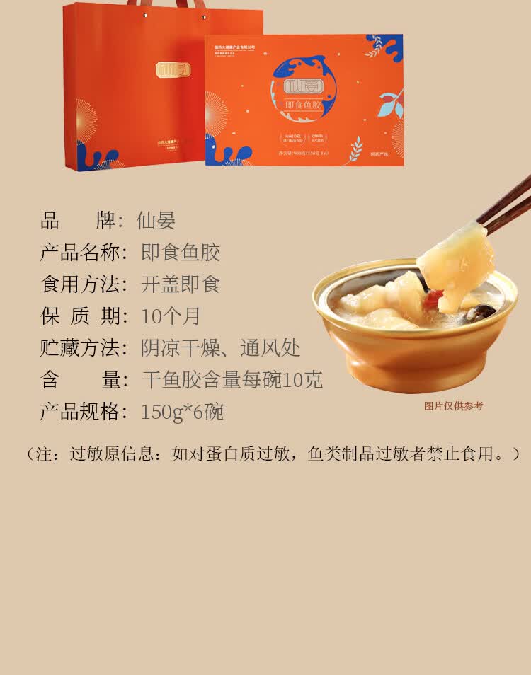 仙晏即食鱼胶花胶礼盒 150g*6碗