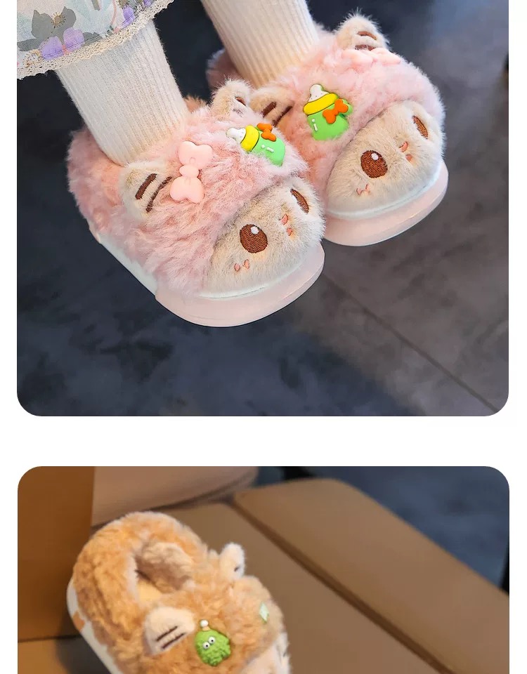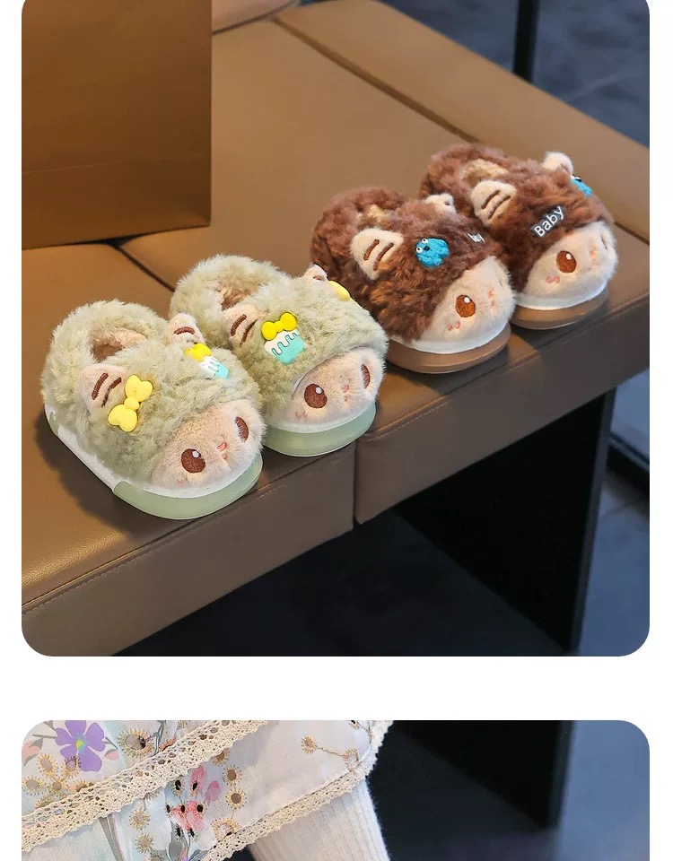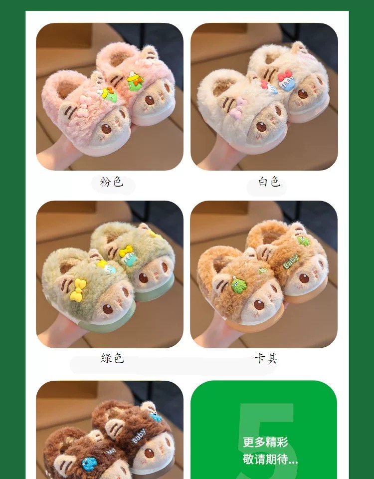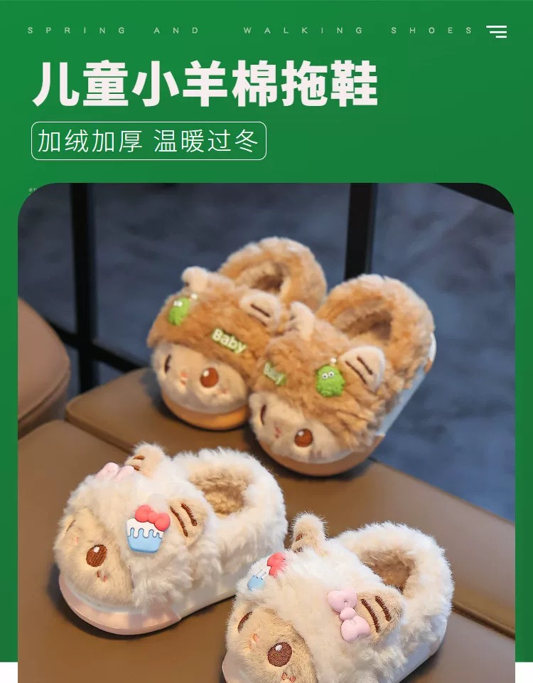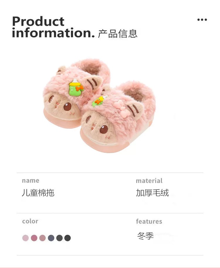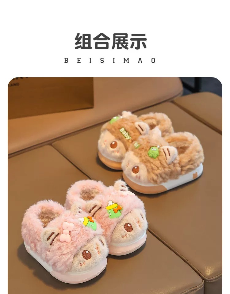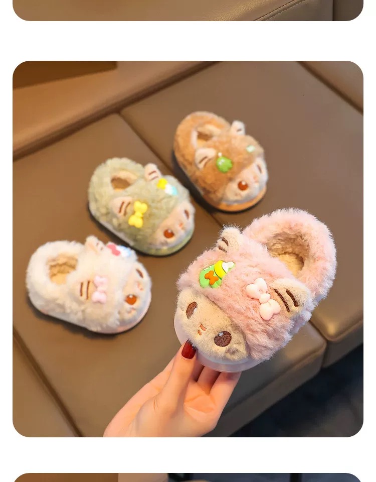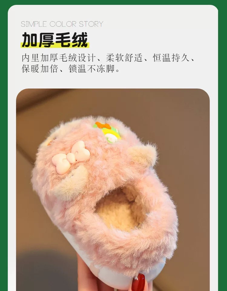 儿童冬季棉拖鞋女童毛绒家居室内拖鞋男宝宝包跟保暖棉鞋【WG24531】